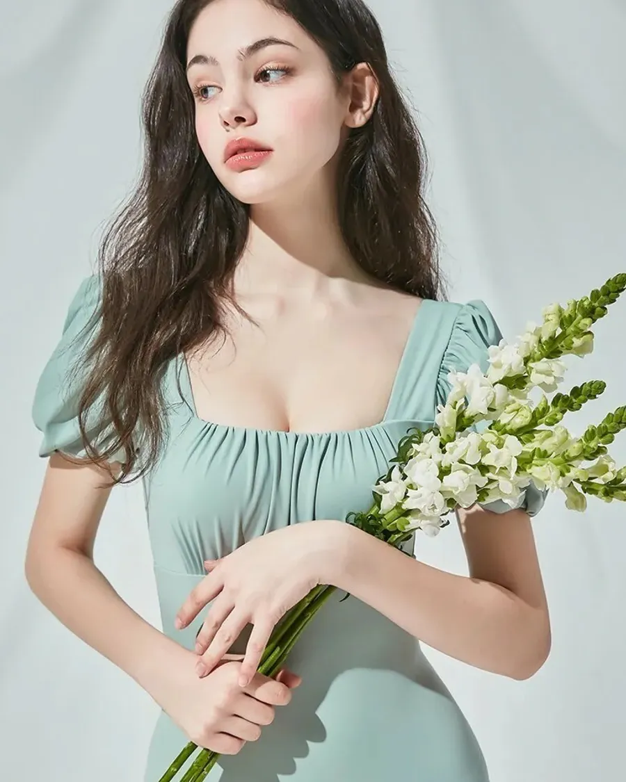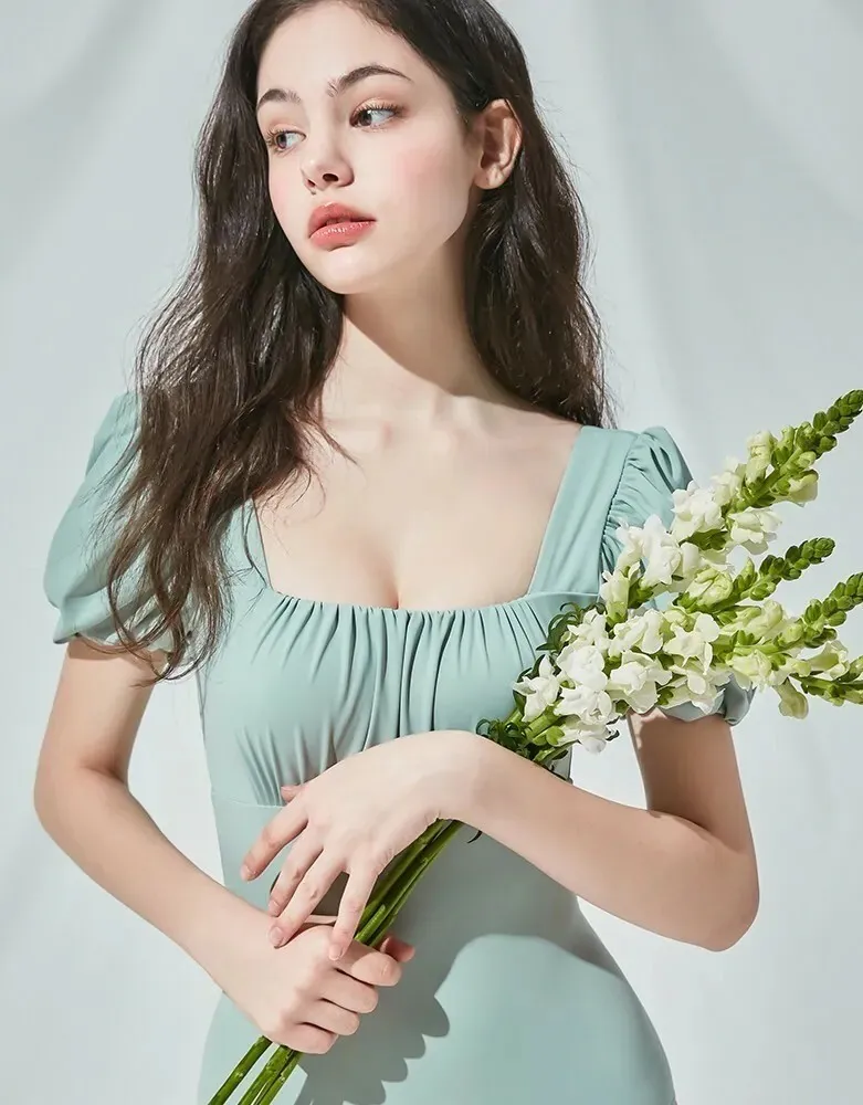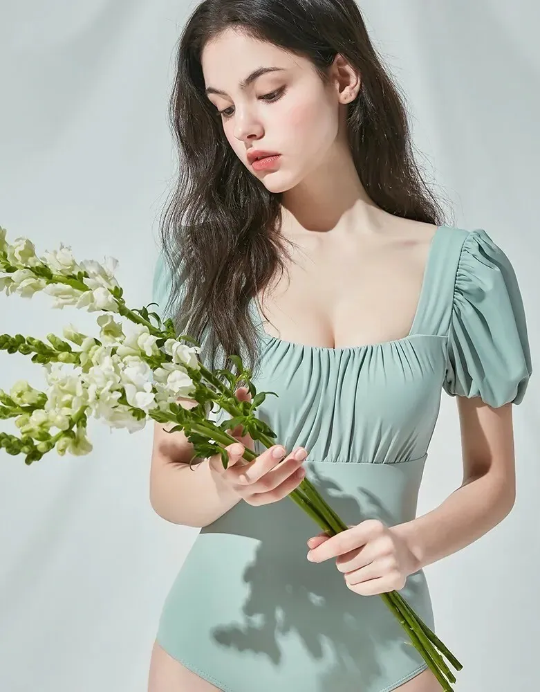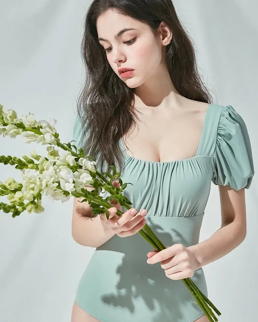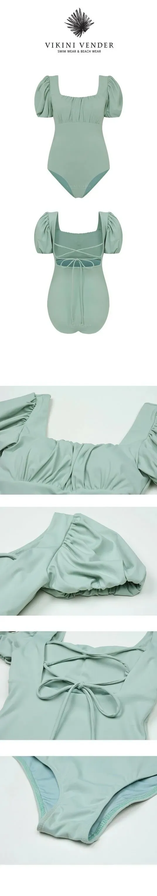 ANZ韓網代購🇰🇷VIKINIVENDER 泡泡袖交叉綁帶連身泳裝