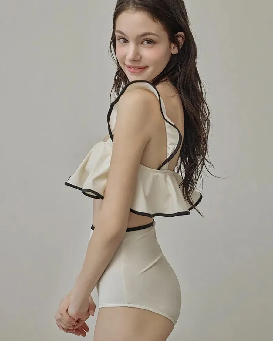 ANZ韓網代購🇰🇷VIKINIVENDER 荷葉香氣 高腰泳裝