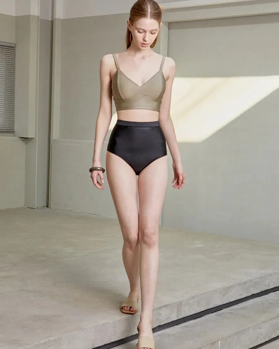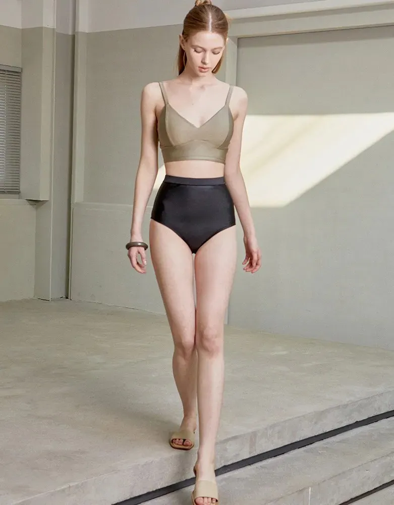 ANZ韓網代購🇰🇷VIKINIVENDER 好萊塢高腰比基尼 卡其灰色