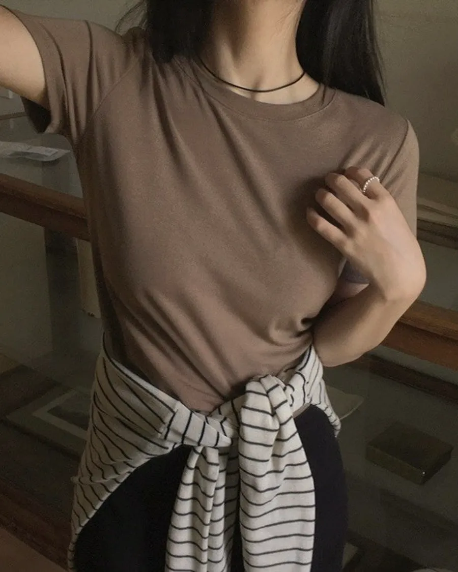 ANZ韓網代購🇰🇷Slowand 彈性延展圓領上衣 6 color