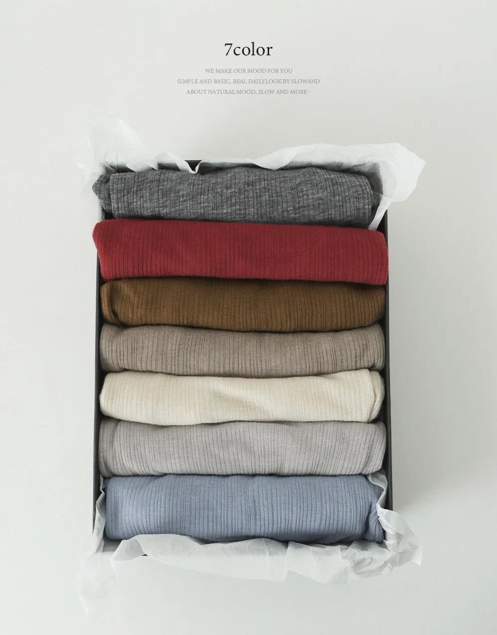 Light Beige淺米色、Mute Beige柔和米色、Soft Blue柔和藍色、Fog Grey霧灰色、Deep Red深紅色、Olive Brown橄欖棕色、Charcoal Grey炭灰色