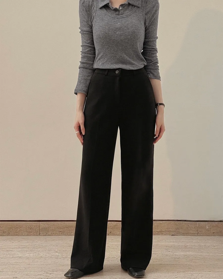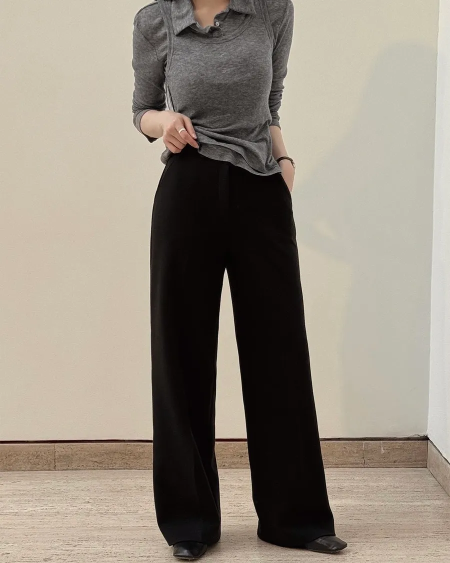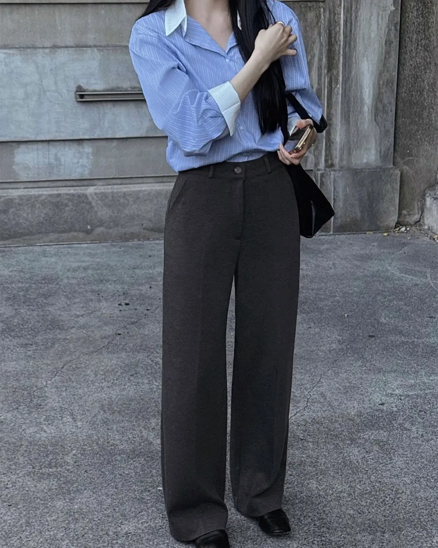 ANZ韓網代購🇰🇷Slowand自訂款 早春休閒直筒西裝褲 2 color 短版/基本/加長版