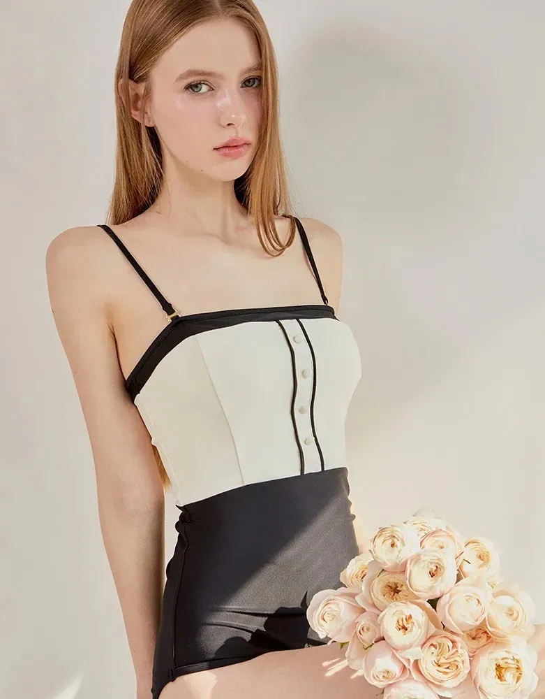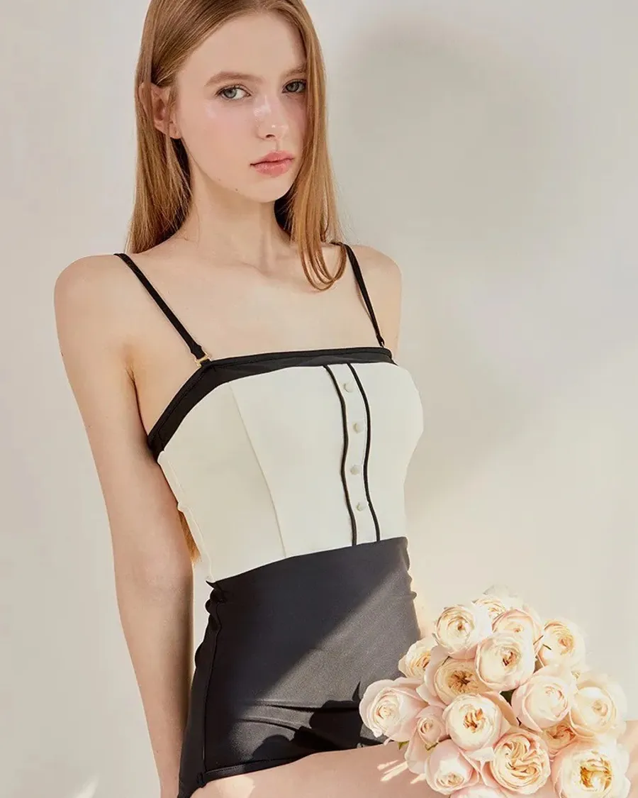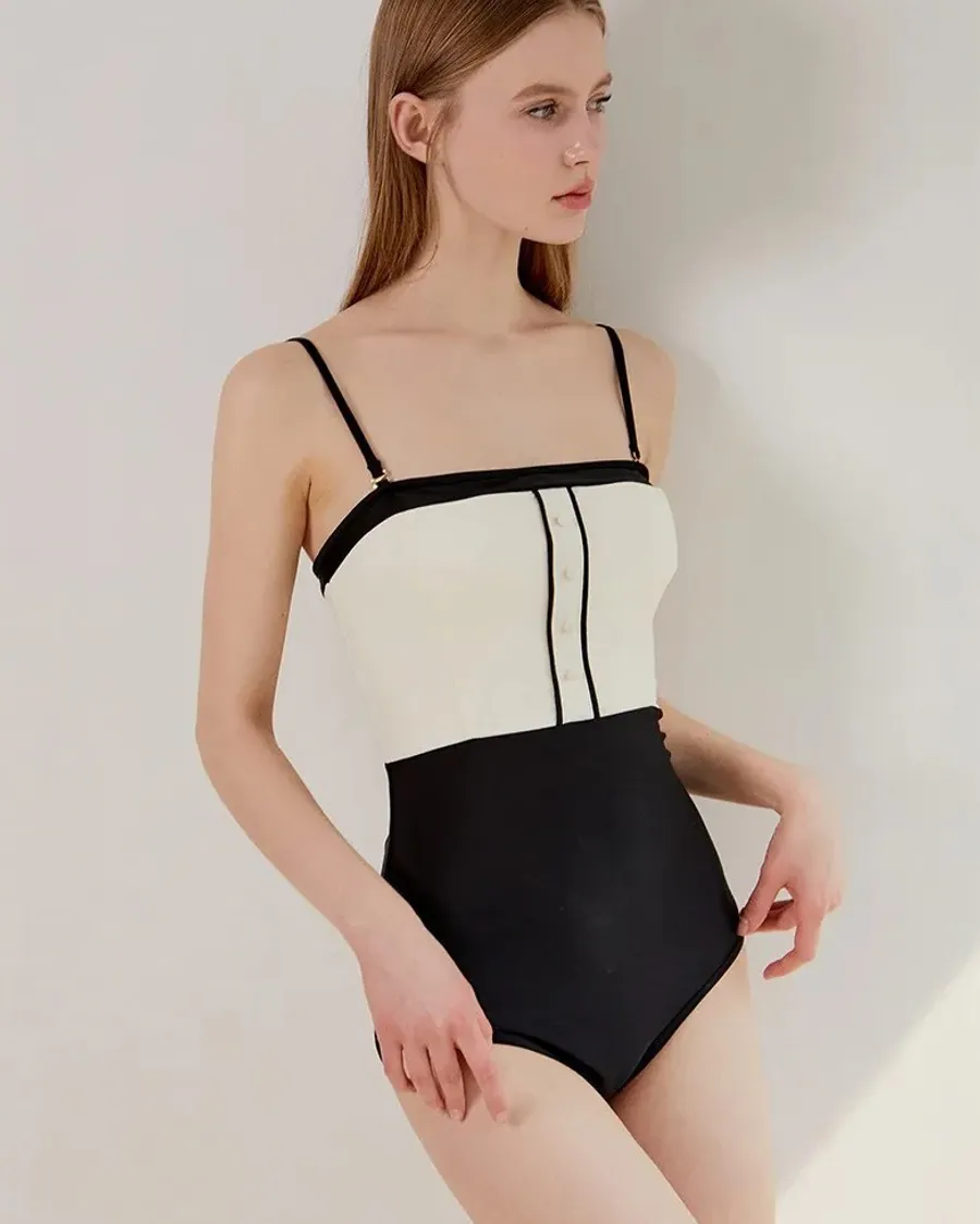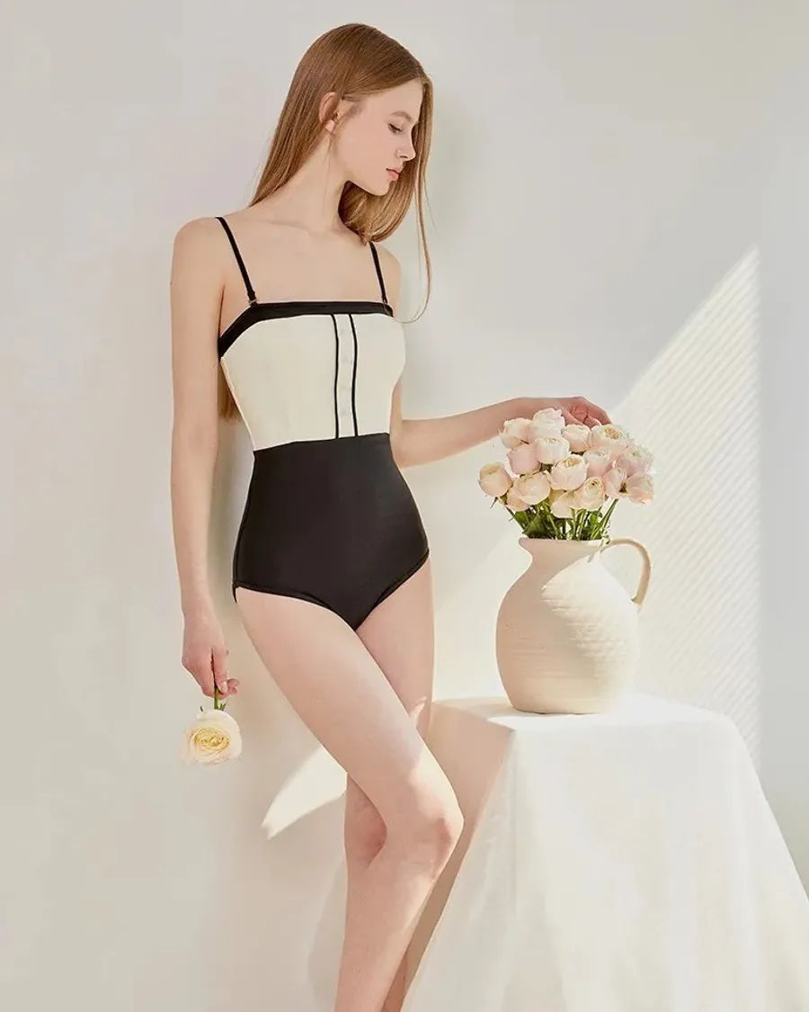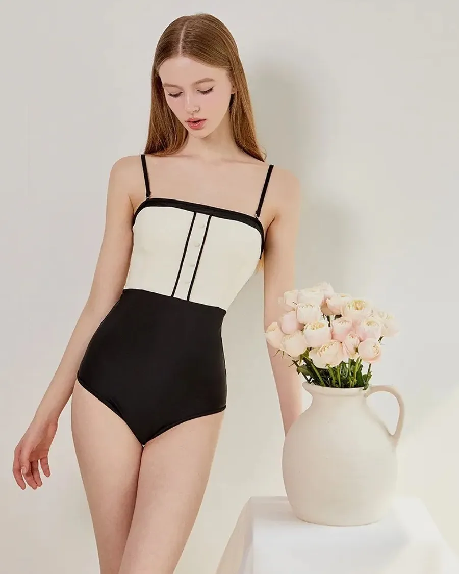 ANZ韓網代購🇰🇷VIKINIVENDER 提拉米蘇連身泳裝 黑色 材質 聚酯纖維82% 聚氨酯18% 顏色 Black黑色 尺寸 (cm)|S / M 胸圍|35 / 37 腰圍|29 / 31 臀圍|37 / 38.5 (不含肩帶) 總長|59 / 60