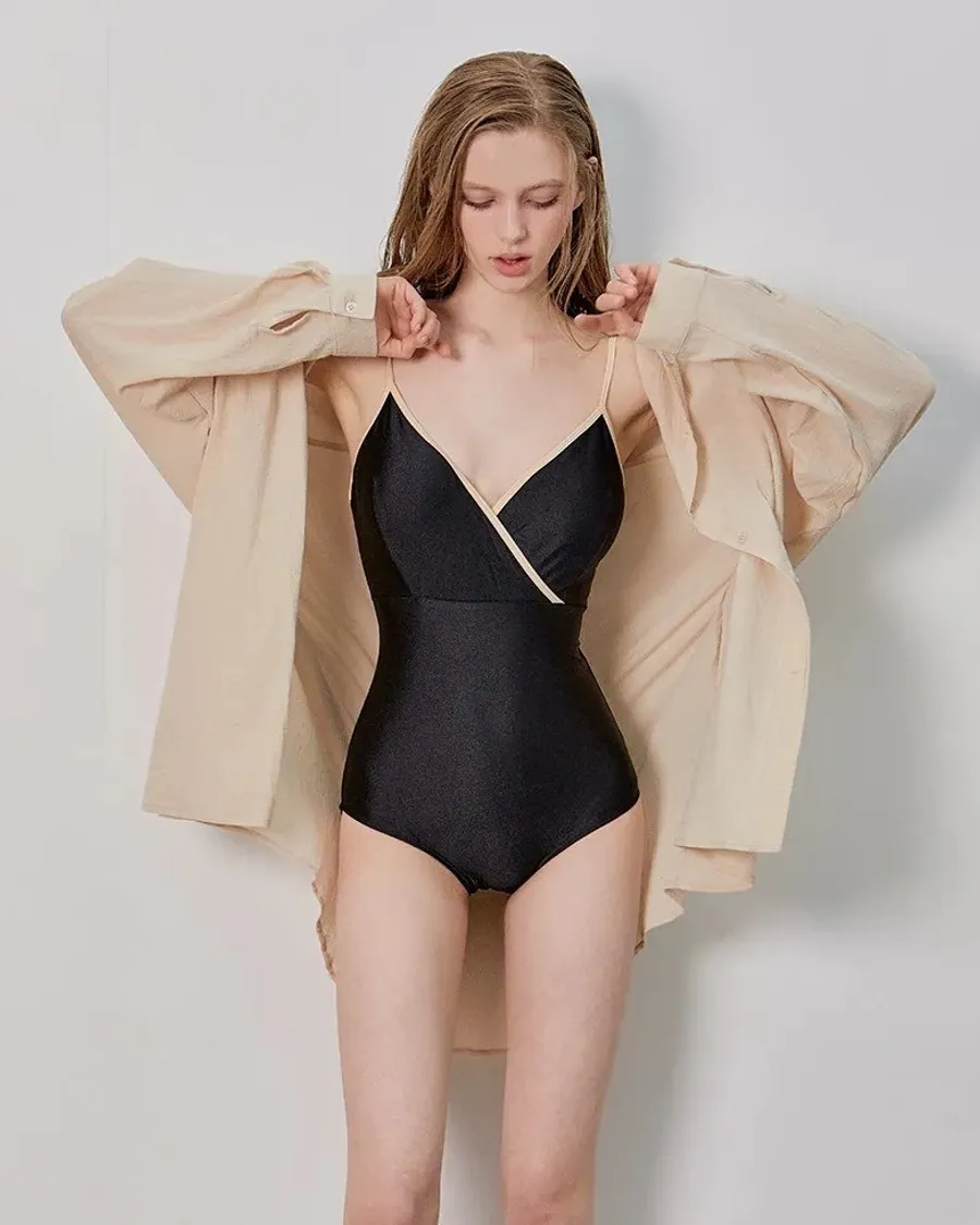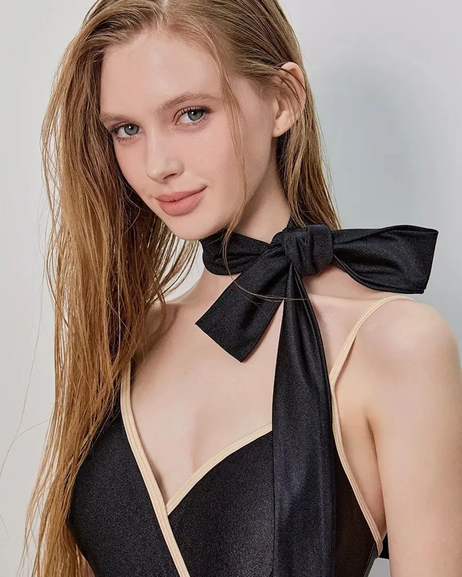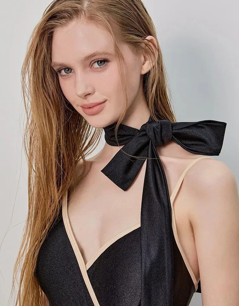 ANZ韓網代購🇰🇷VIKINIVENDER 隨意綁帶深V泳裝 黑色