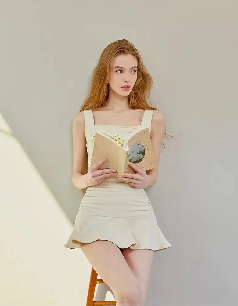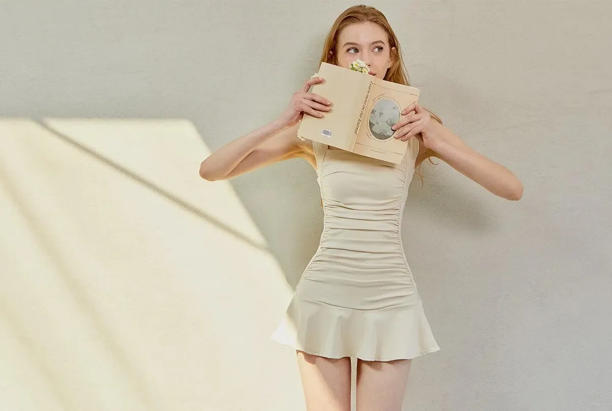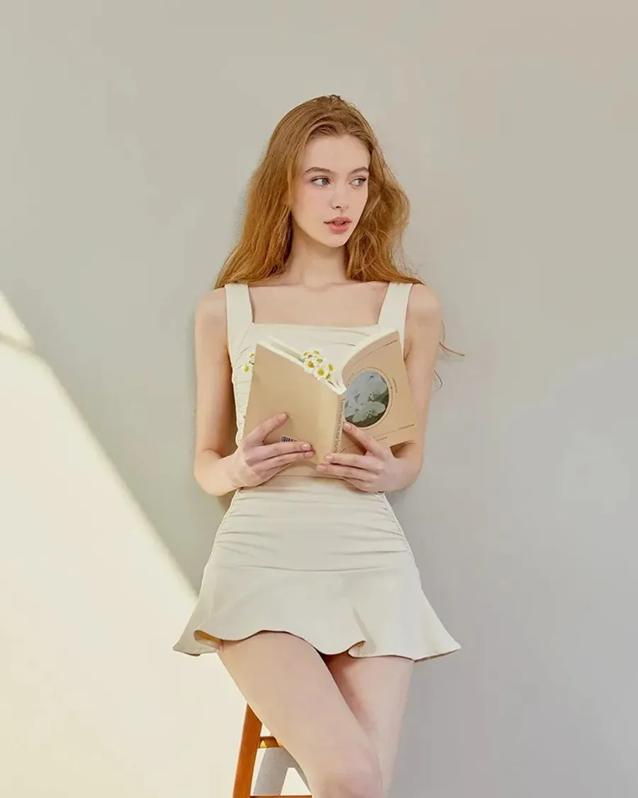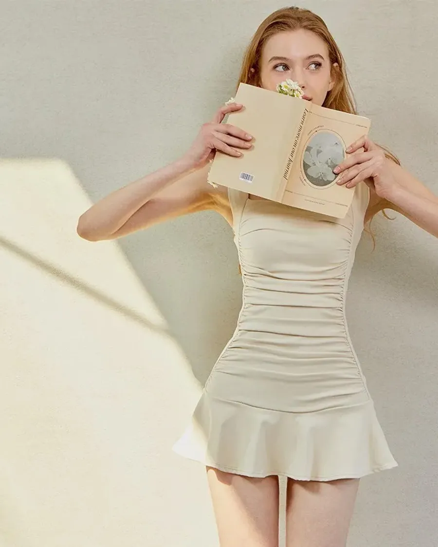 ANZ韓網代購🇰🇷VIKINIVENDER S型褶皺連身裙 奶油色