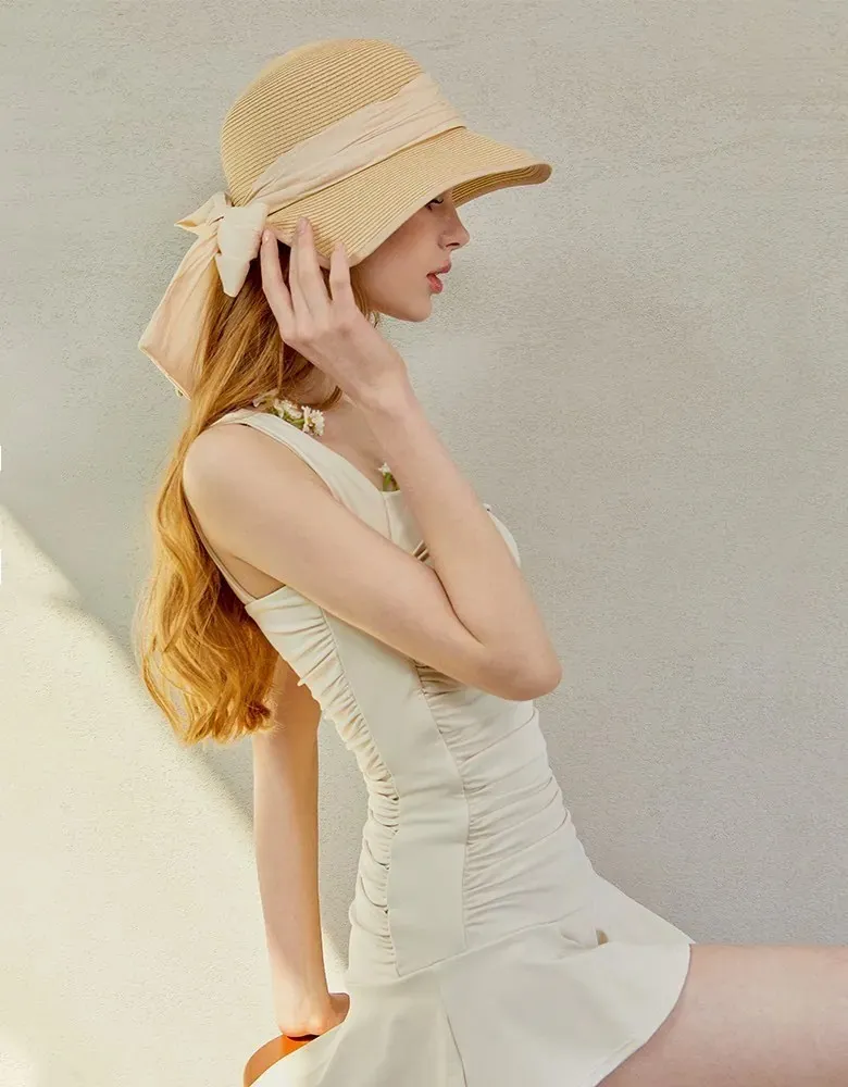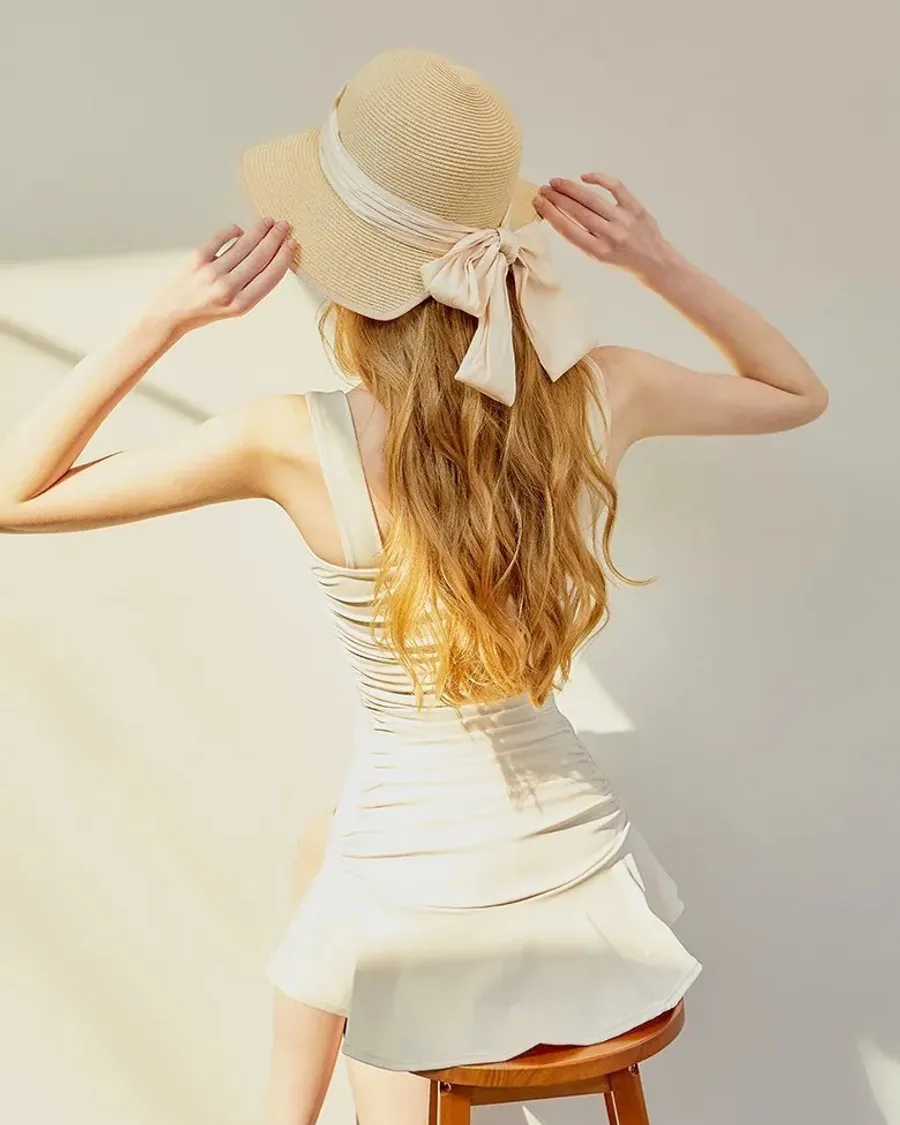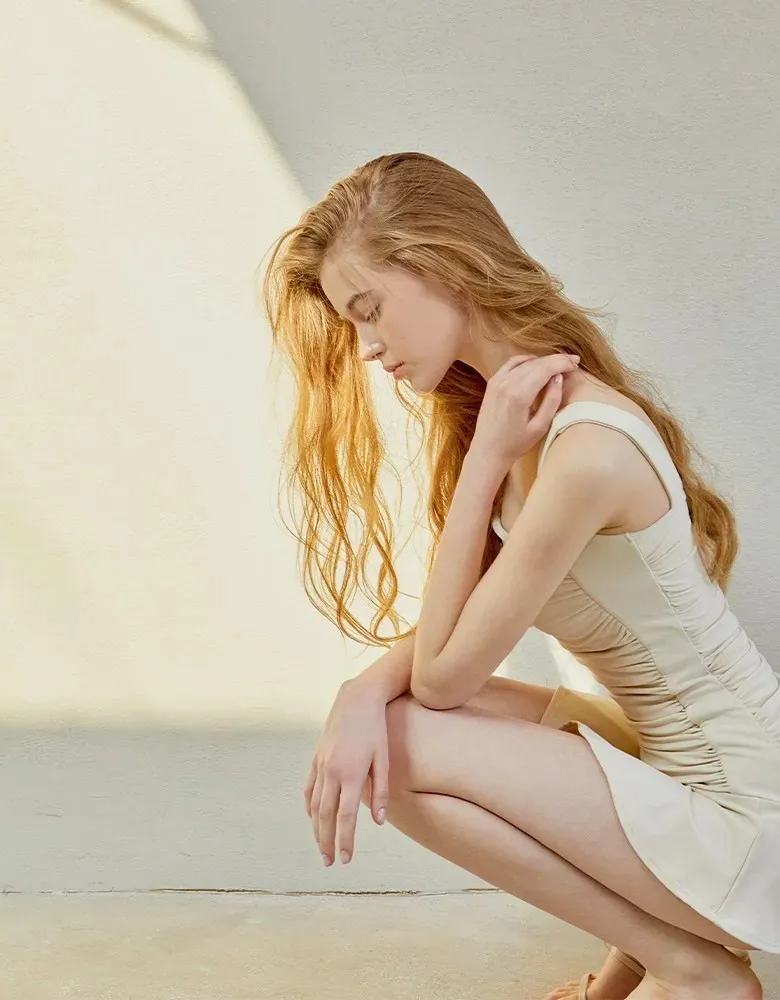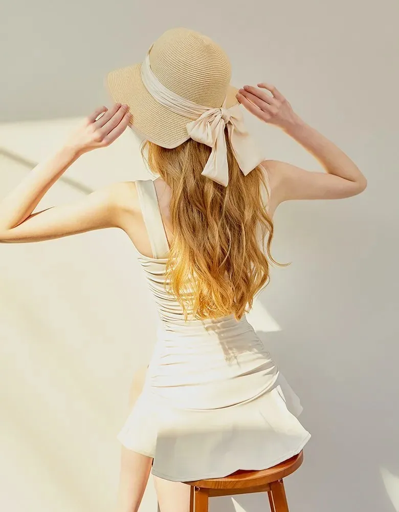 ANZ韓網代購🇰🇷VIKINIVENDER S型褶皺連身裙 奶油色