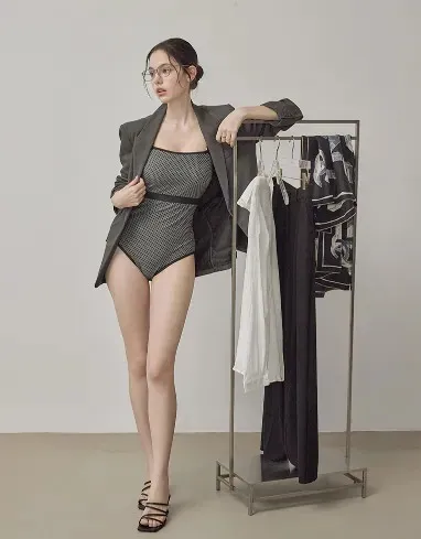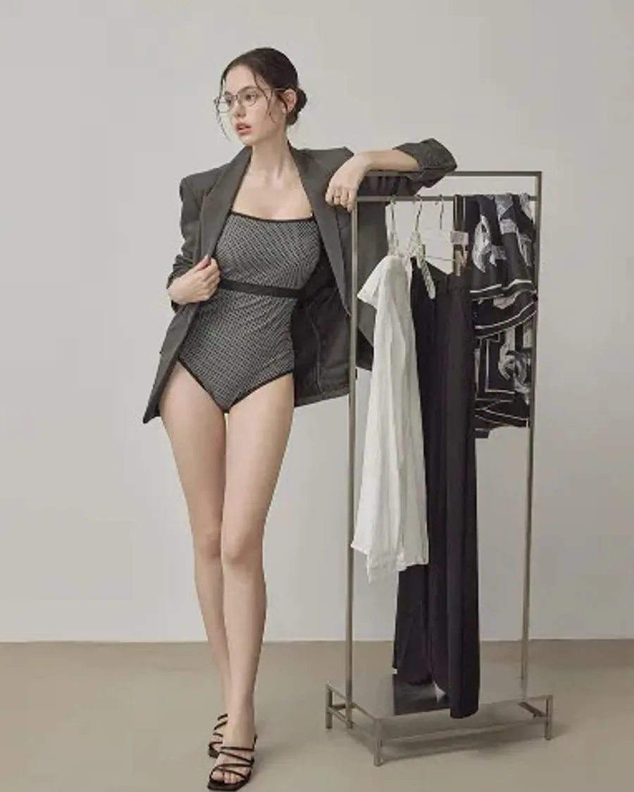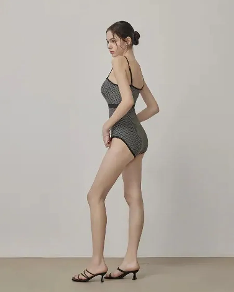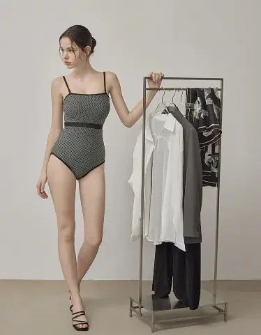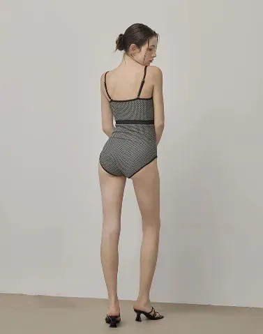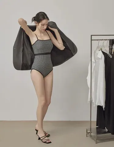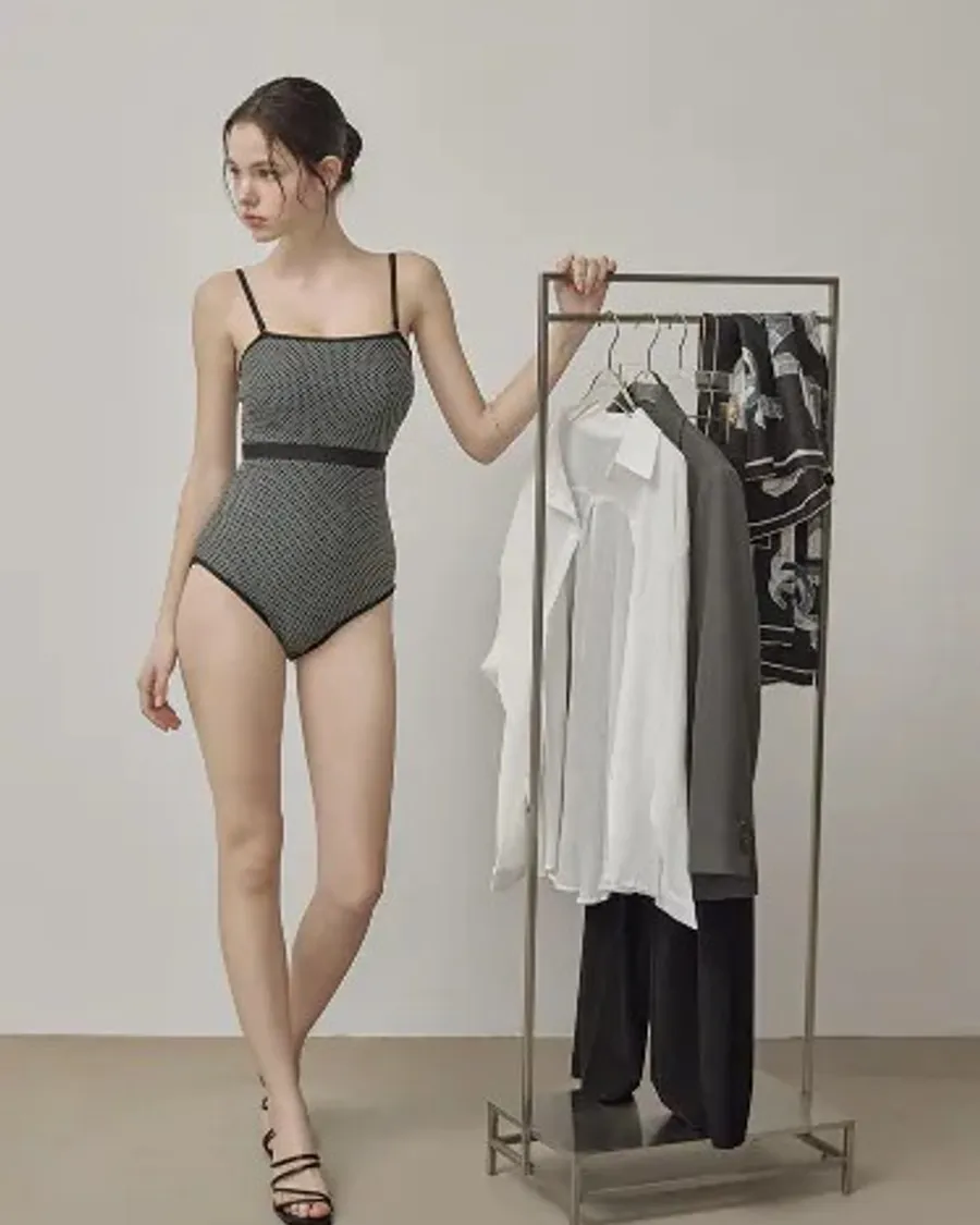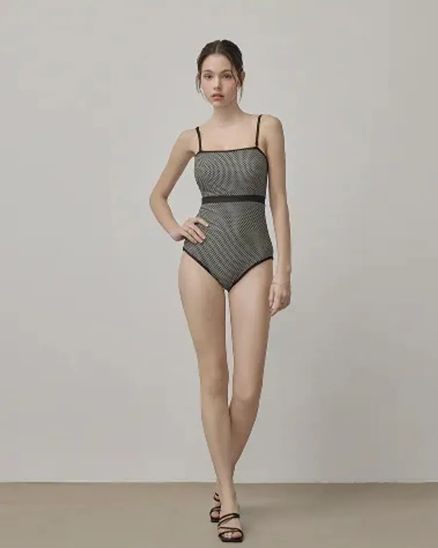 ANZ韓網代購🇰🇷VIKINIVENDER 黑色格紋平口連身泳裝 材質 聚酯纖維 82%,聚氨酯 18% 尺寸 S / M 胸圍|34.5 / 36.5 腰圍|31.5 / 33.5 臀圍|37.5 / 39 (不含肩帶)衣長|58 / 59