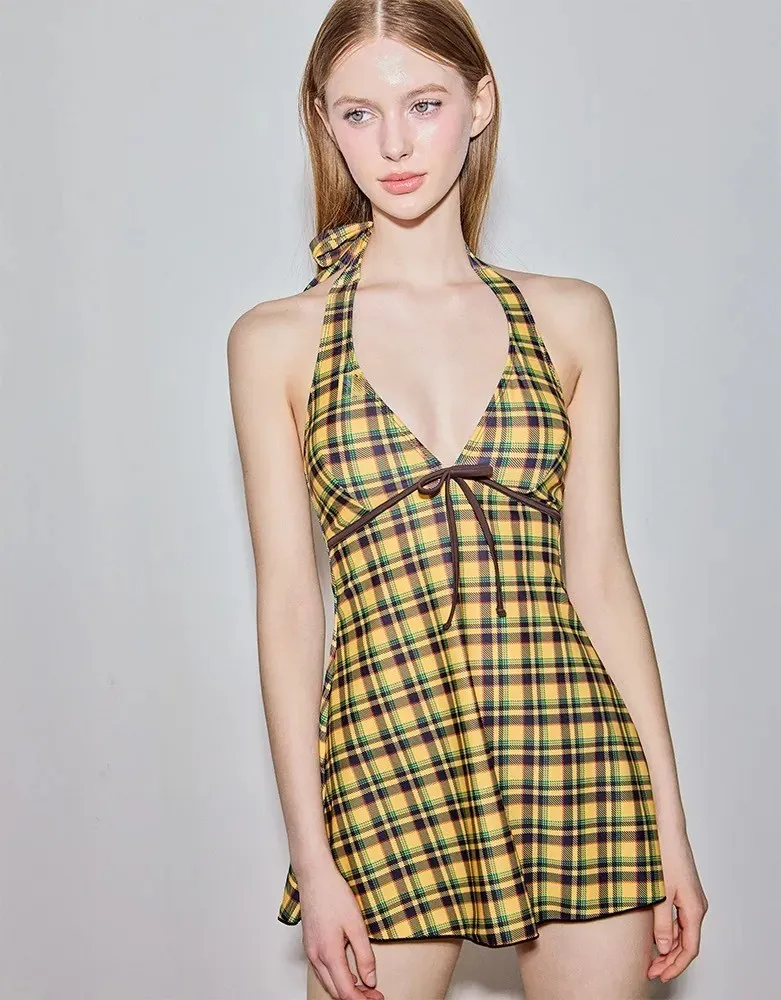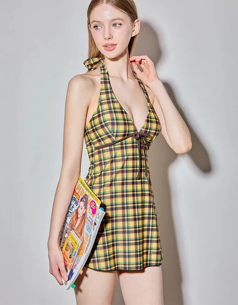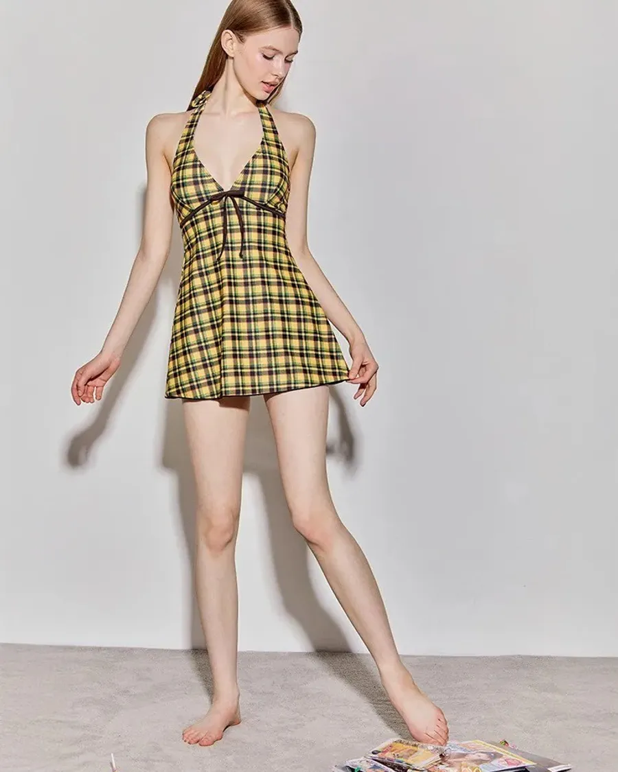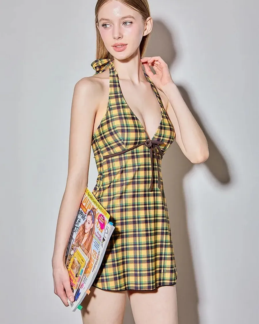 ANZ韓網代購🇰🇷VIKINIVENDER 蘇格蘭女孩 掛脖連身泳裝