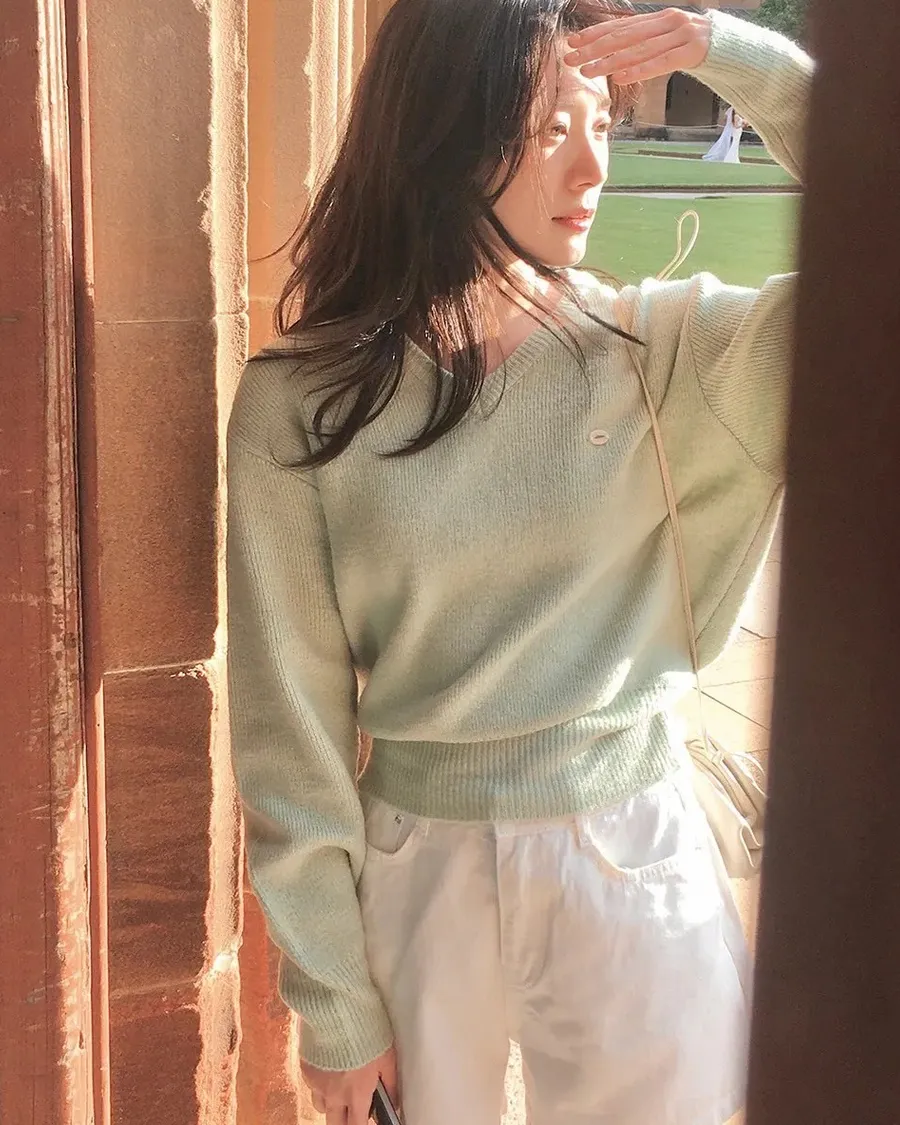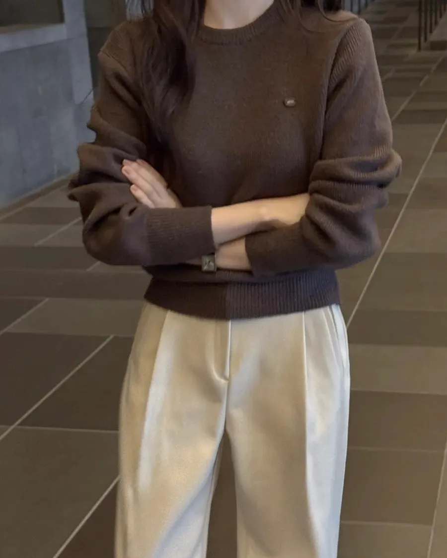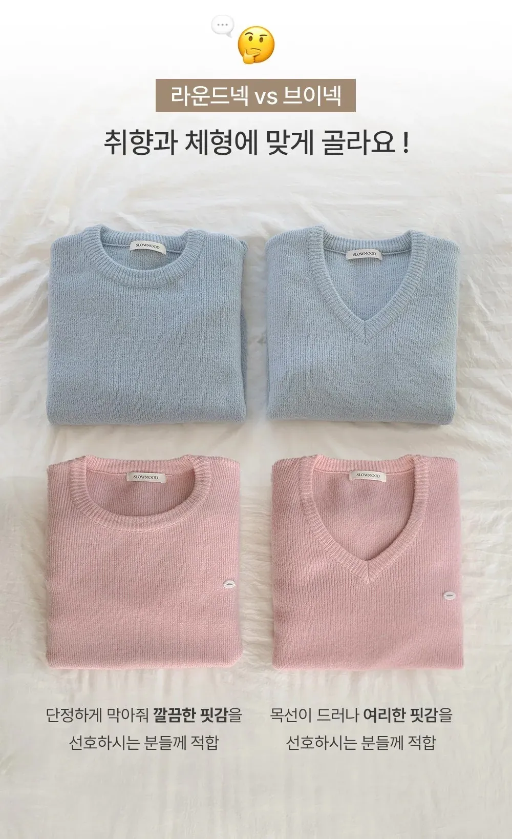 ANZ韓網代購🇰🇷Slowand自訂款 標準基礎厚針織 ( 圓領 / V領 / 圓領圖標 / V領圖標 )