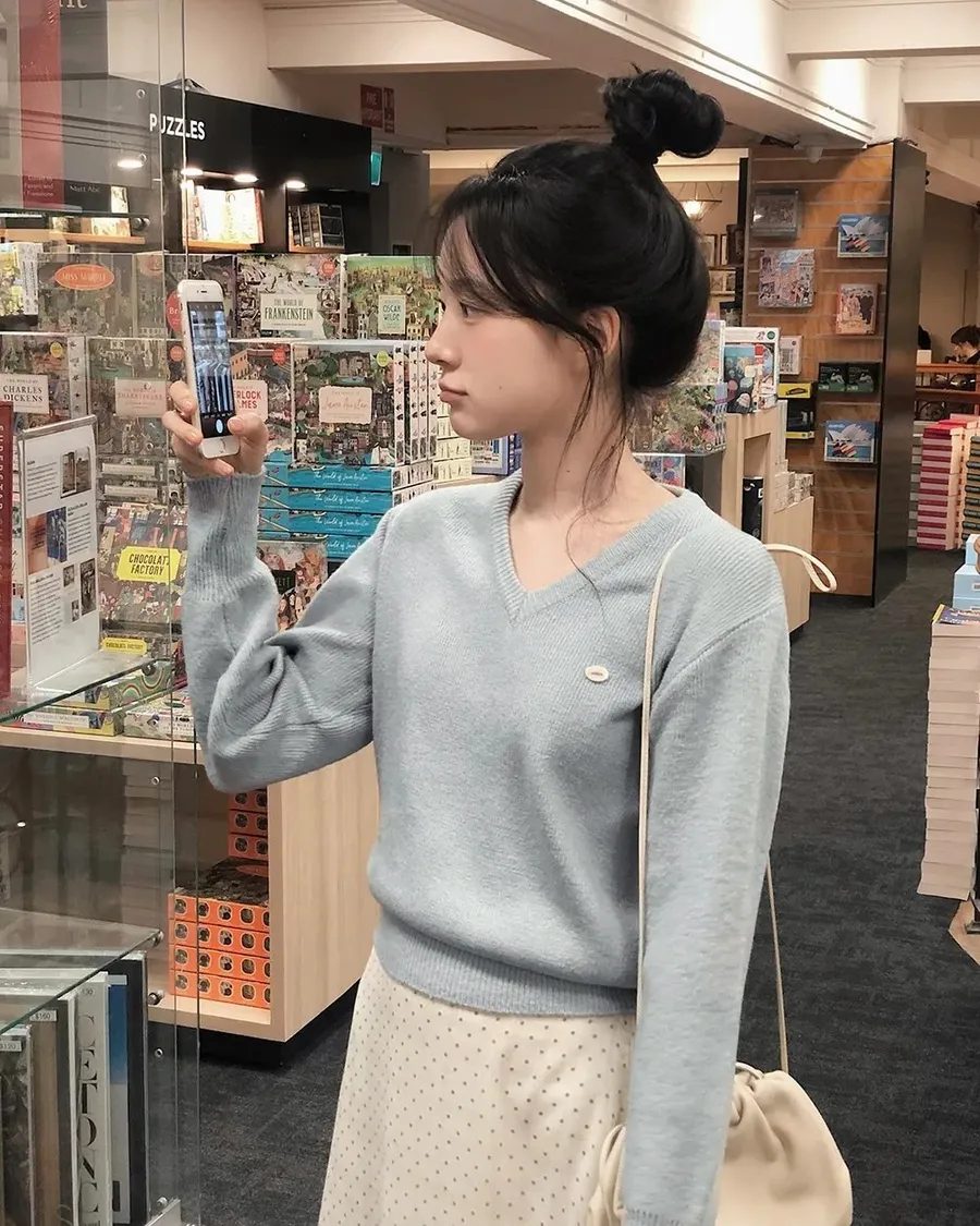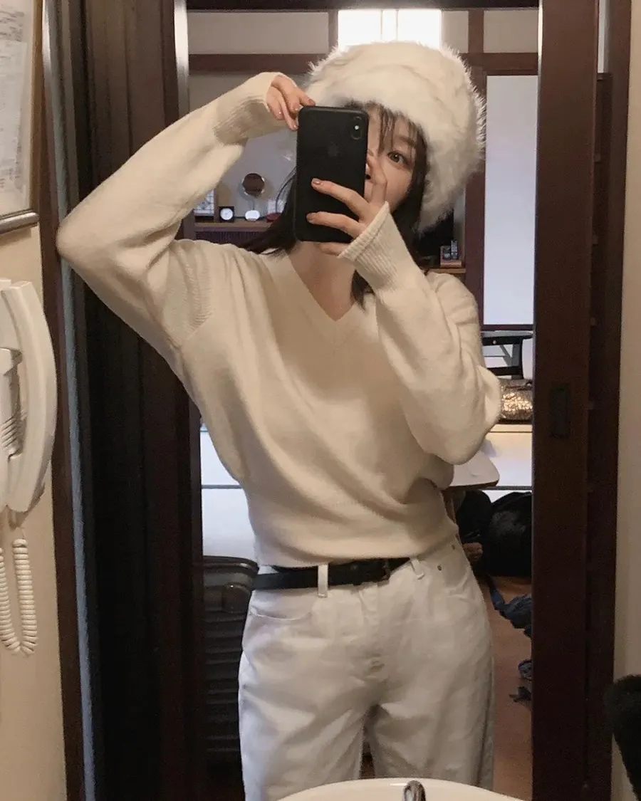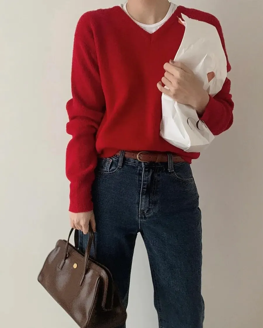 ANZ韓網代購🇰🇷Slowand自訂款 標準基礎厚針織 ( 圓領 / V領 / 圓領圖標 / V領圖標 )