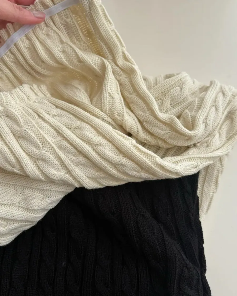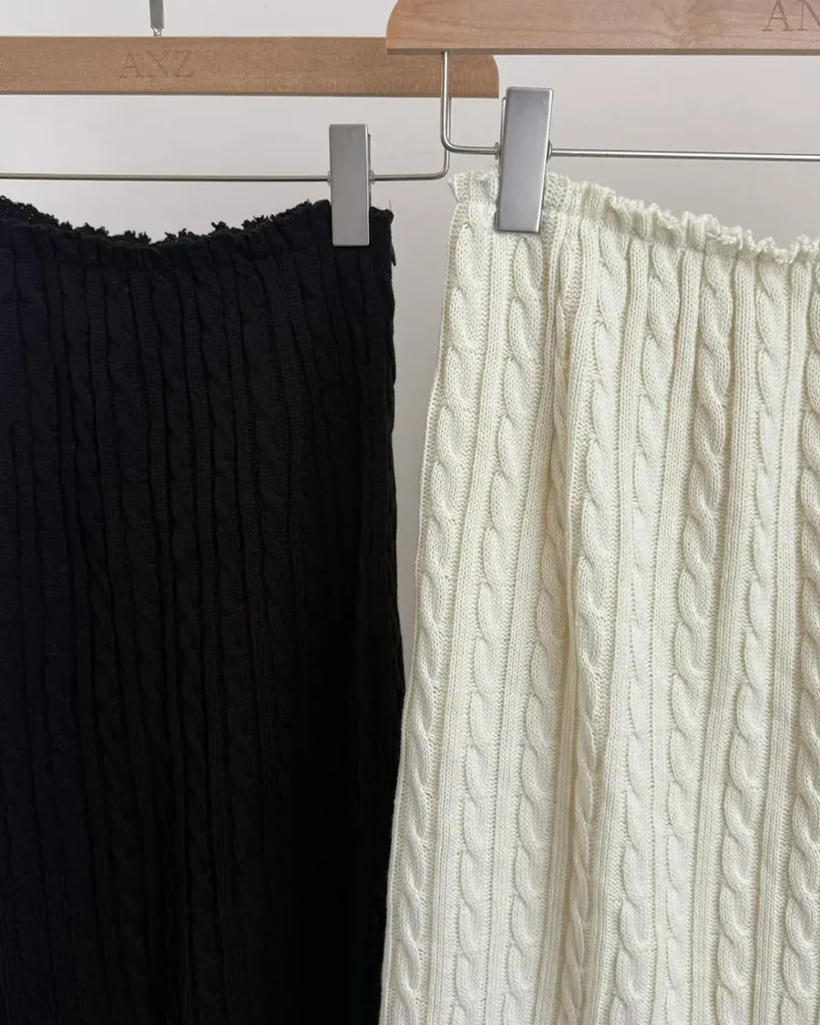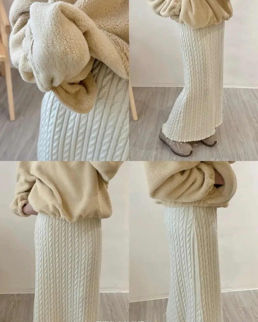 D29 漂亮麻花針織長裙 鬆緊腰帶