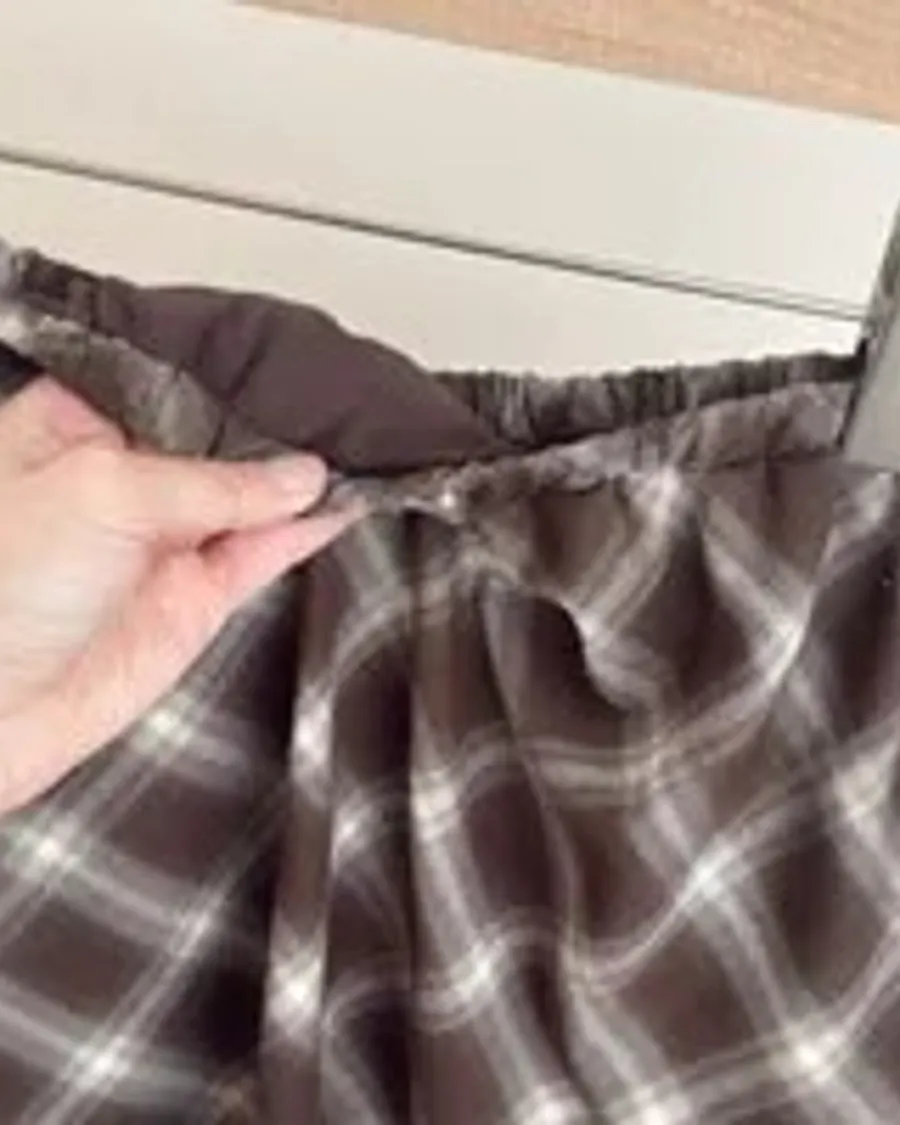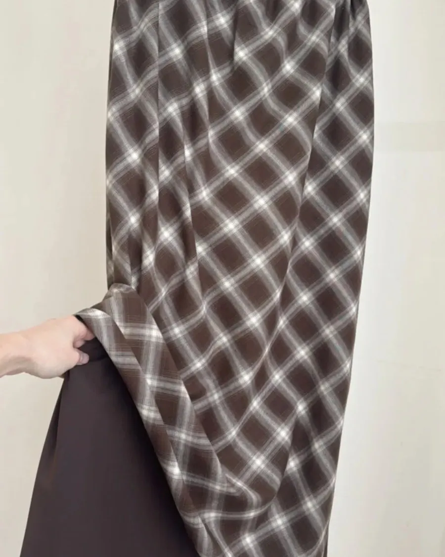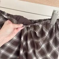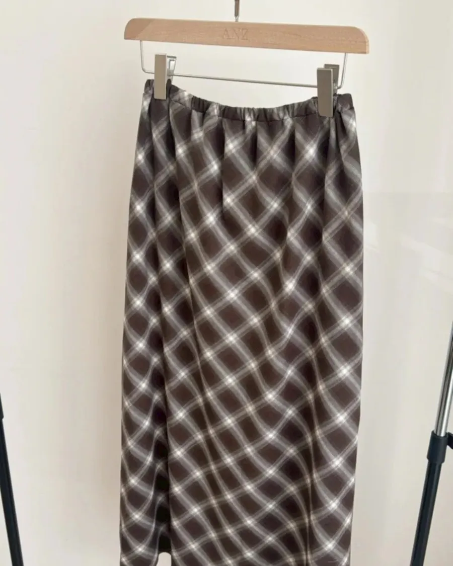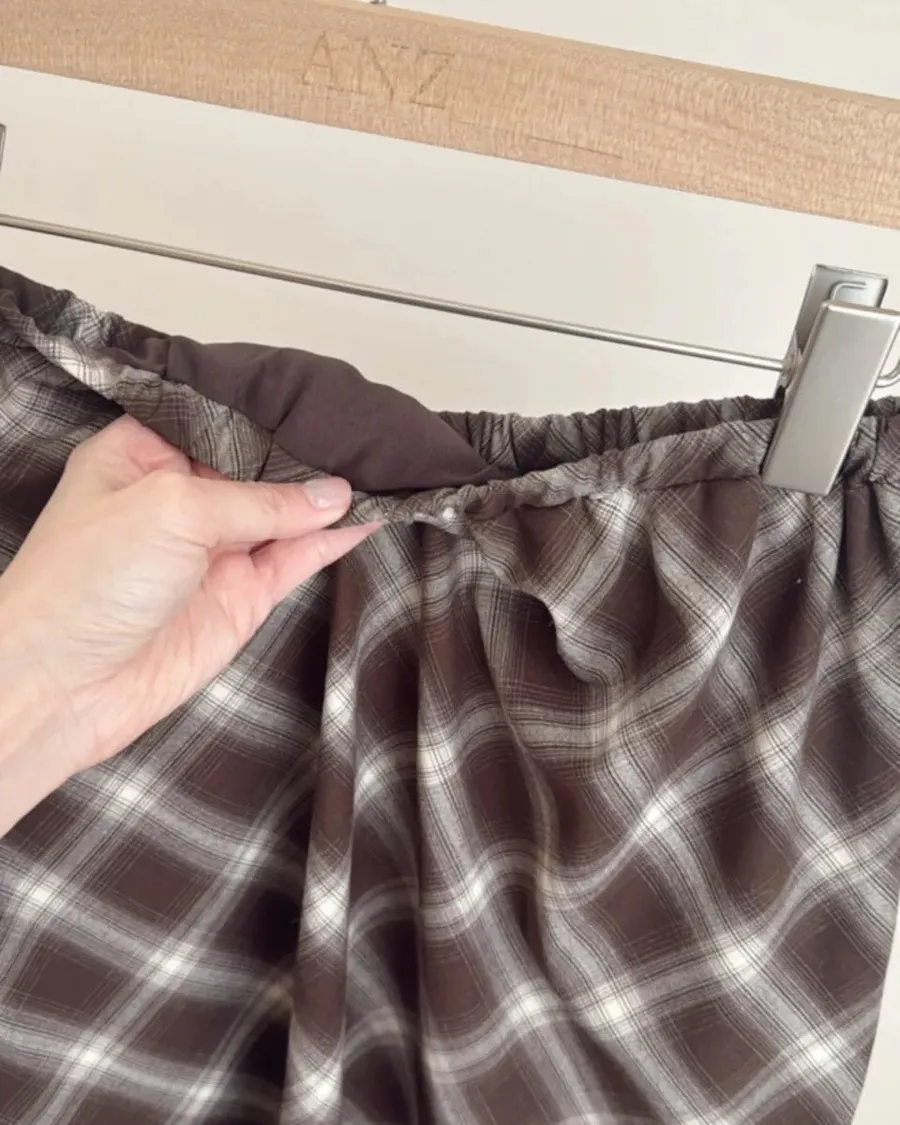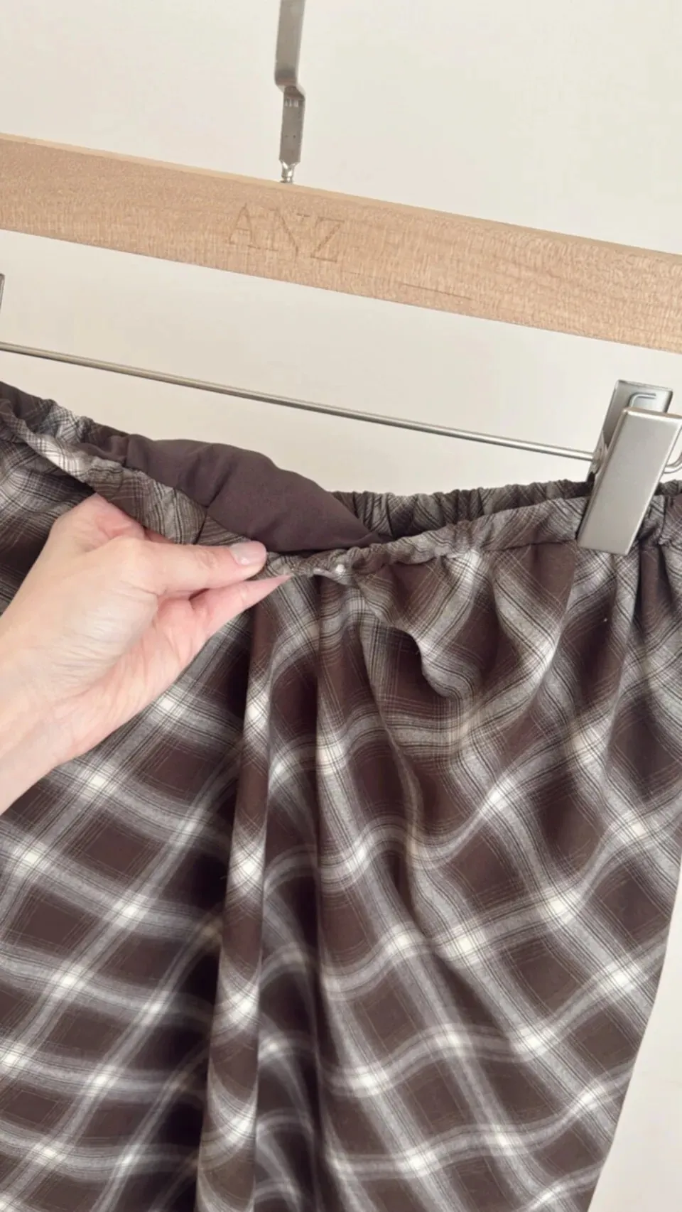D15 漂亮咖色菱格長裙 鬆緊腰帶