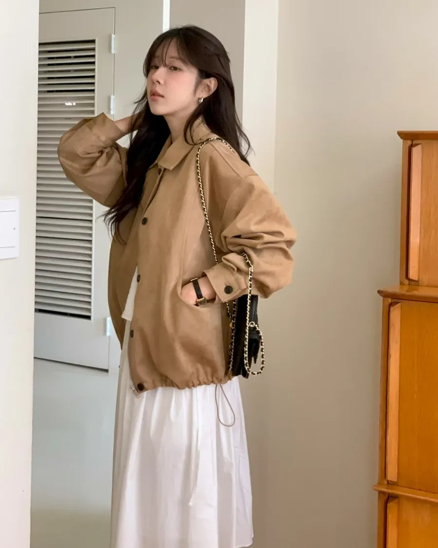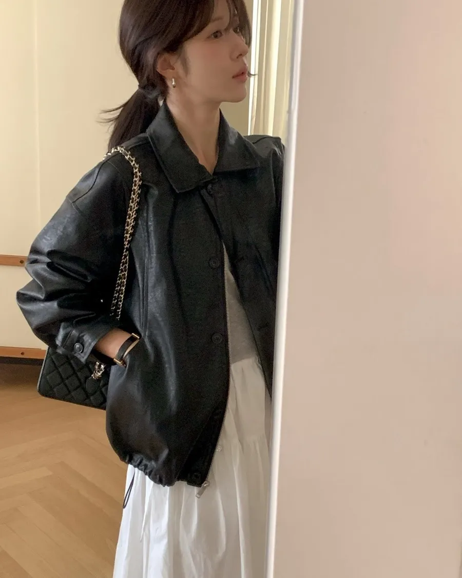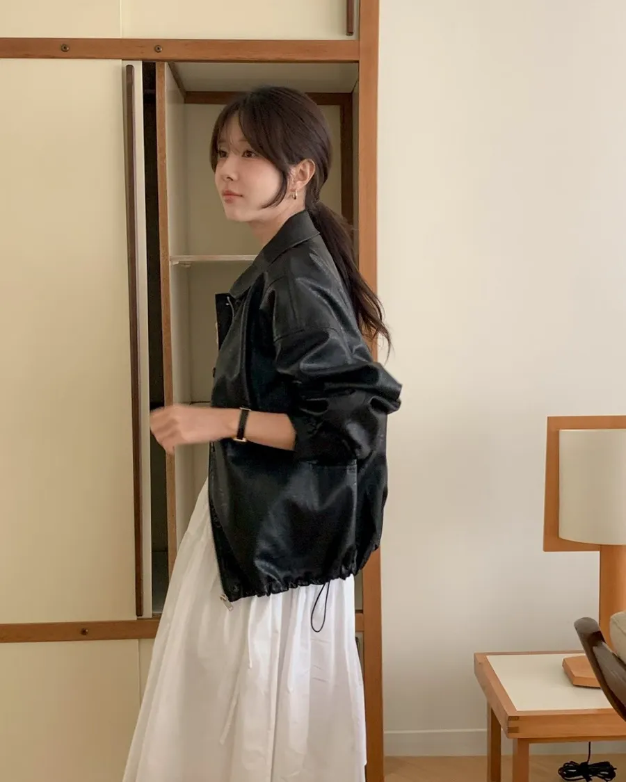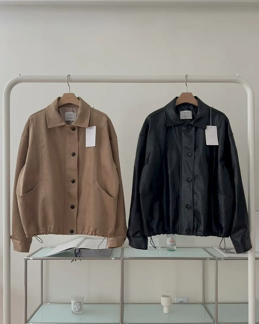 ANZ東大門新品🇰🇷A09 漢南洞歐膩 下抽繩皮革外套 Made in Korea