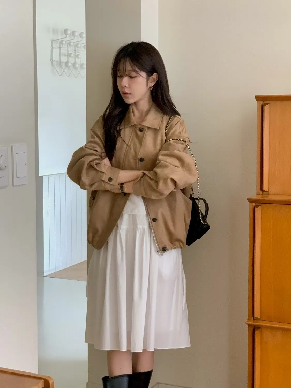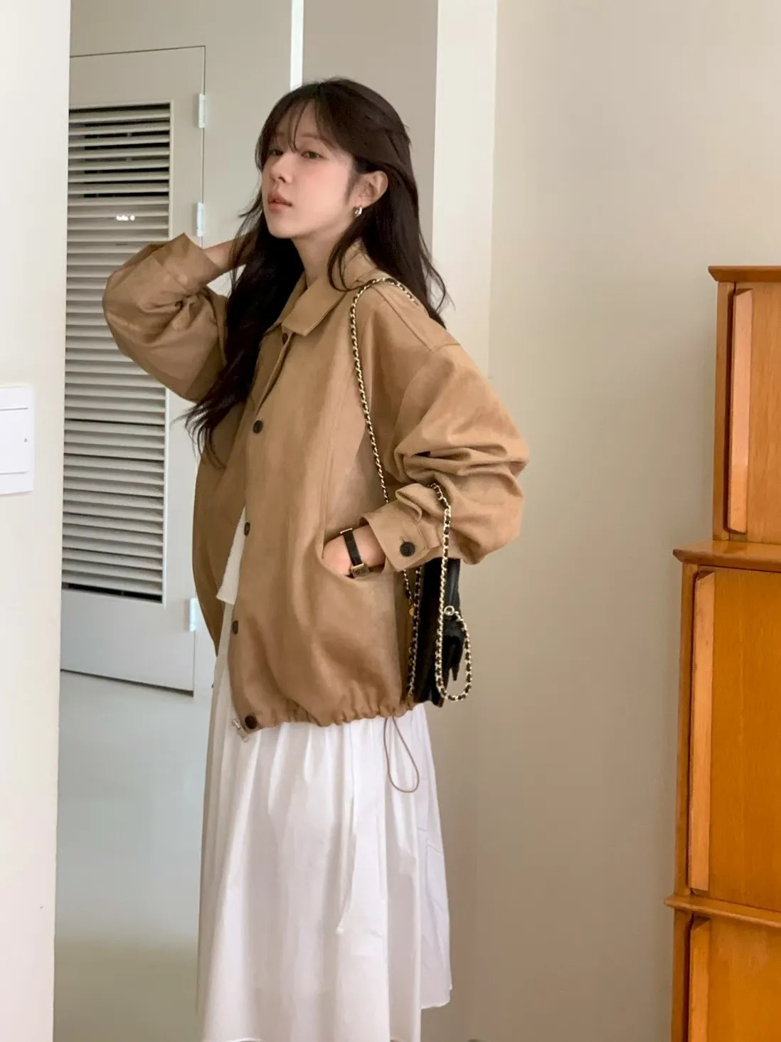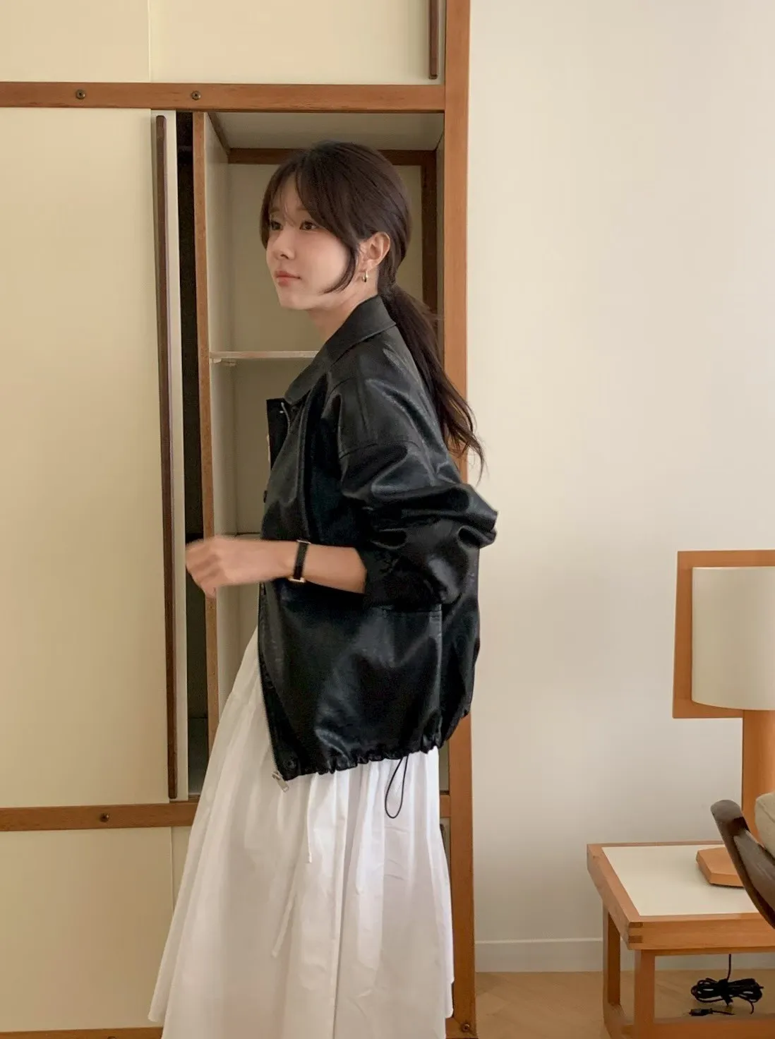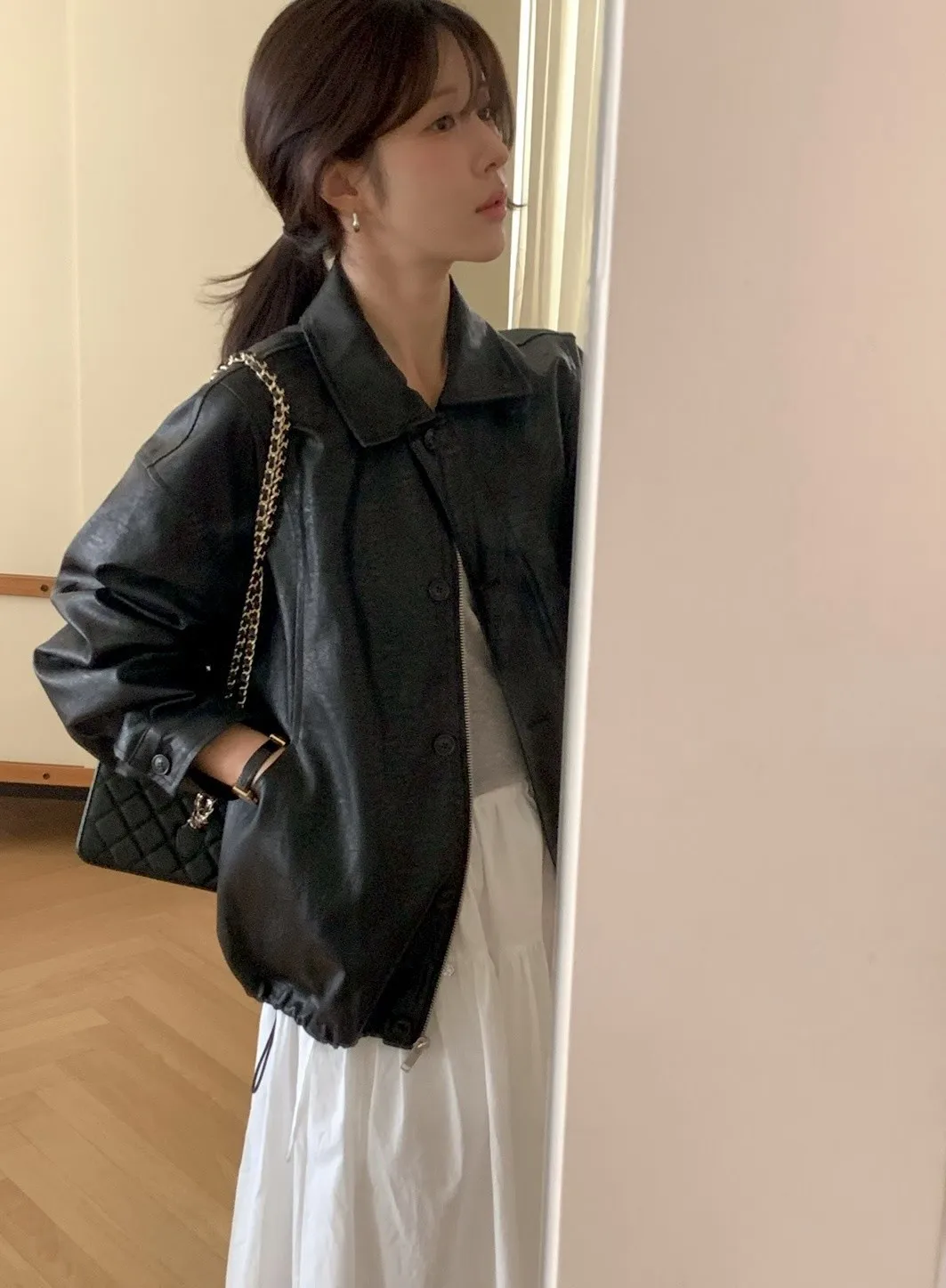 ANZ東大門新品🇰🇷A09 漢南洞歐膩 下抽繩皮革外套 Made in Korea