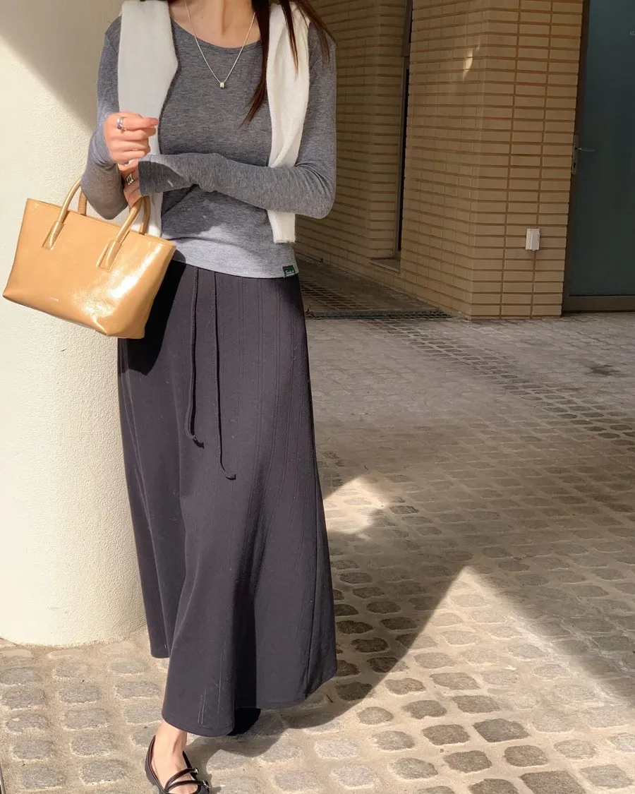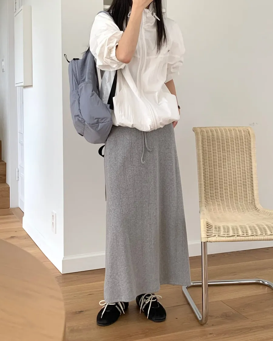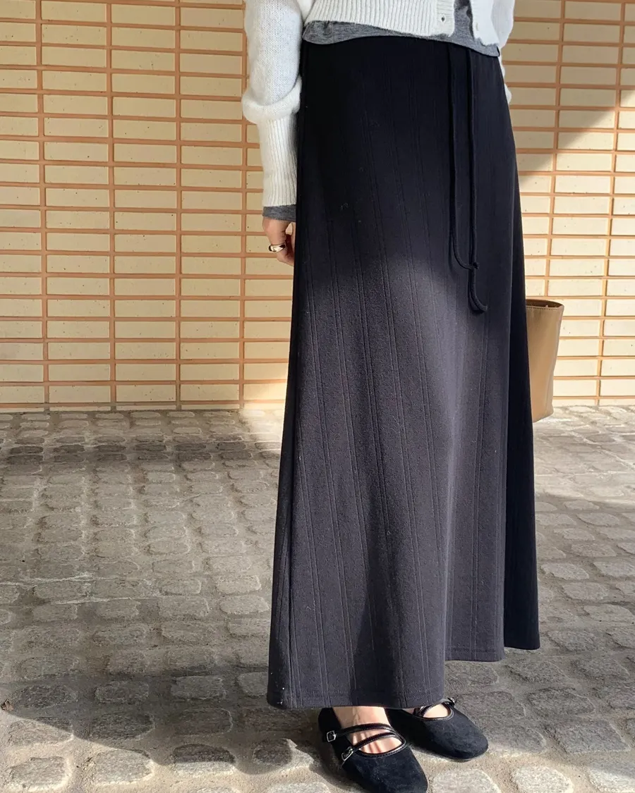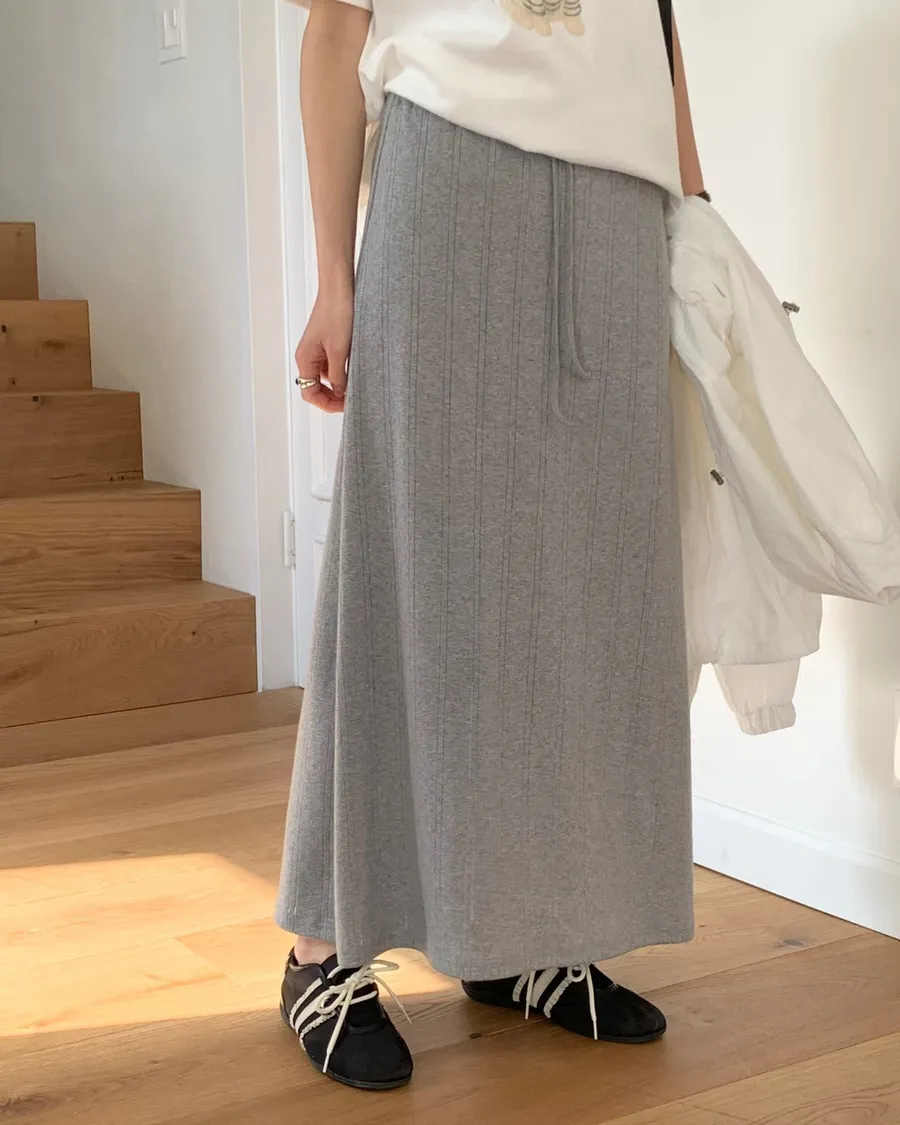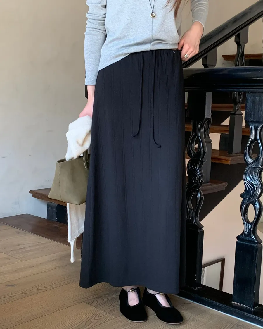ANZ東大門新品🇰🇷A04 棉料彈性繩綁帶 後開衩長裙 Made in Korea
