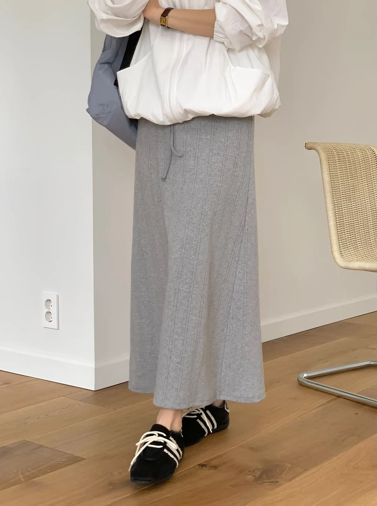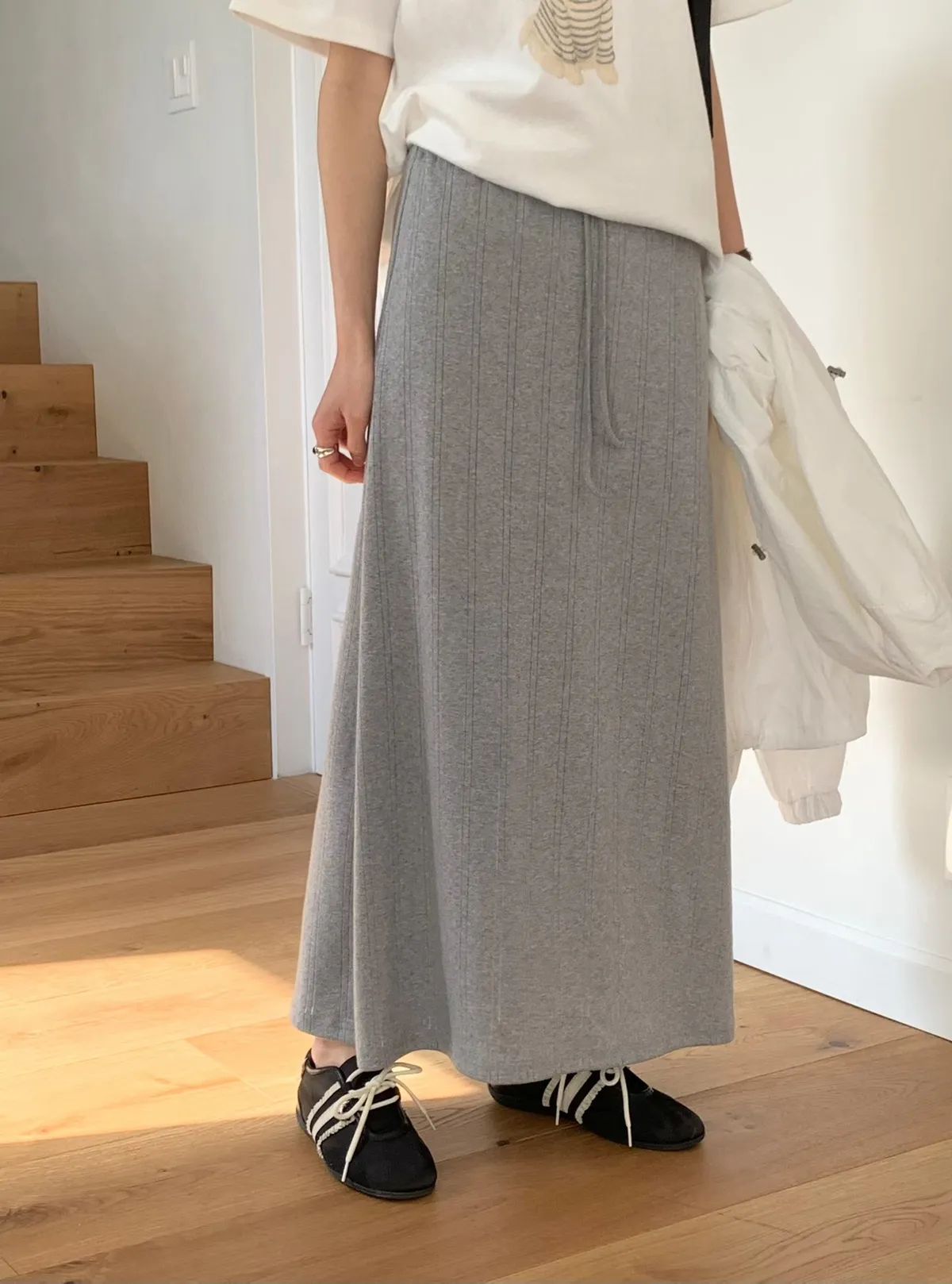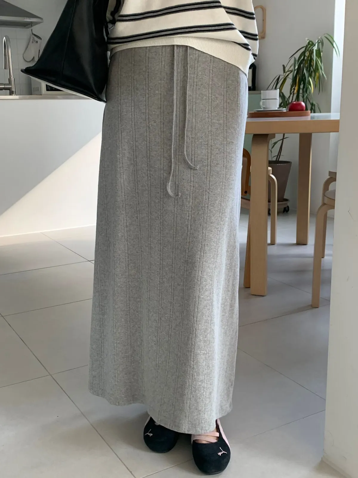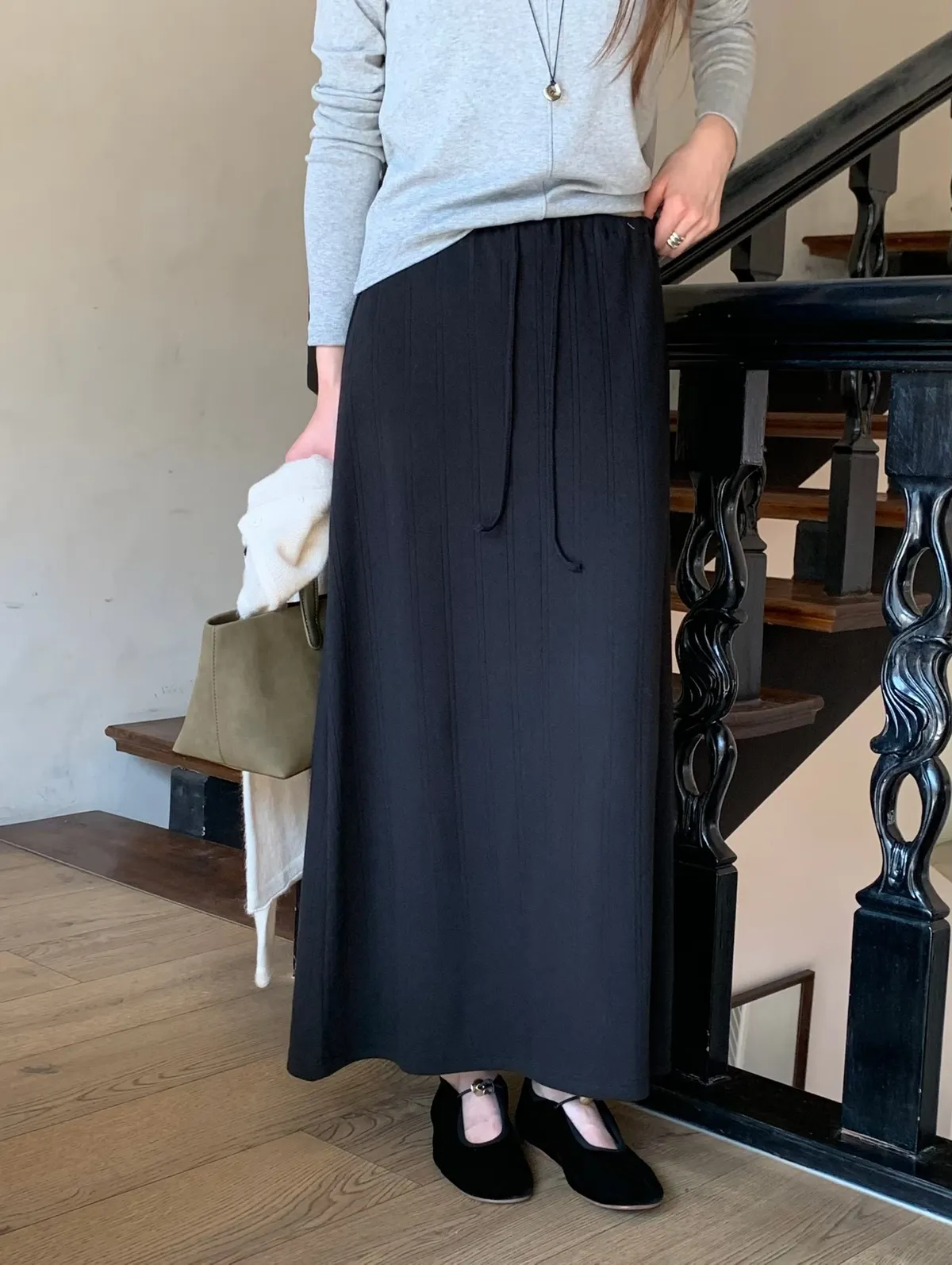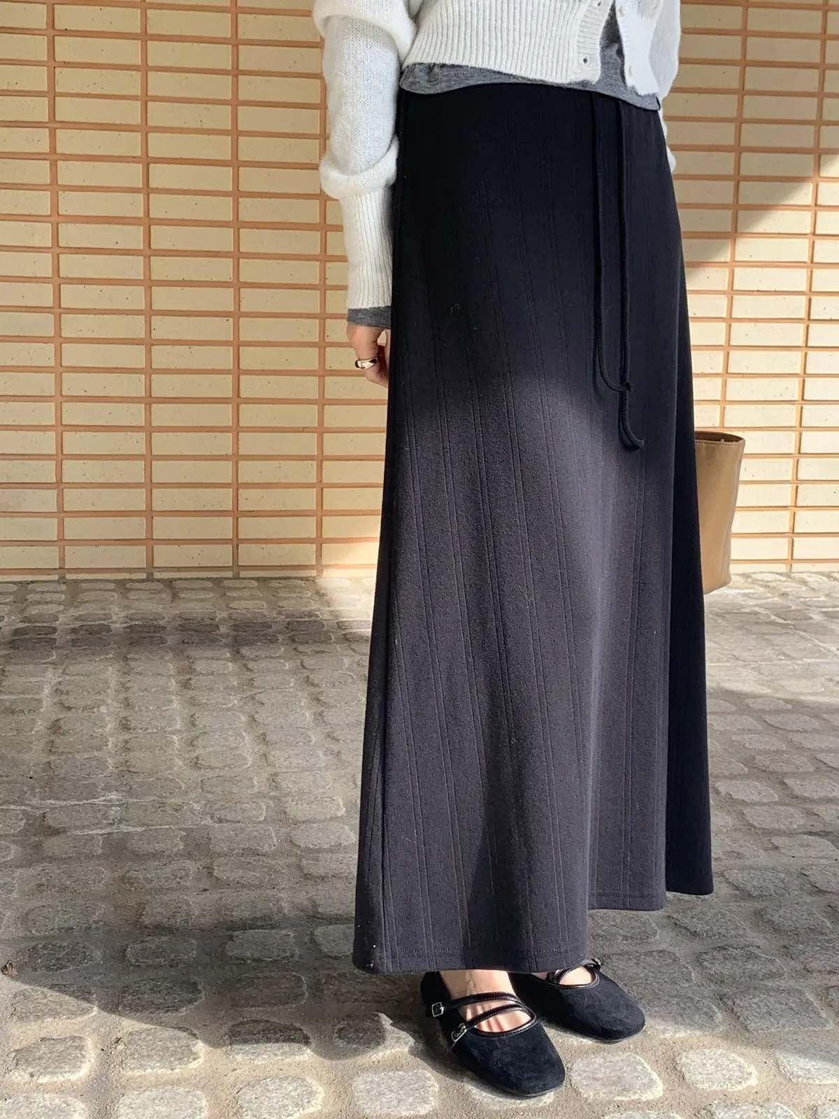 ANZ東大門新品🇰🇷A04 棉料彈性繩綁帶 後開衩長裙 Made in Korea