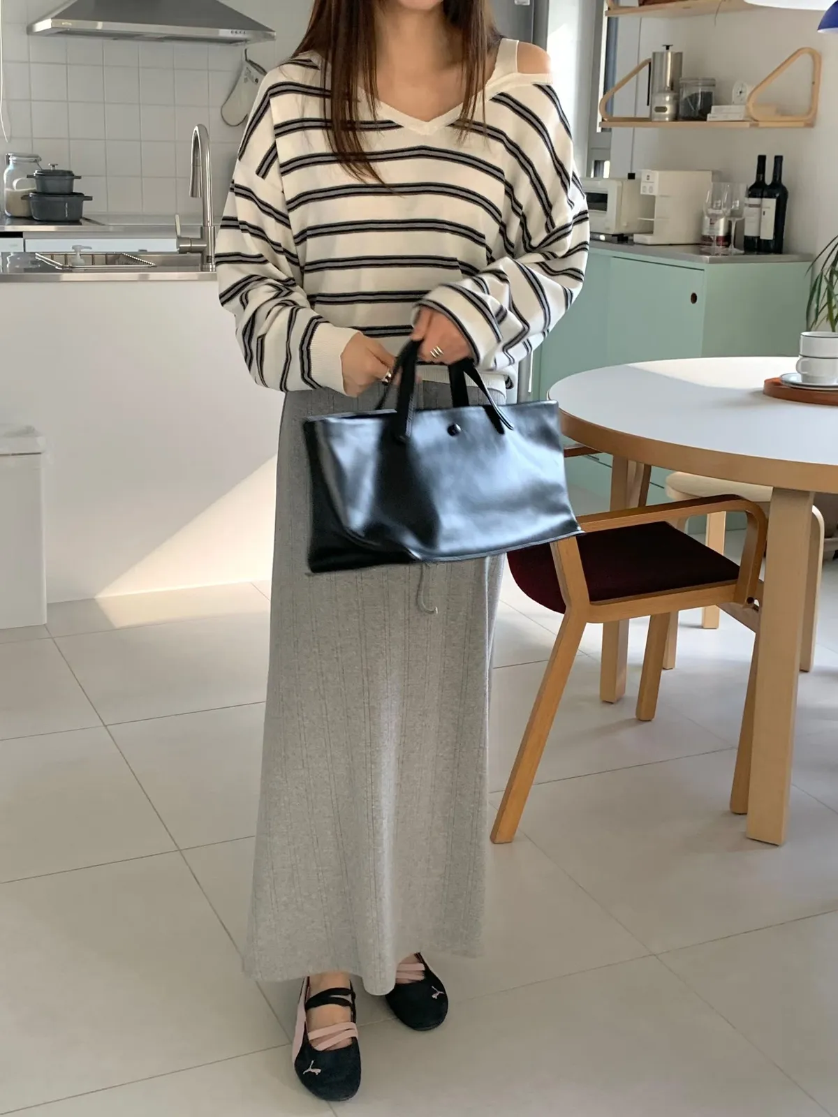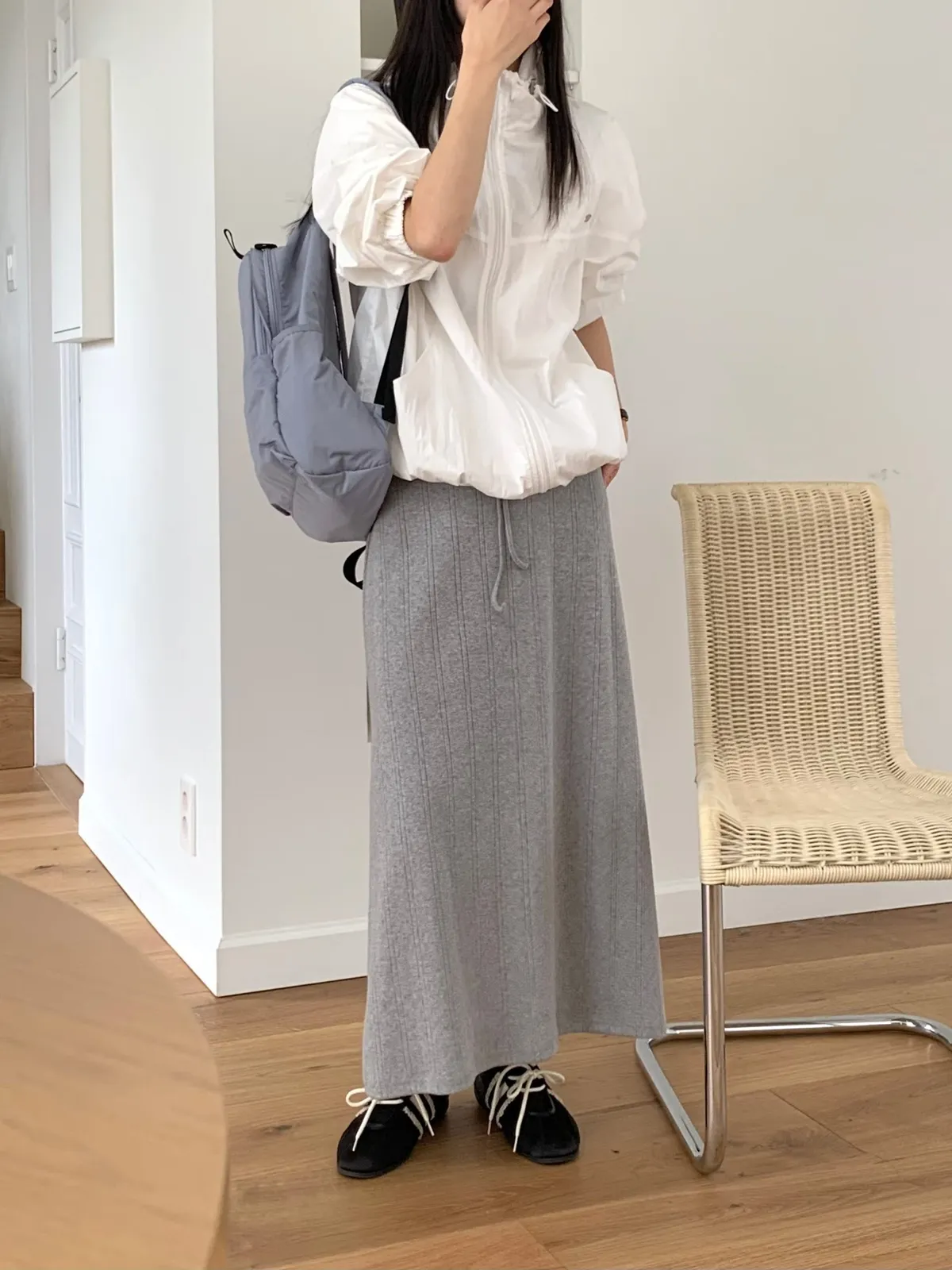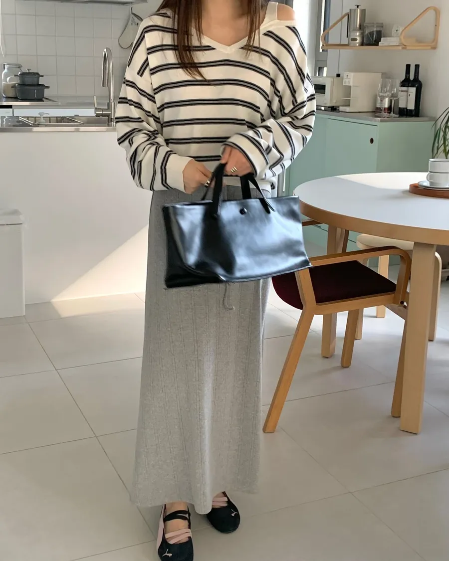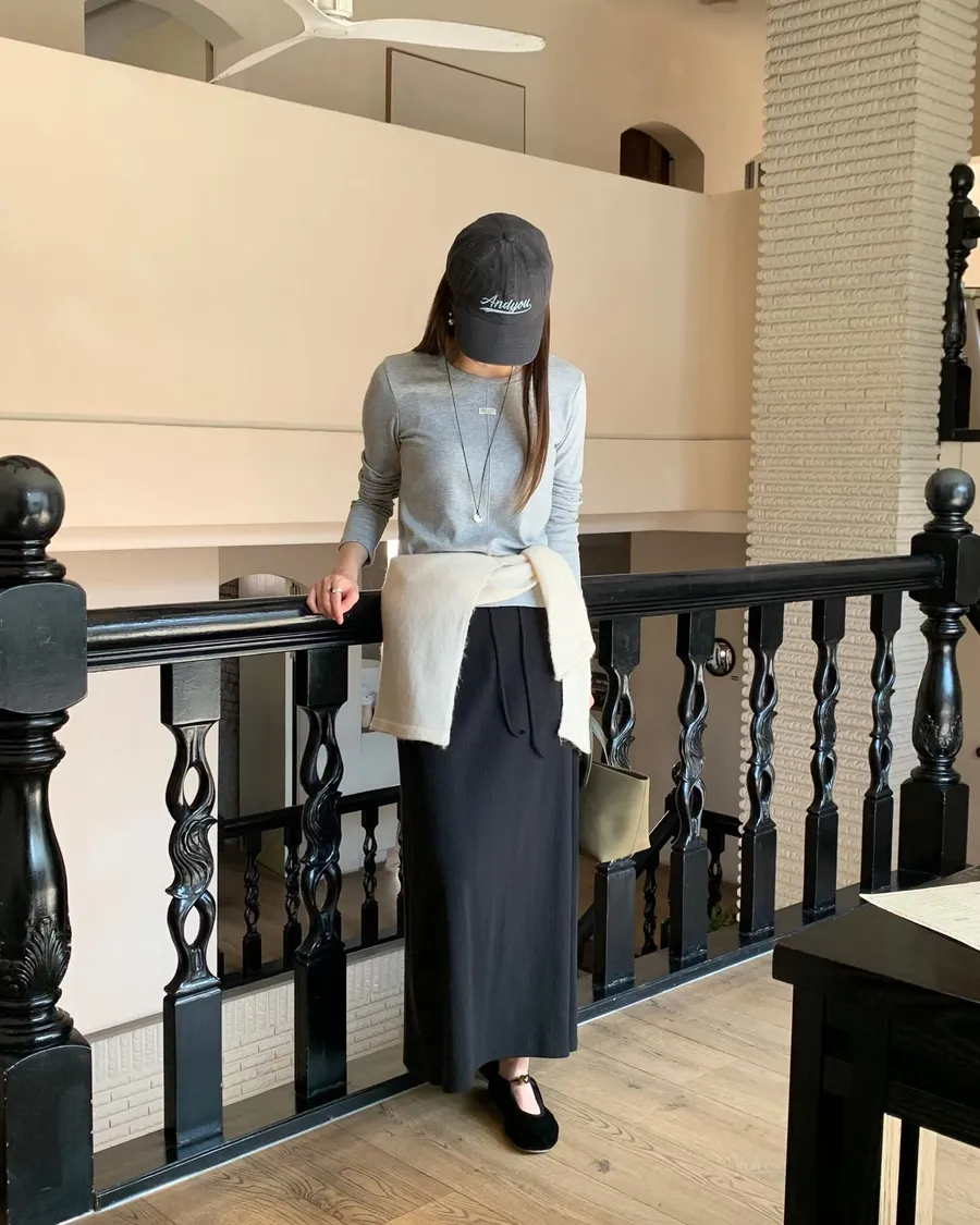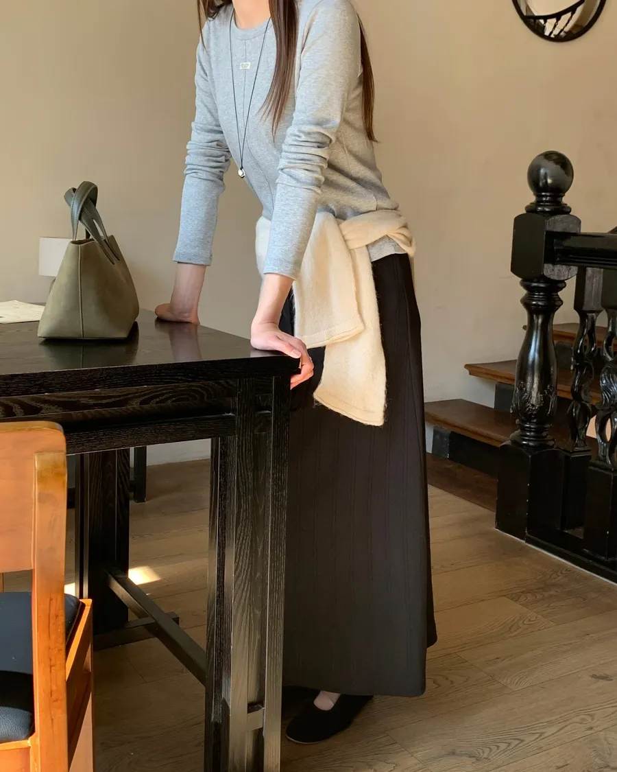ANZ東大門新品🇰🇷A04 棉料彈性繩綁帶 後開衩長裙 Made in Korea