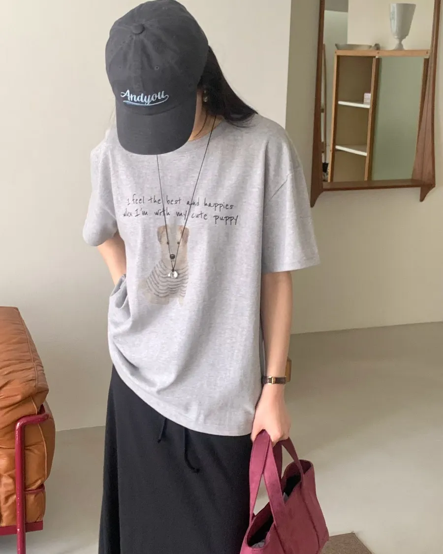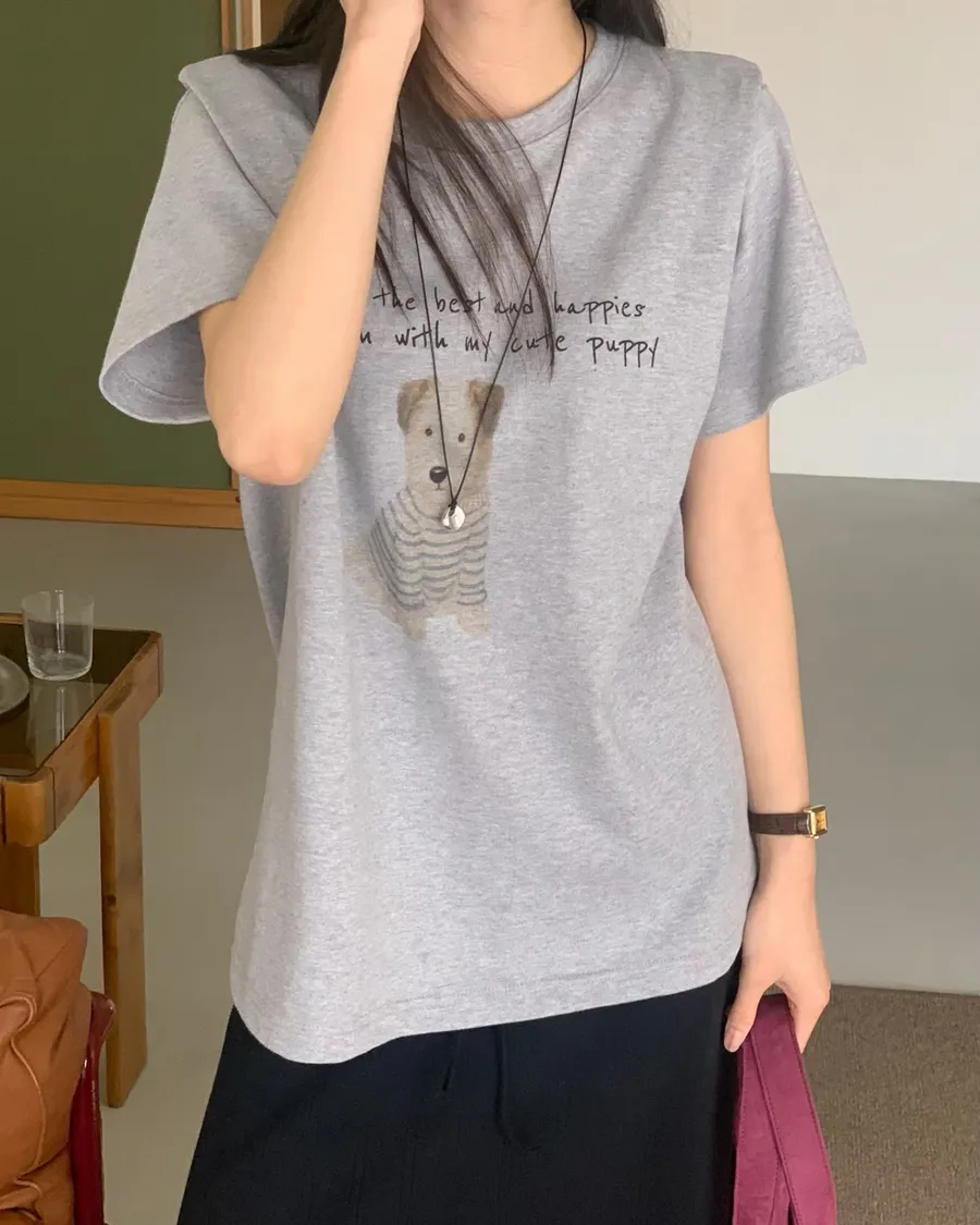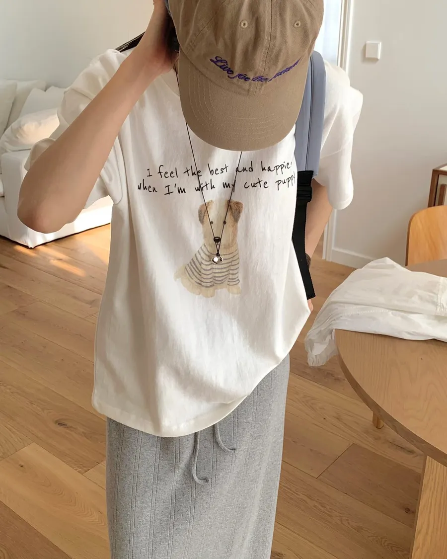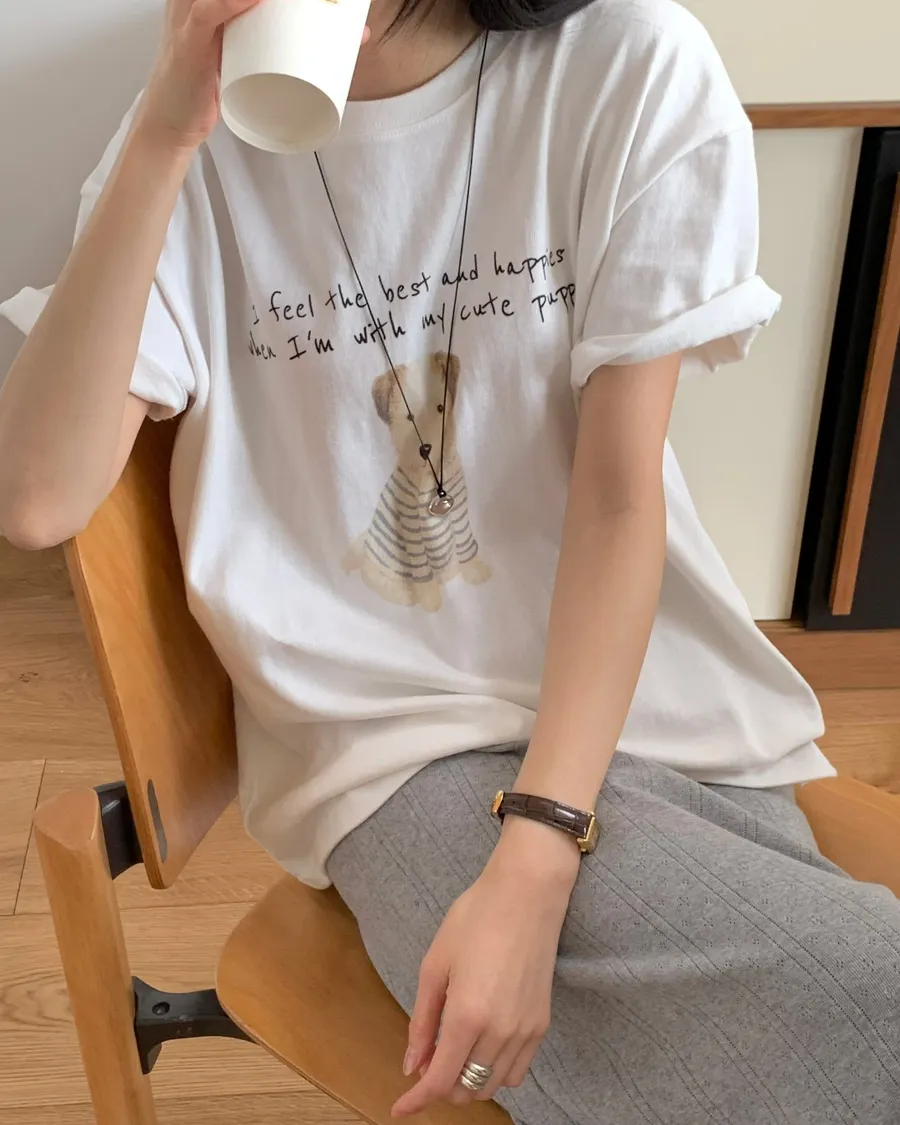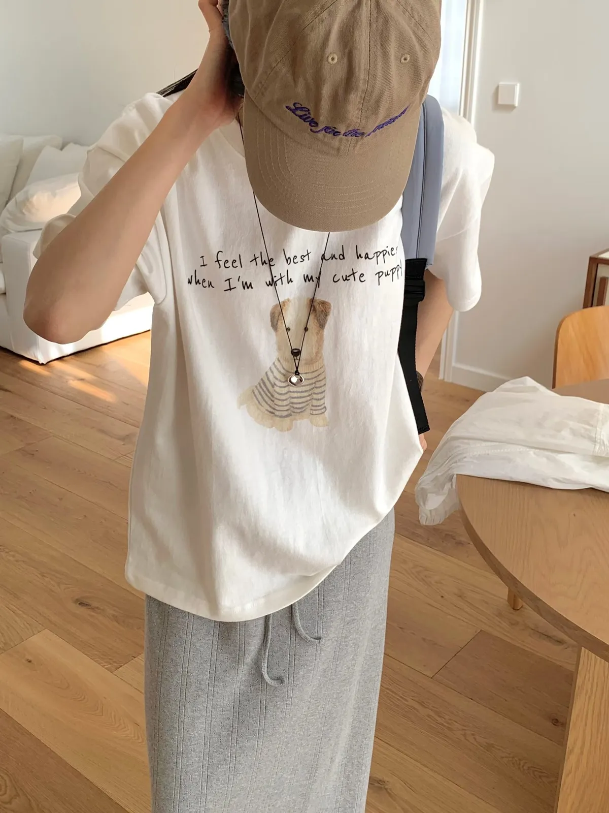 ANZ東大門新品🇰🇷A02 條紋小狗 純棉短T Made in Korea