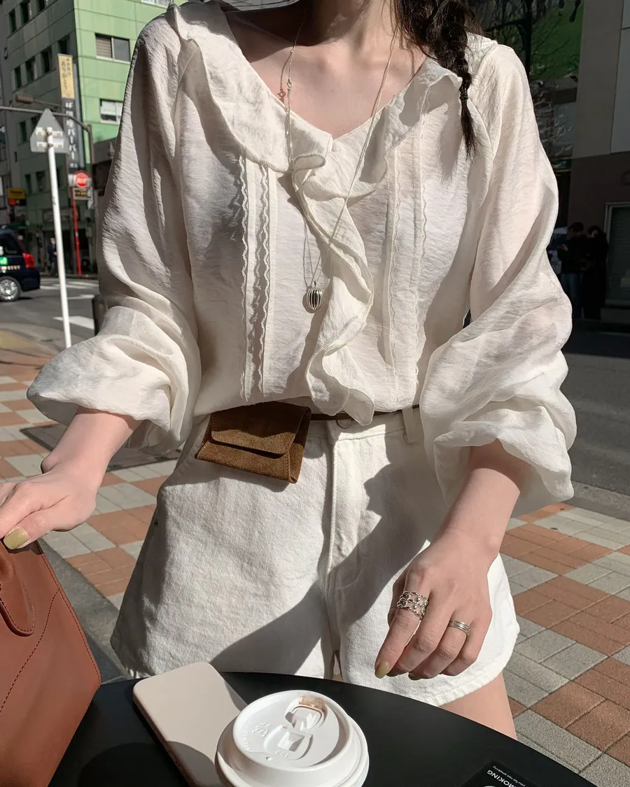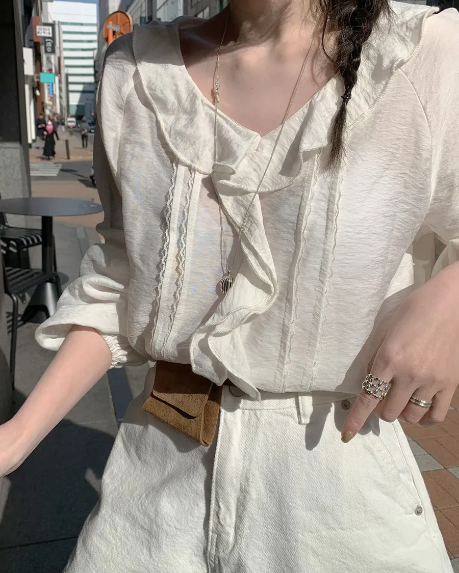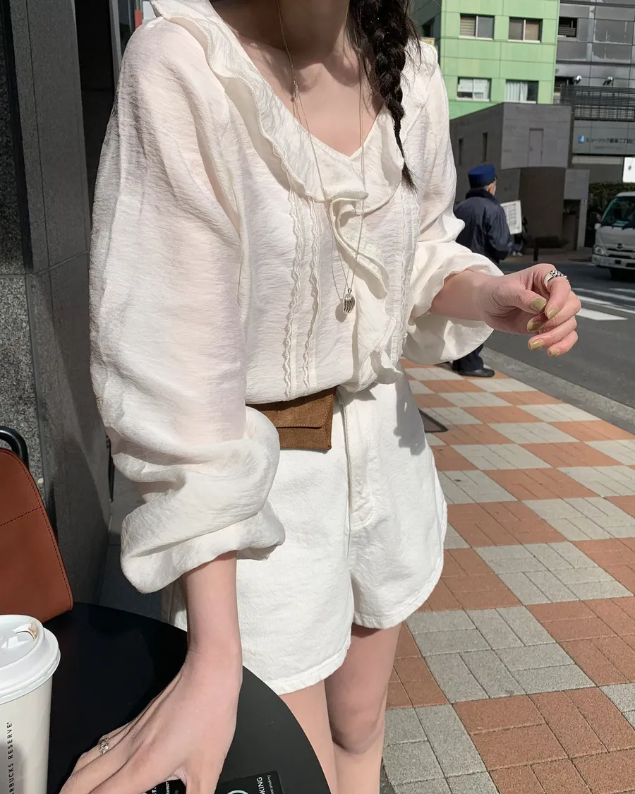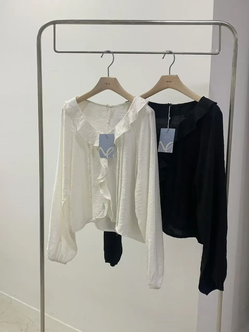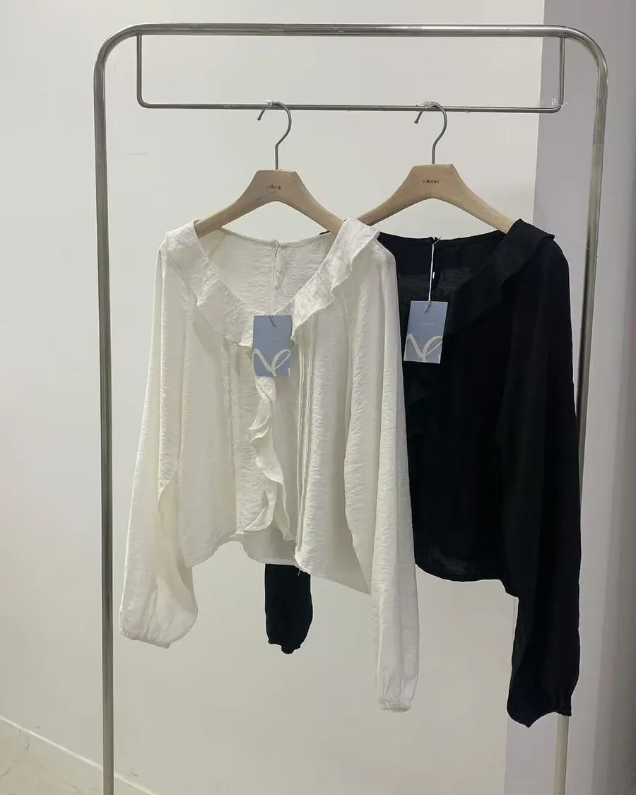 ANZ東大門新品🇰🇷A14 浪漫波浪領 綁帶上衣 Made in Korea