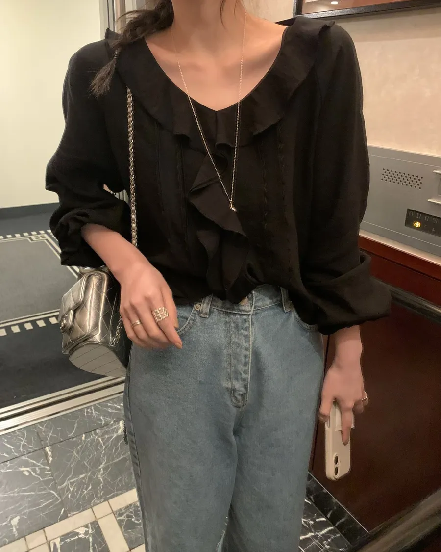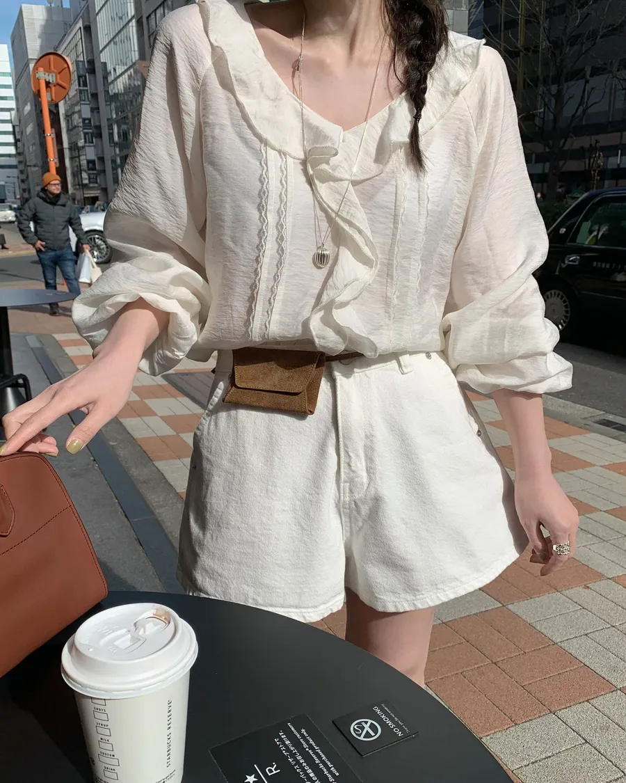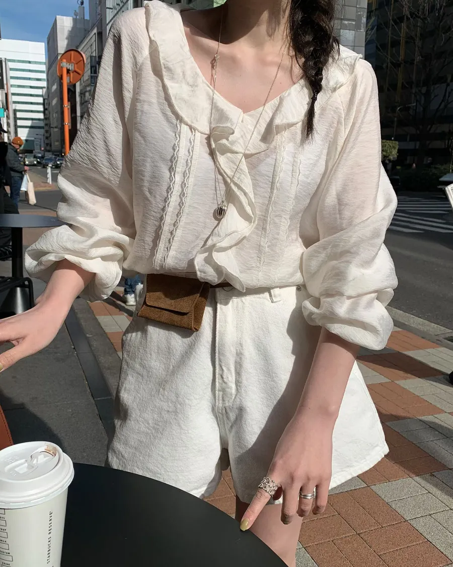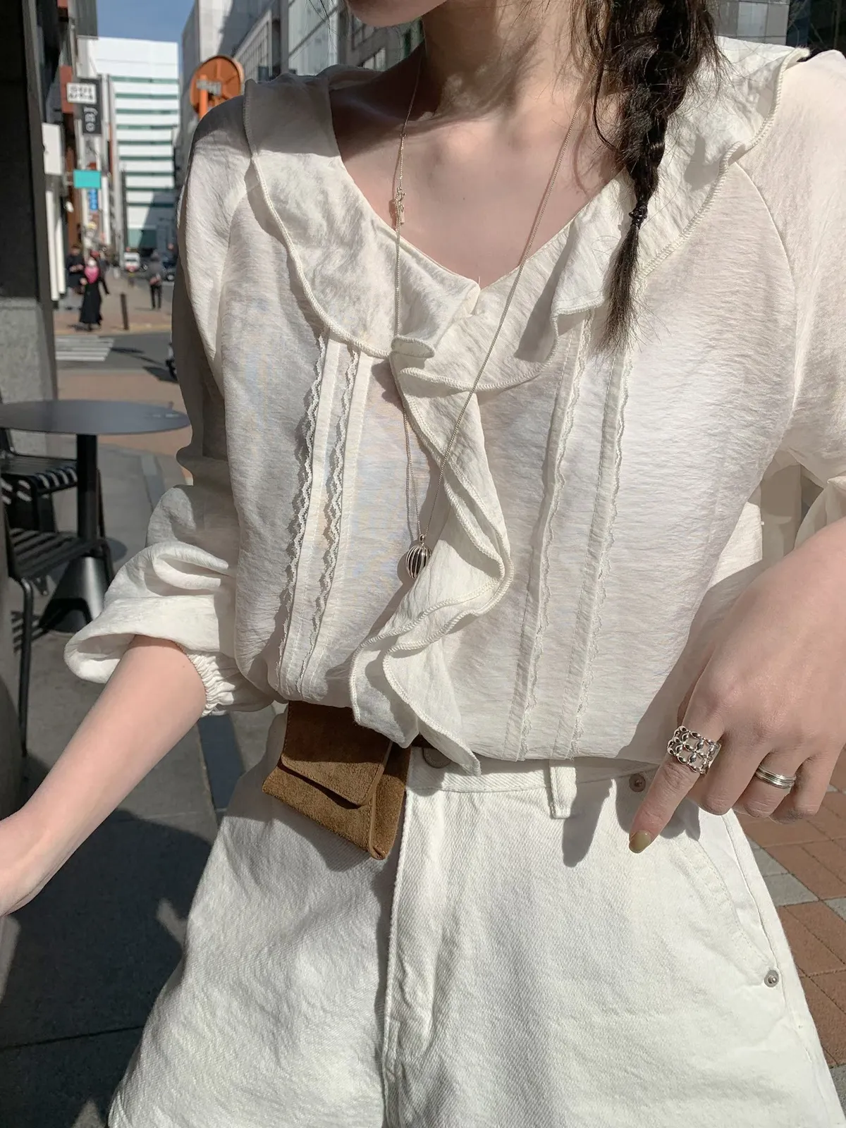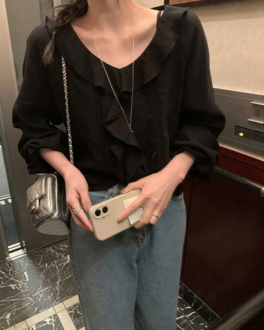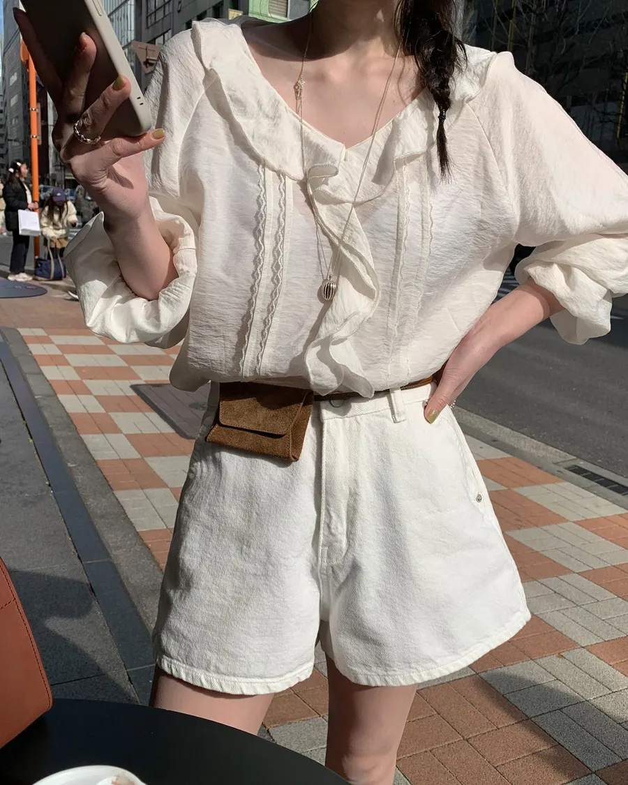 ANZ東大門新品🇰🇷A14 浪漫波浪領 綁帶上衣 Made in Korea
