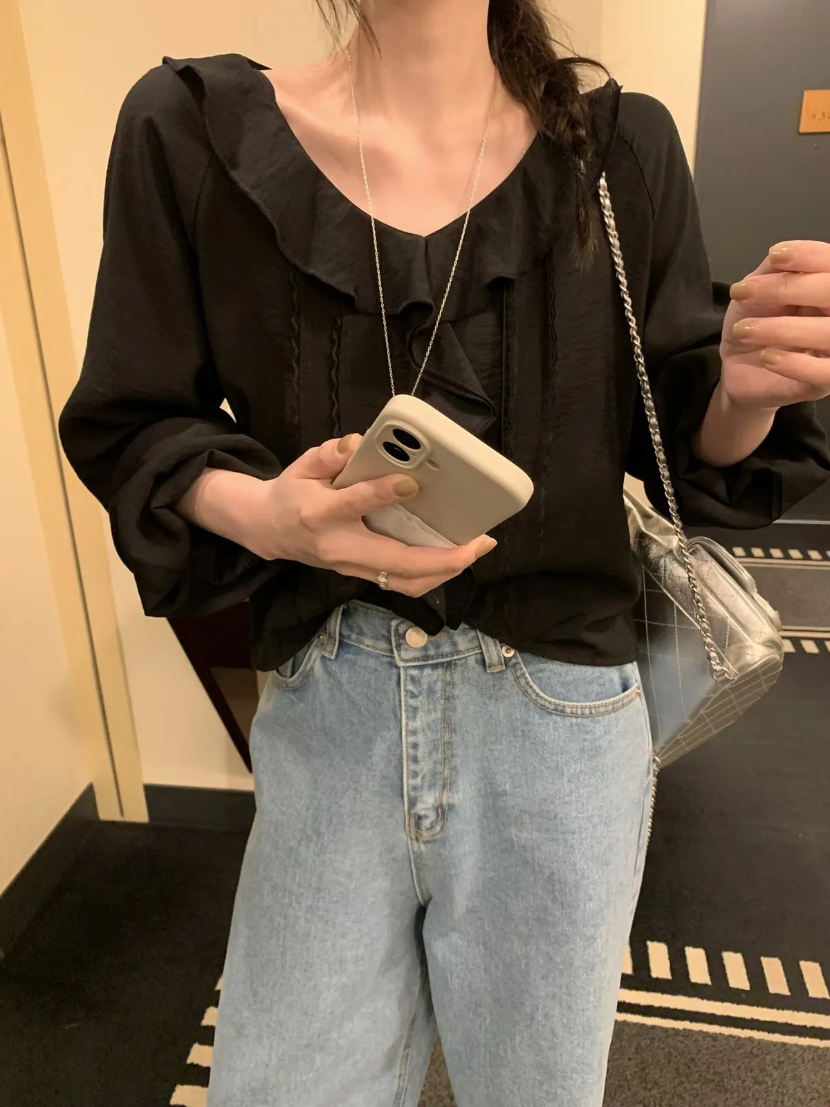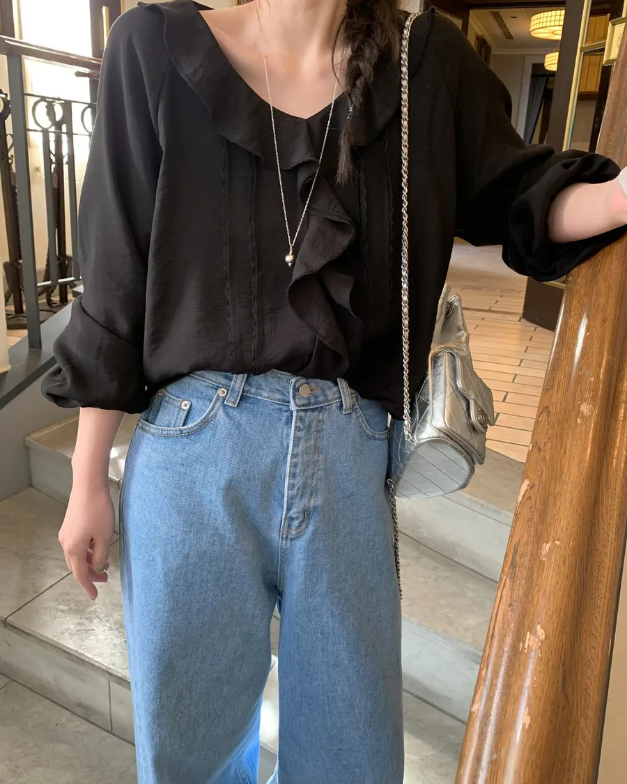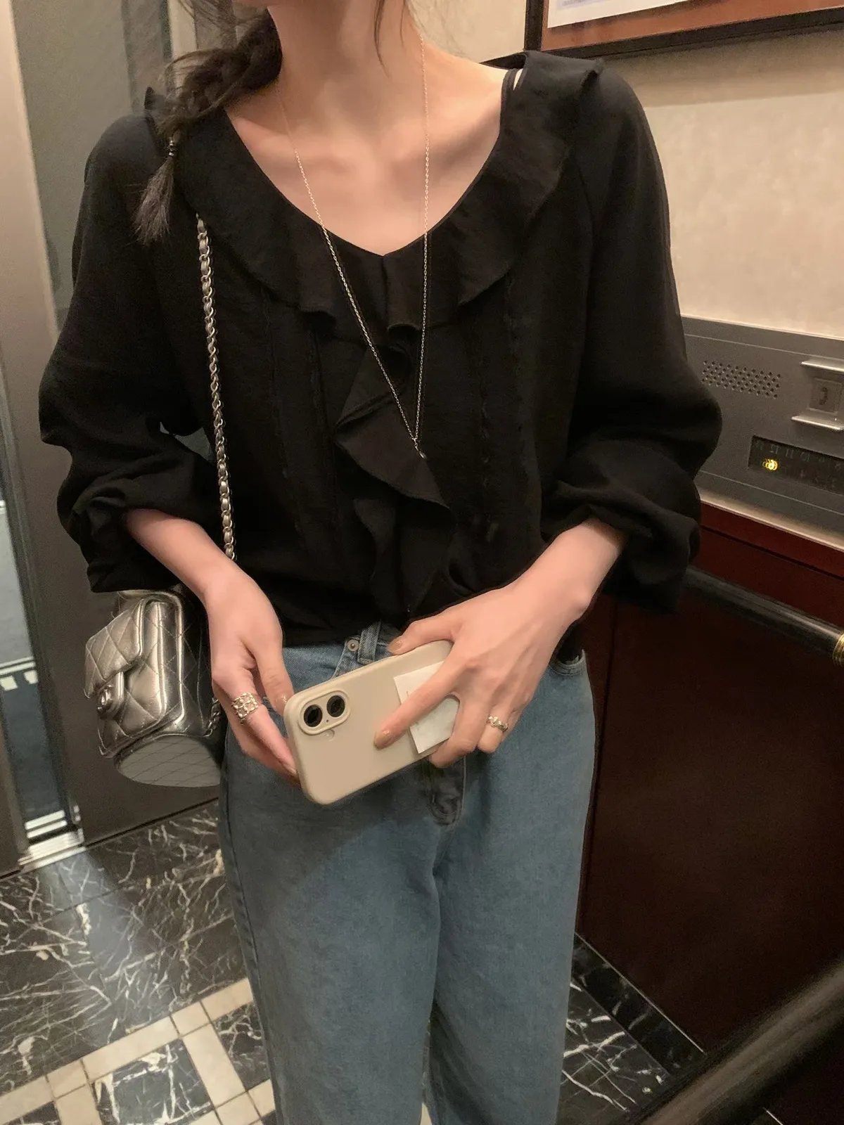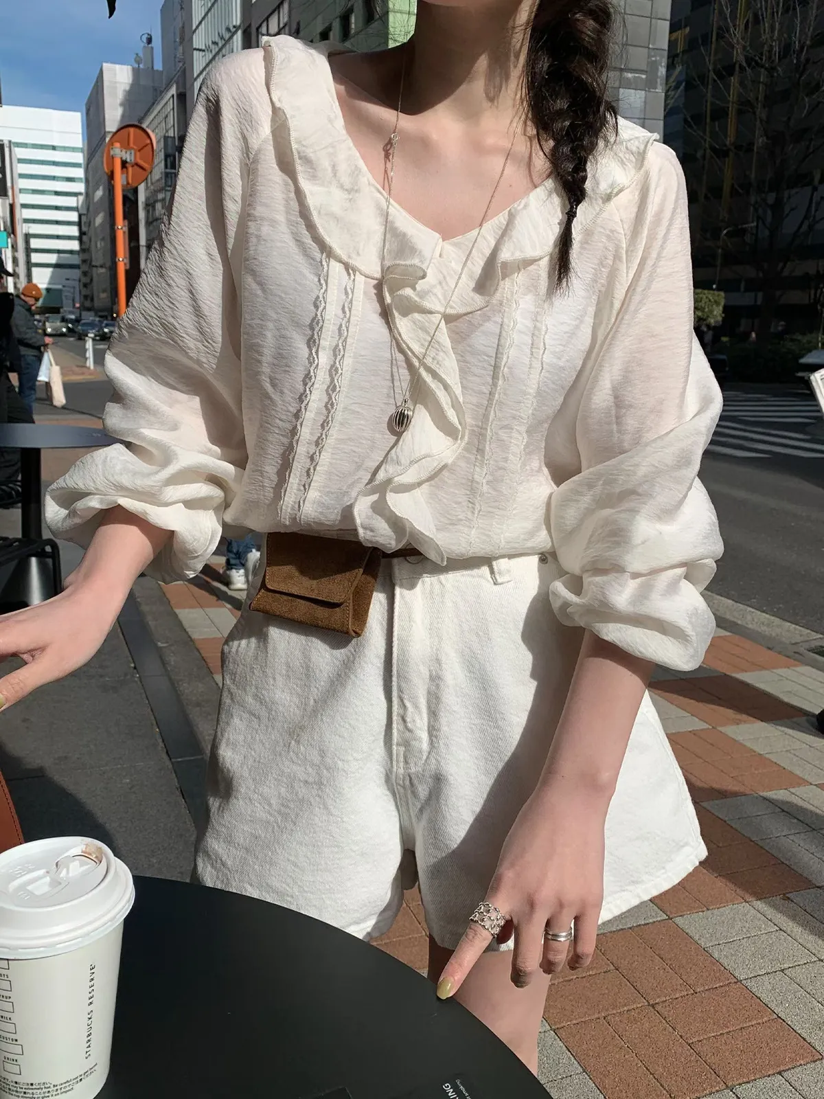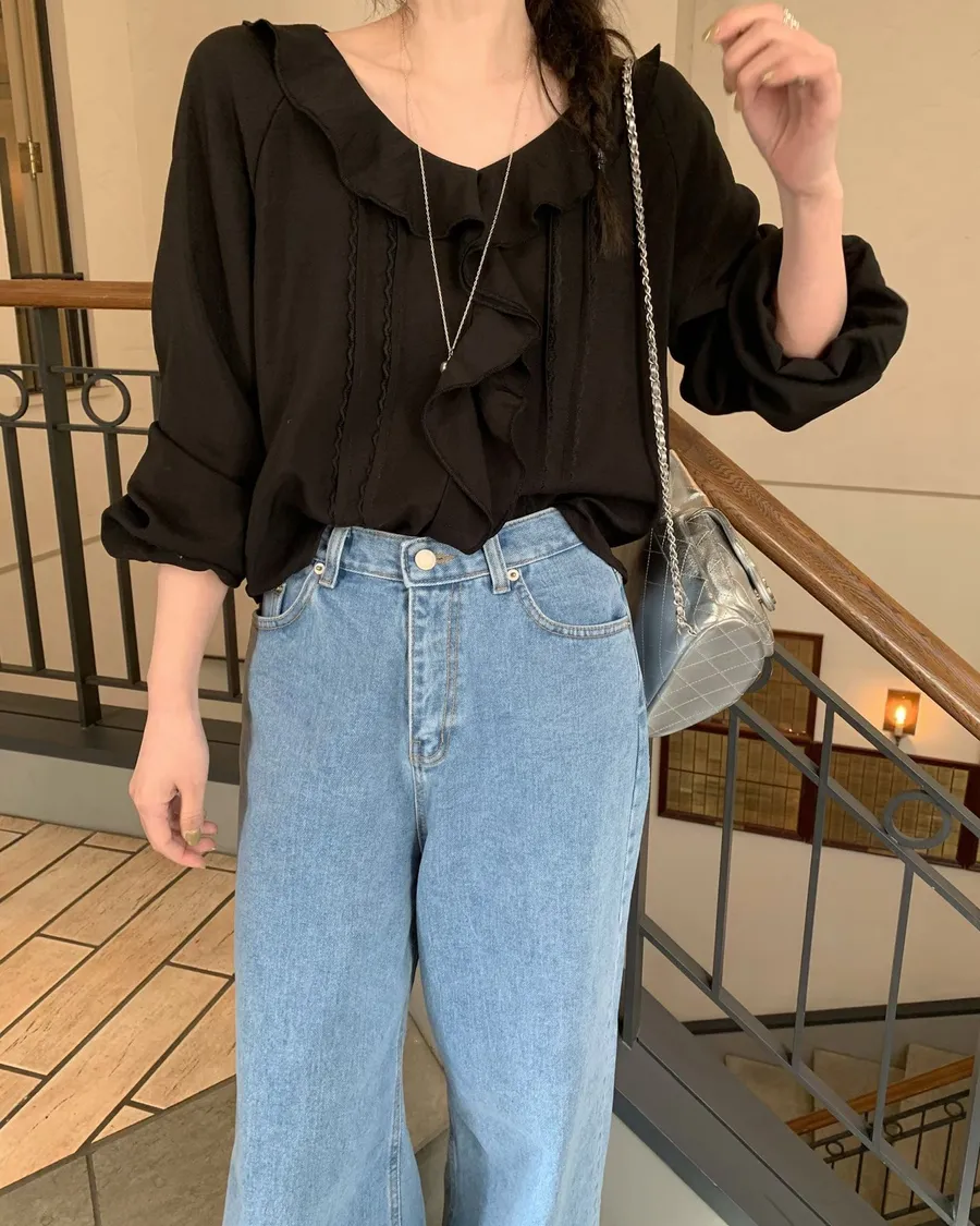 ANZ東大門新品🇰🇷A14 浪漫波浪領 綁帶上衣 Made in Korea