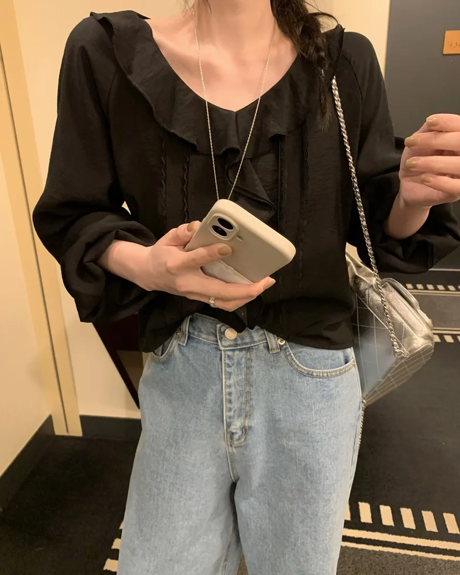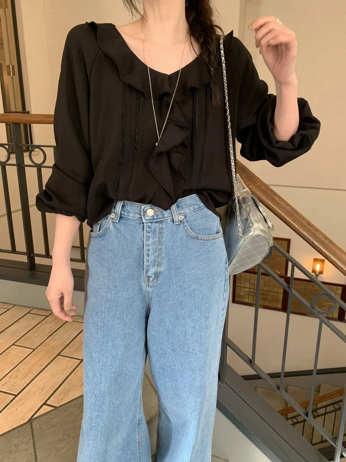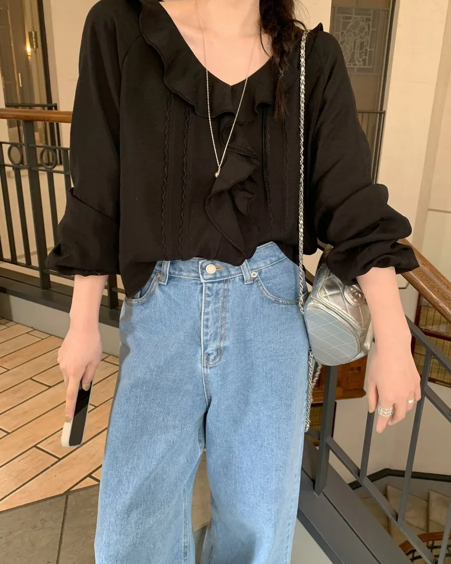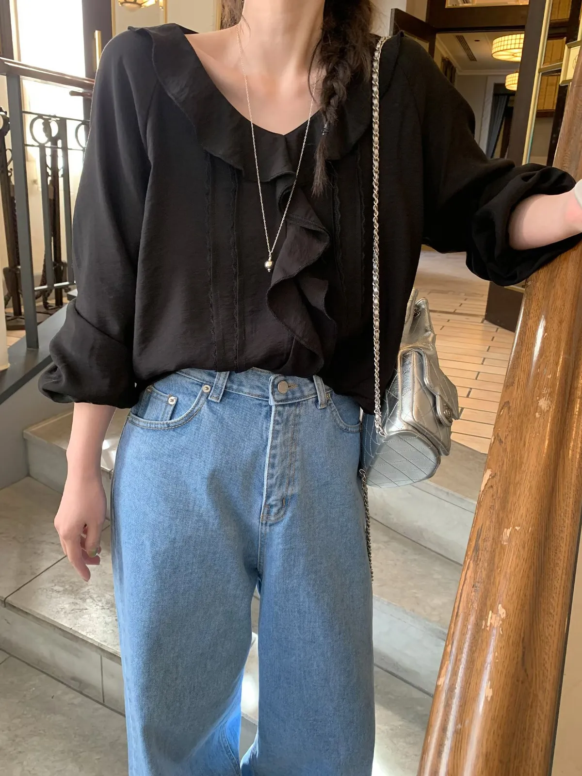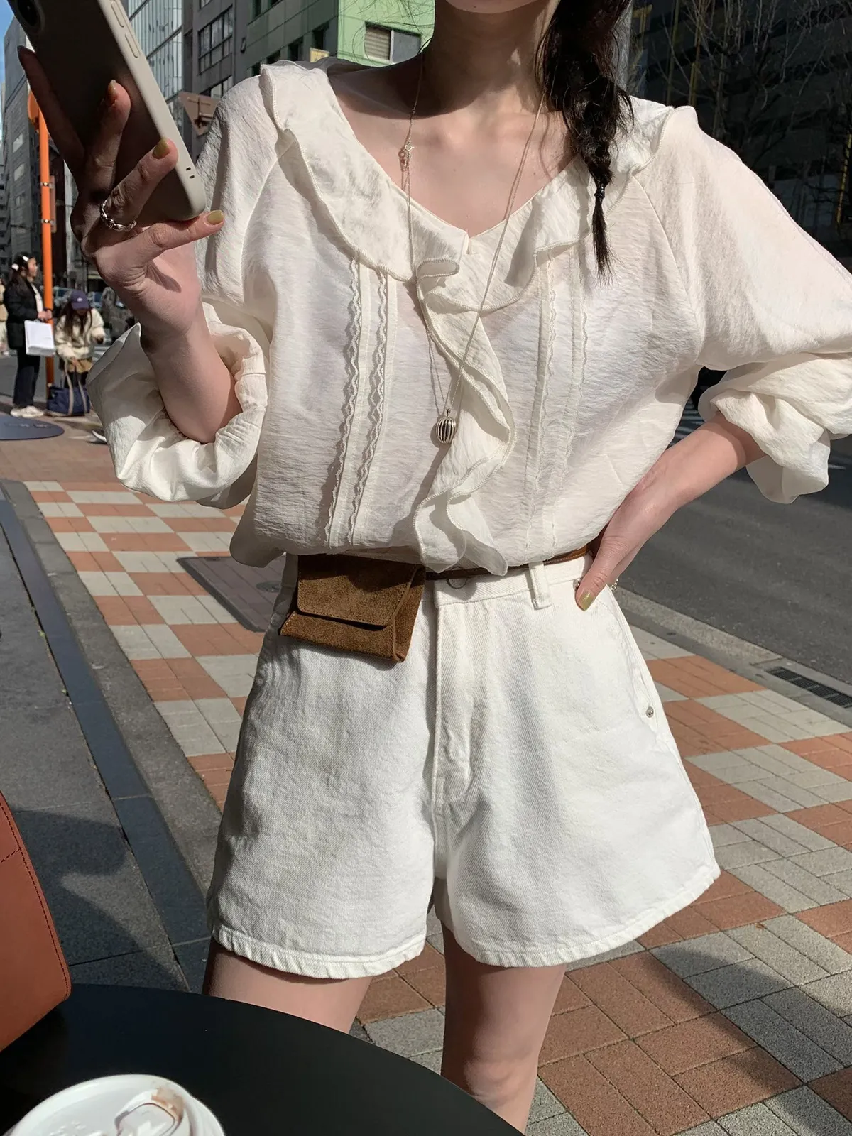 ANZ東大門新品🇰🇷A14 浪漫波浪領 綁帶上衣 Made in Korea