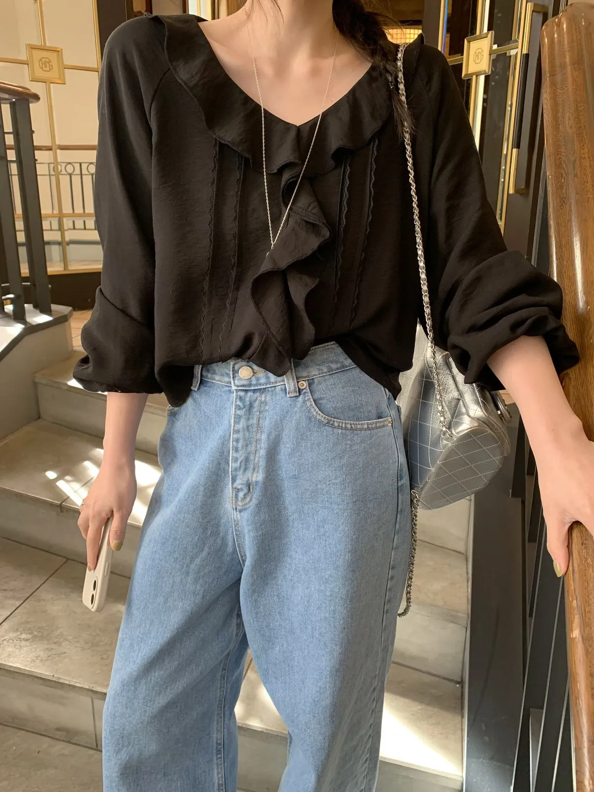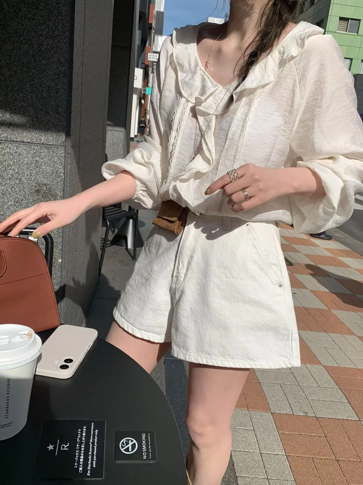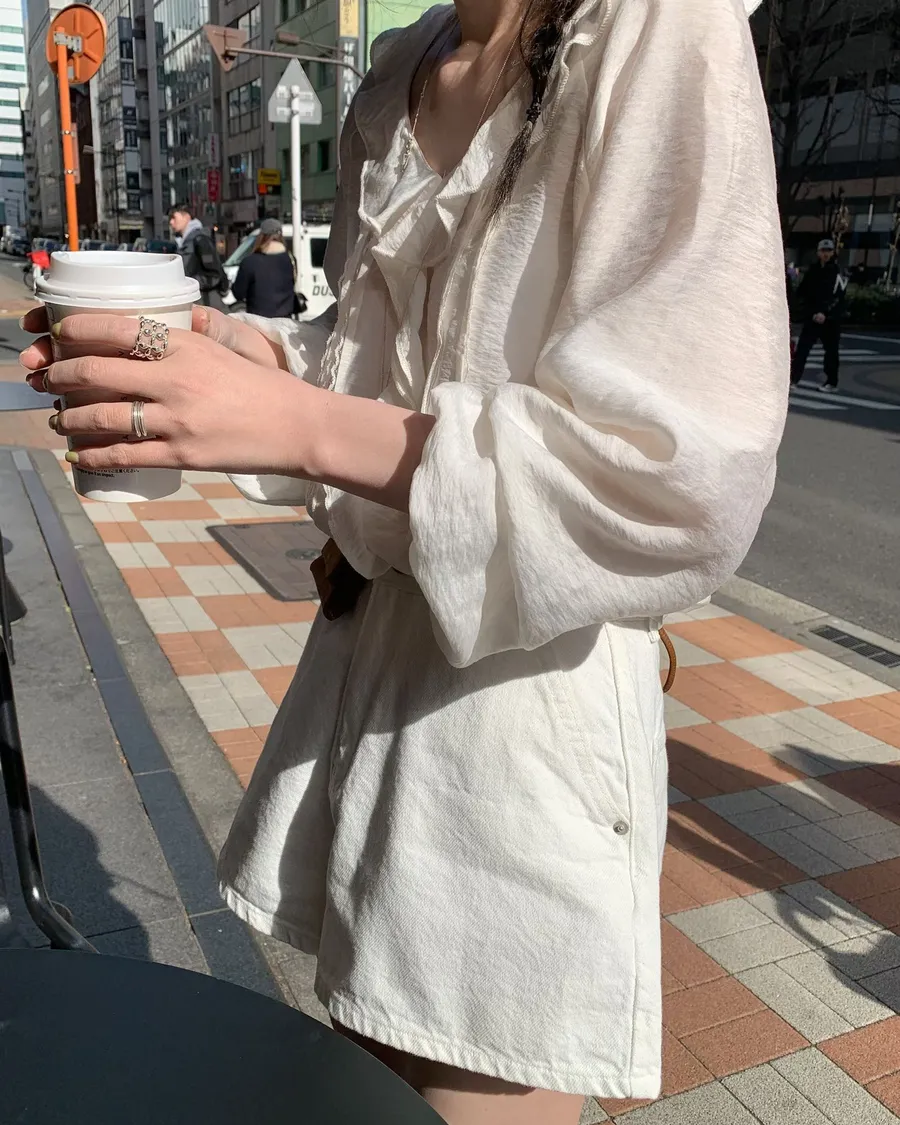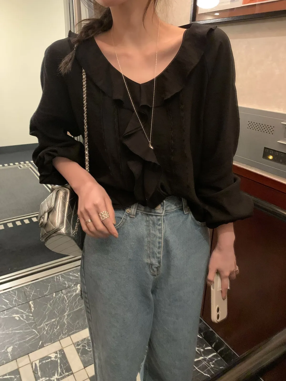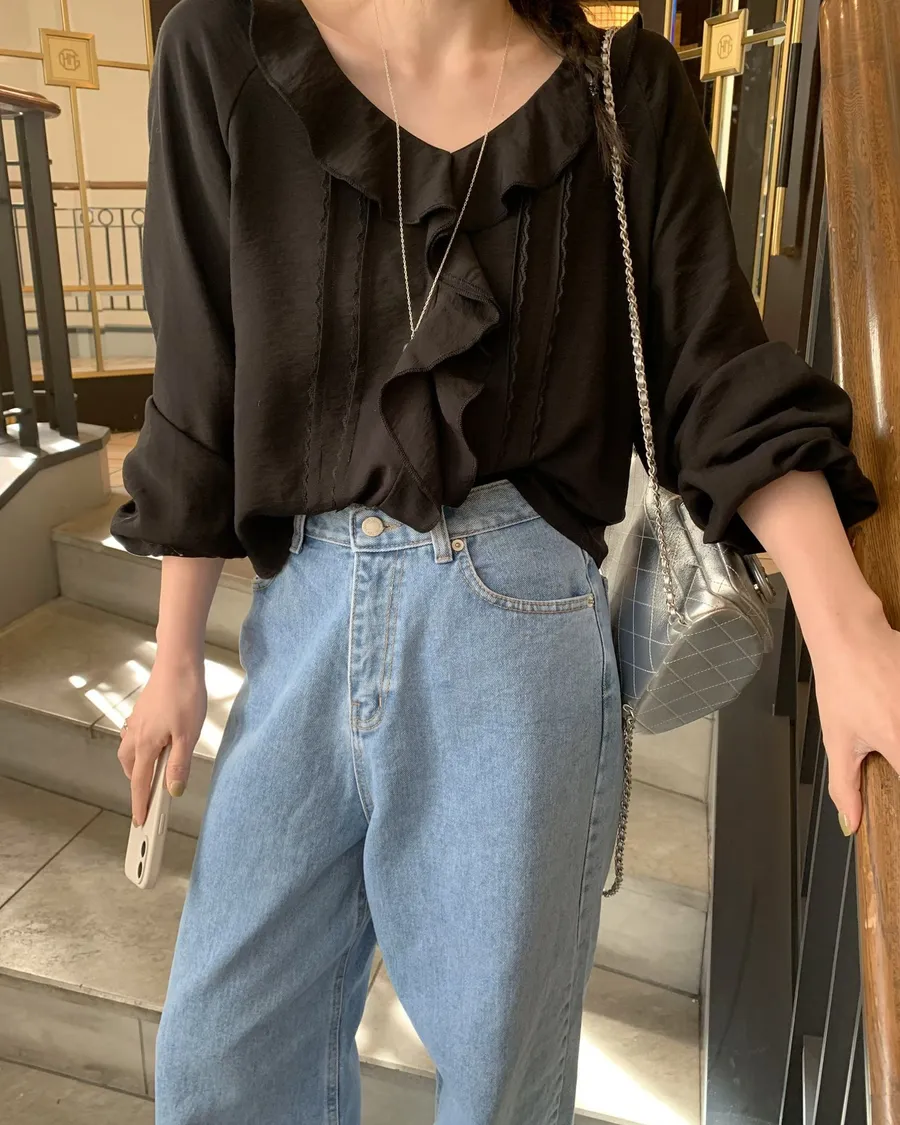ANZ東大門新品🇰🇷A14 浪漫波浪領 綁帶上衣 Made in Korea