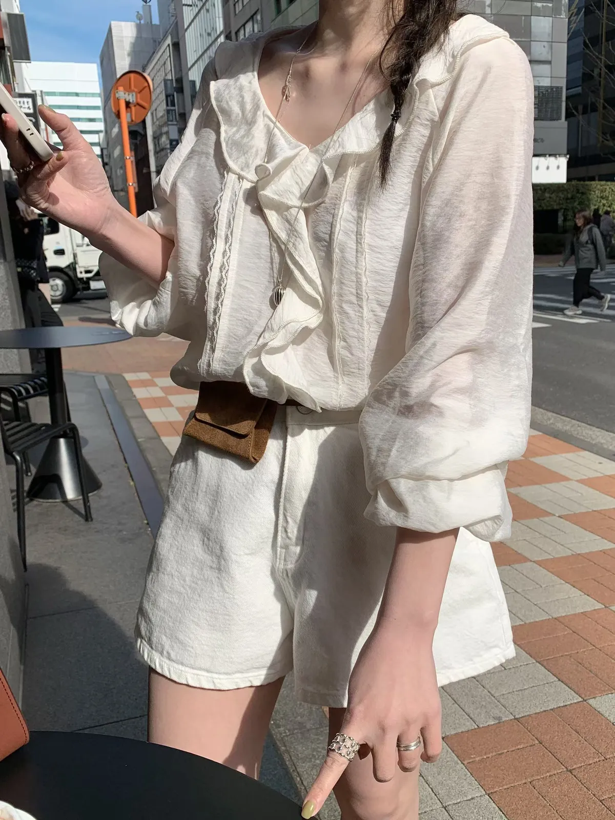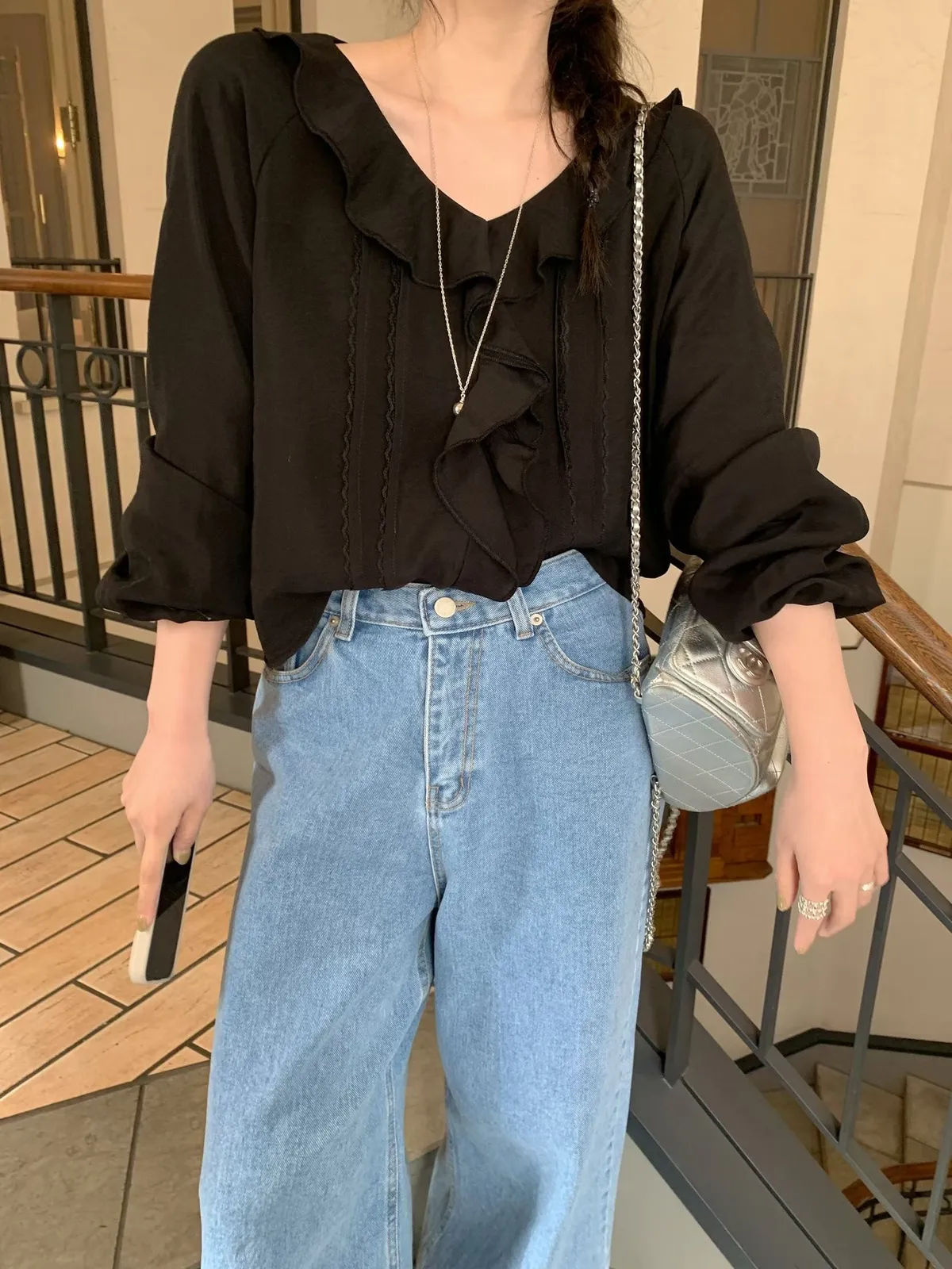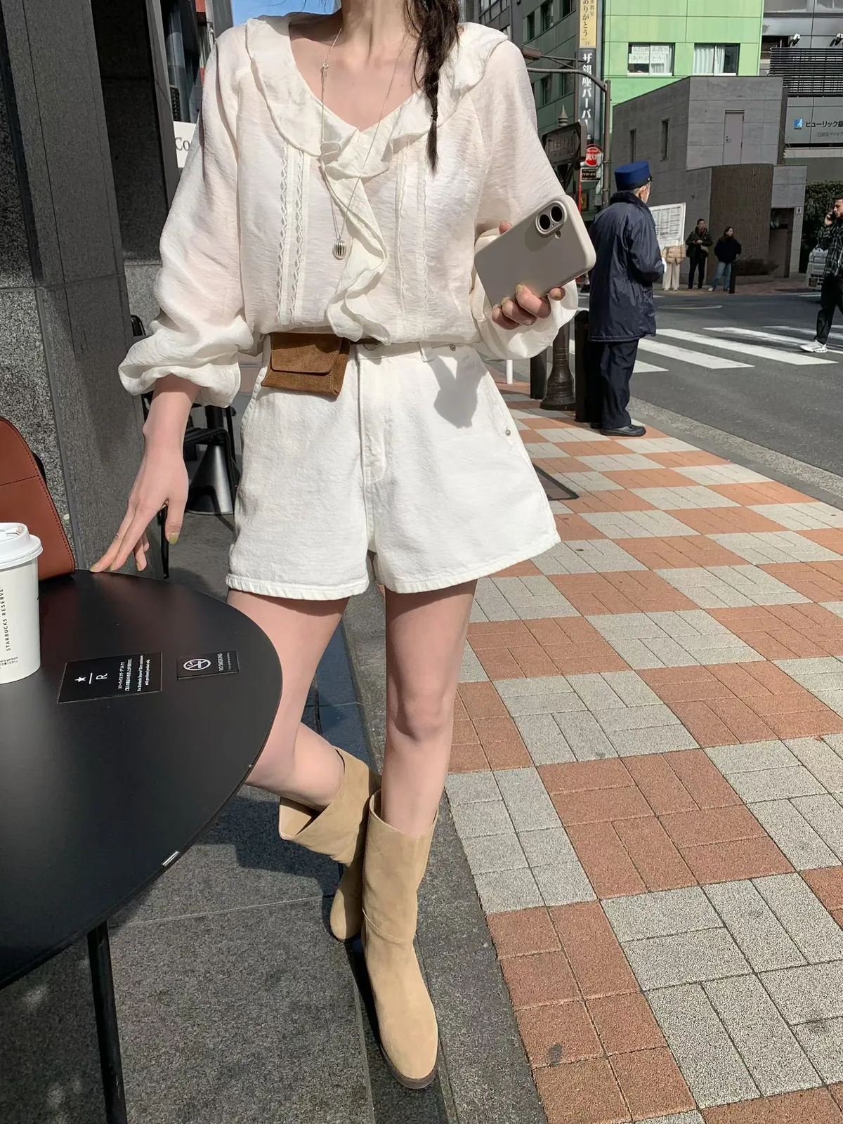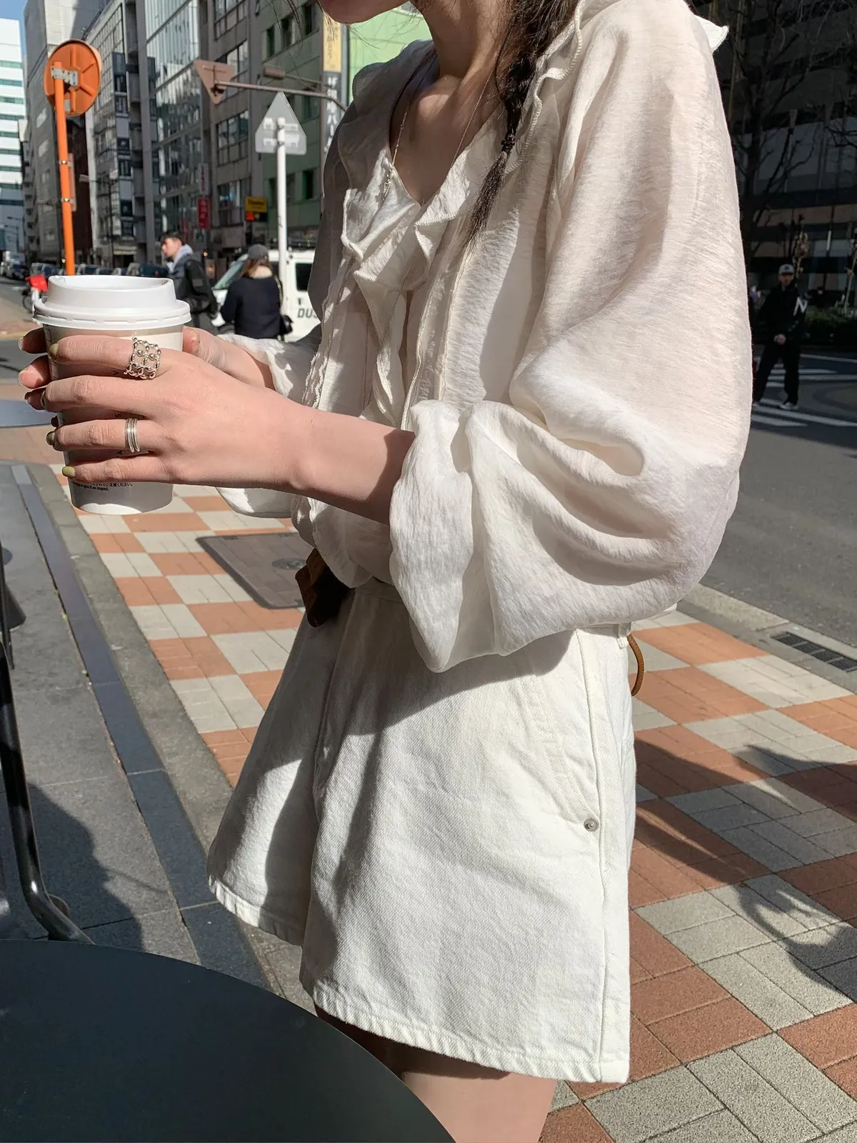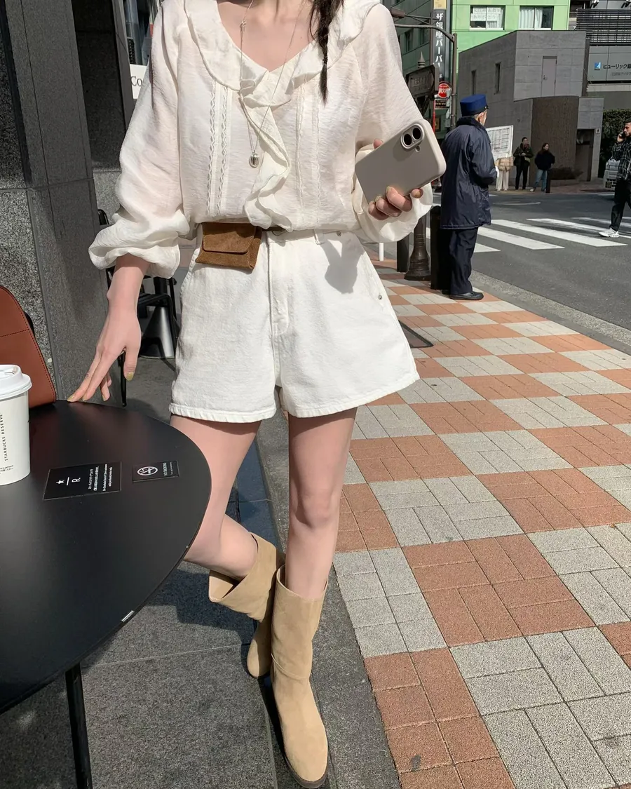 ANZ東大門新品🇰🇷A14 浪漫波浪領 綁帶上衣 Made in Korea