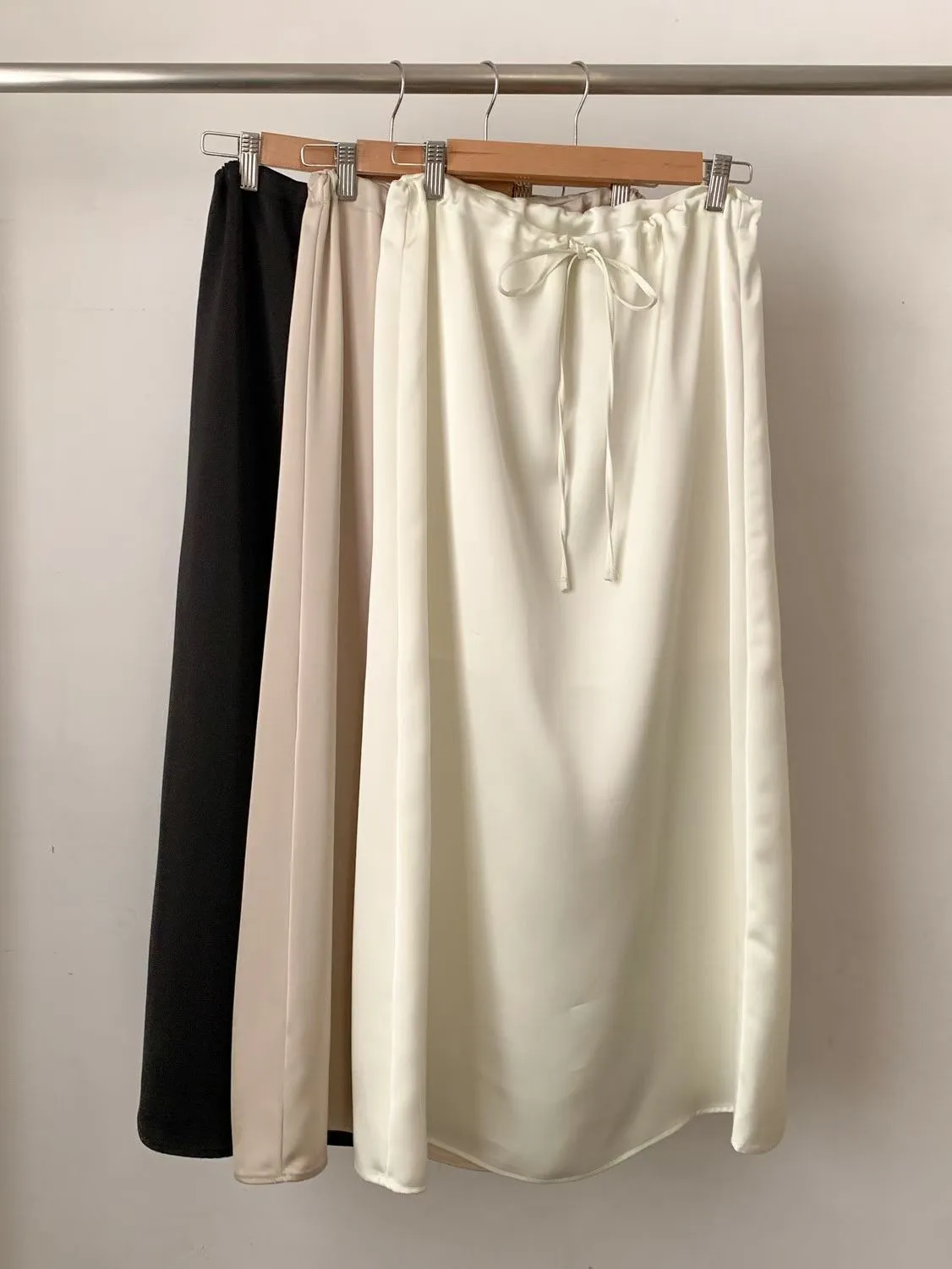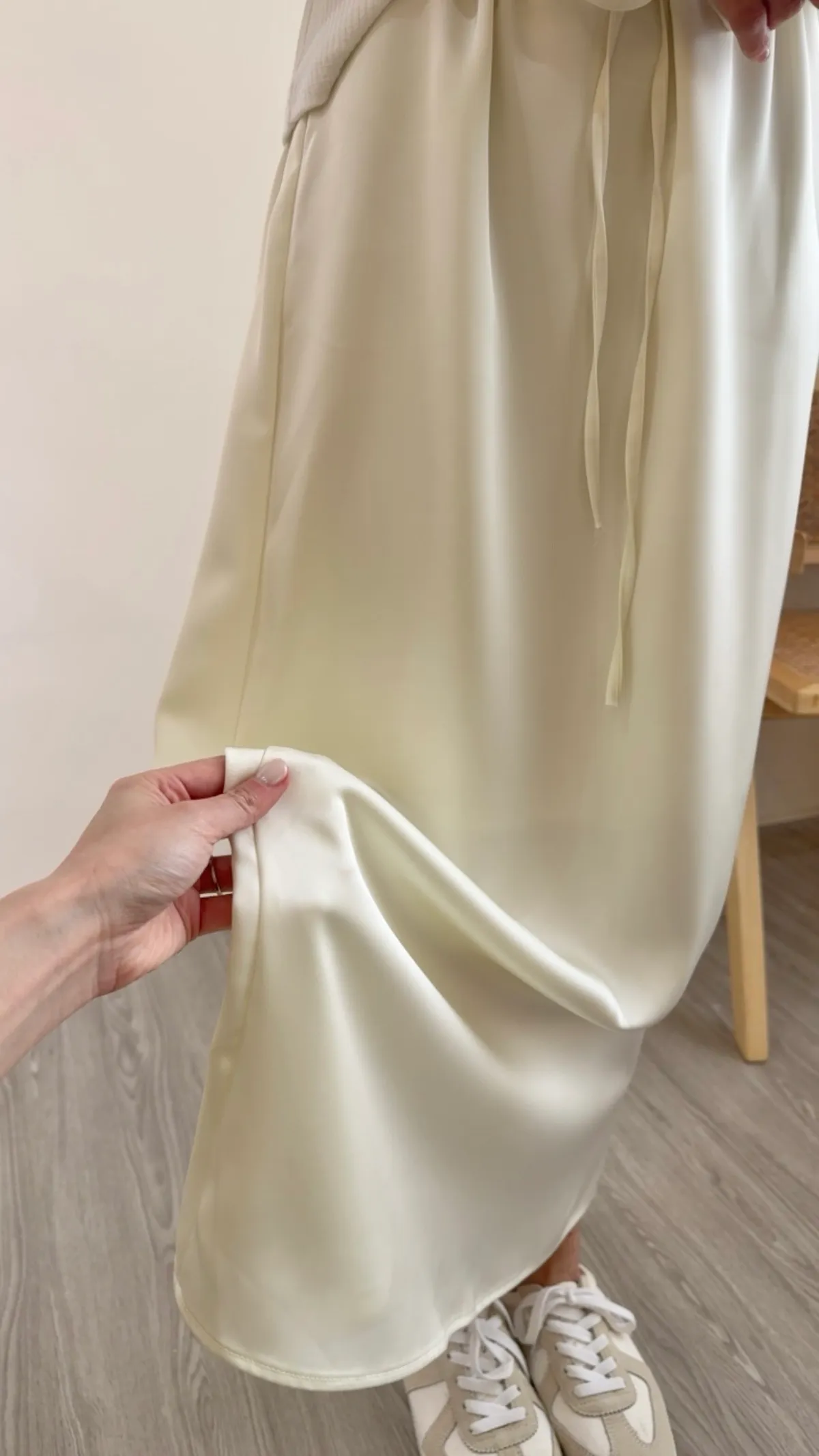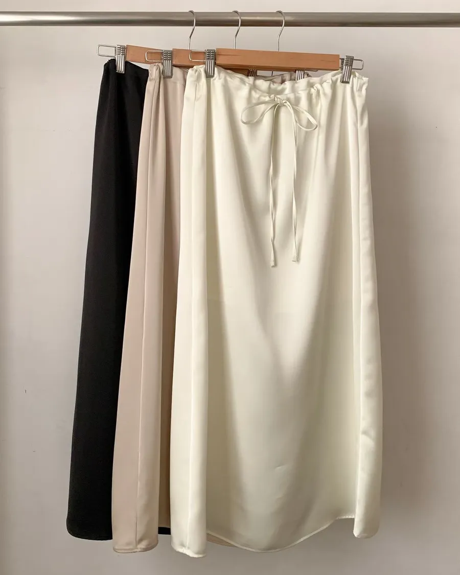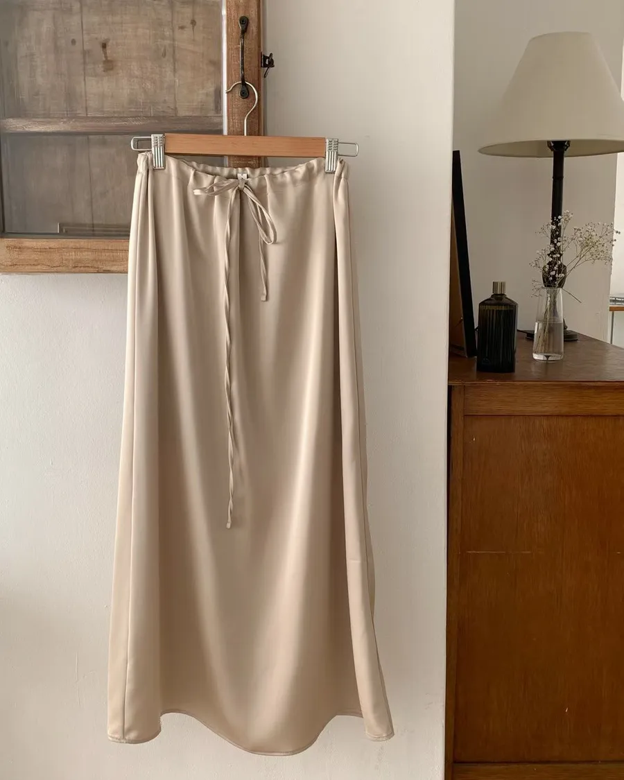 ANZ東大門新品🇰🇷A18 仙女光澤滑料長裙 自綁帶款 Made in Korea