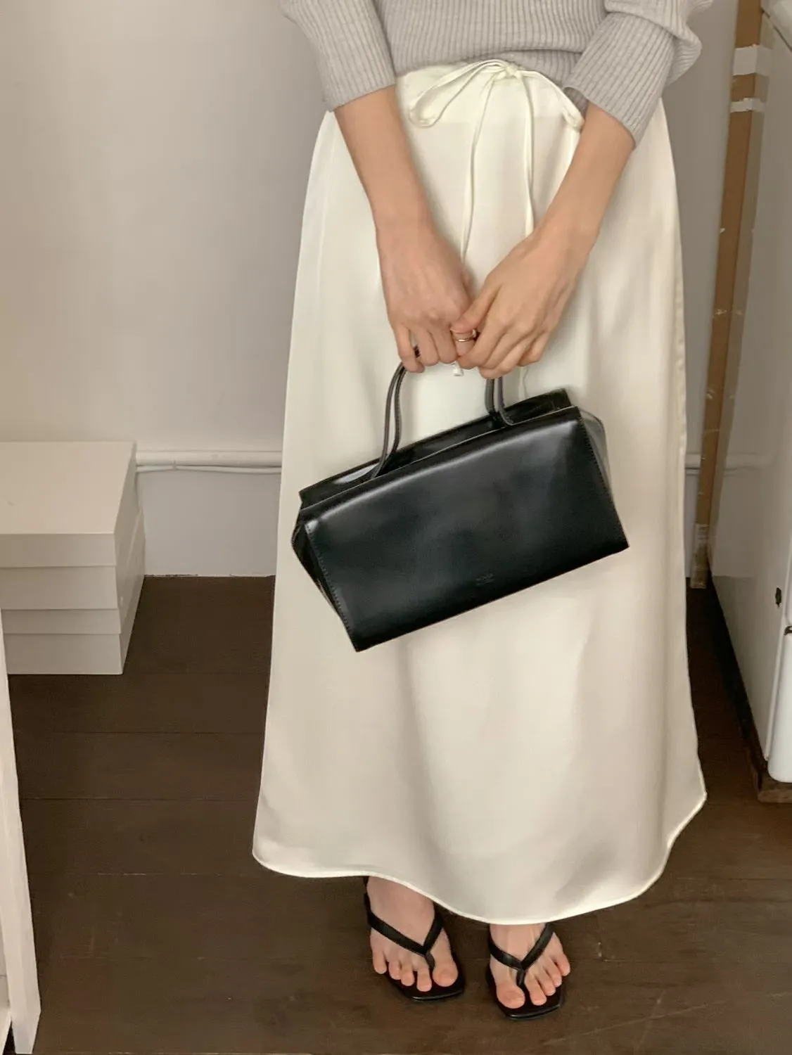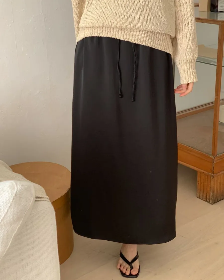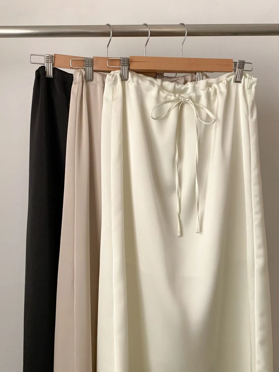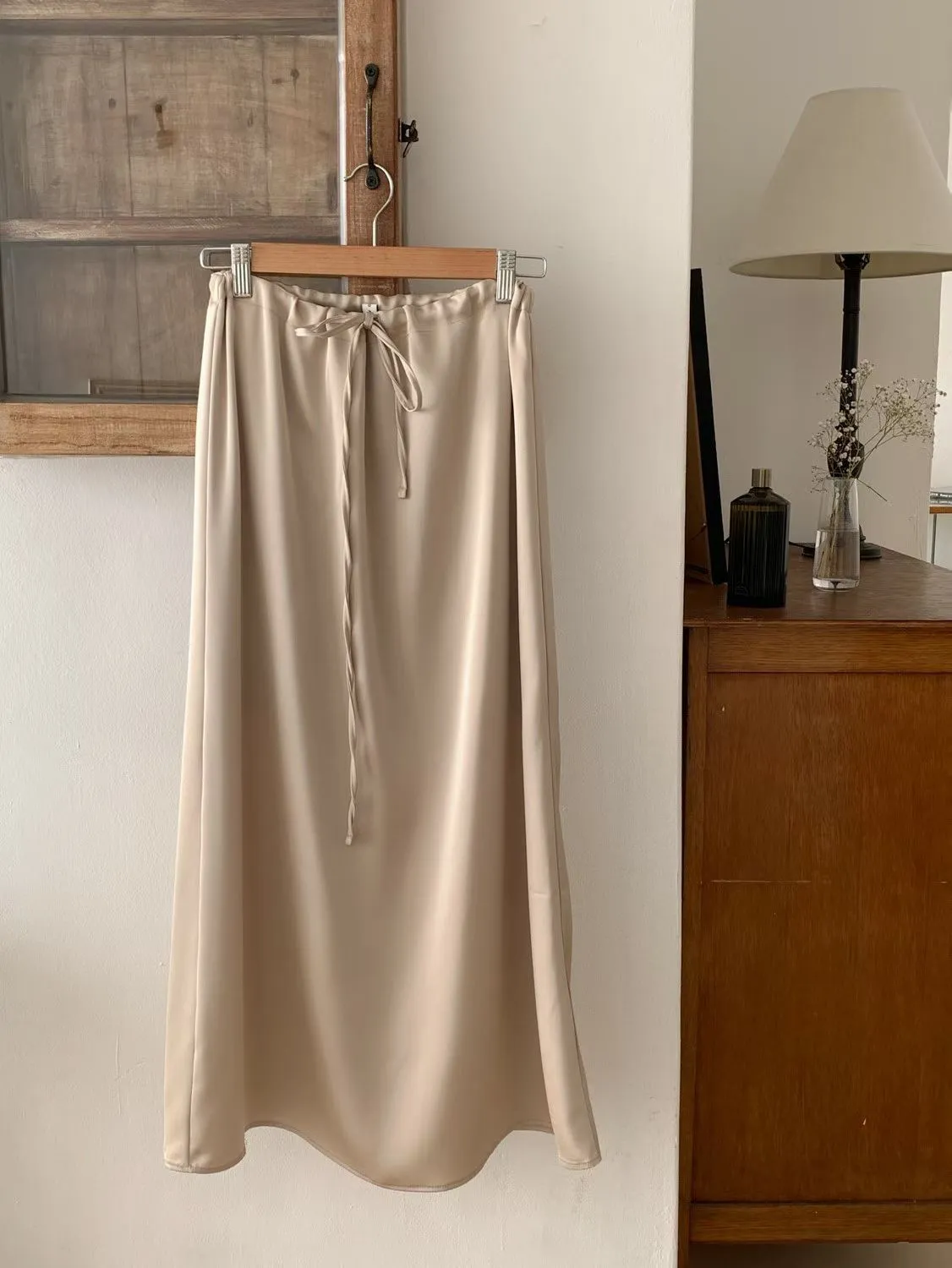 ANZ東大門新品🇰🇷A18 仙女光澤滑料長裙 自綁帶款 Made in Korea