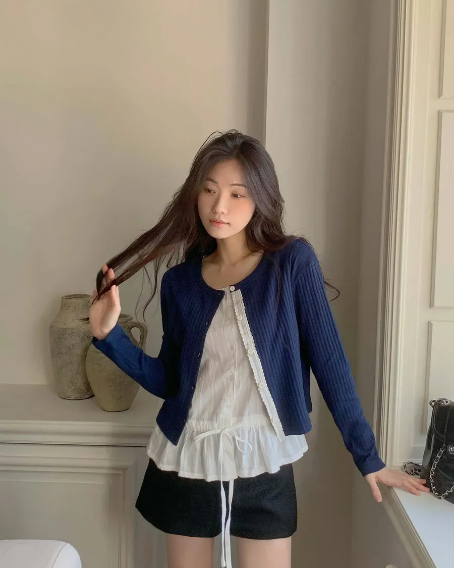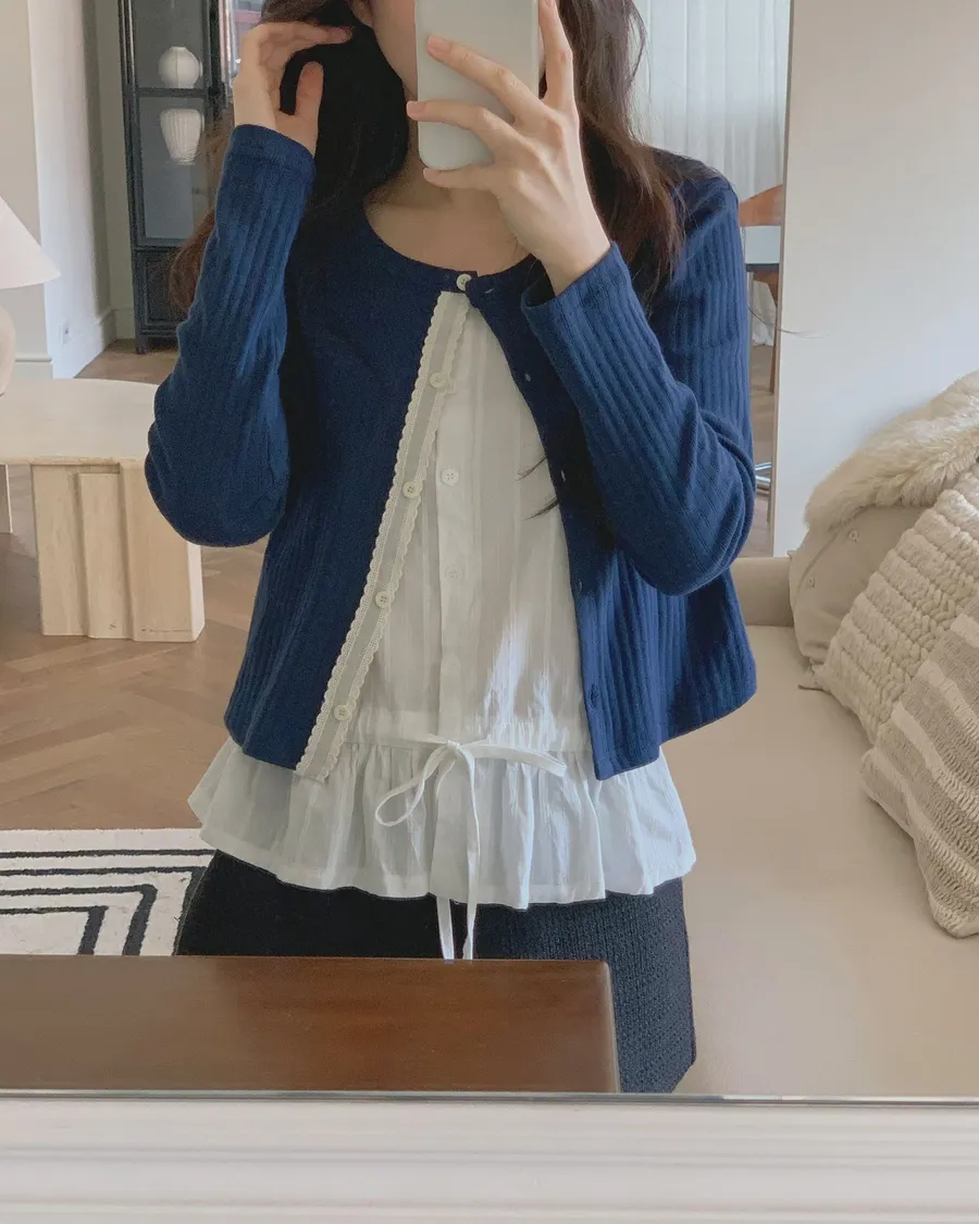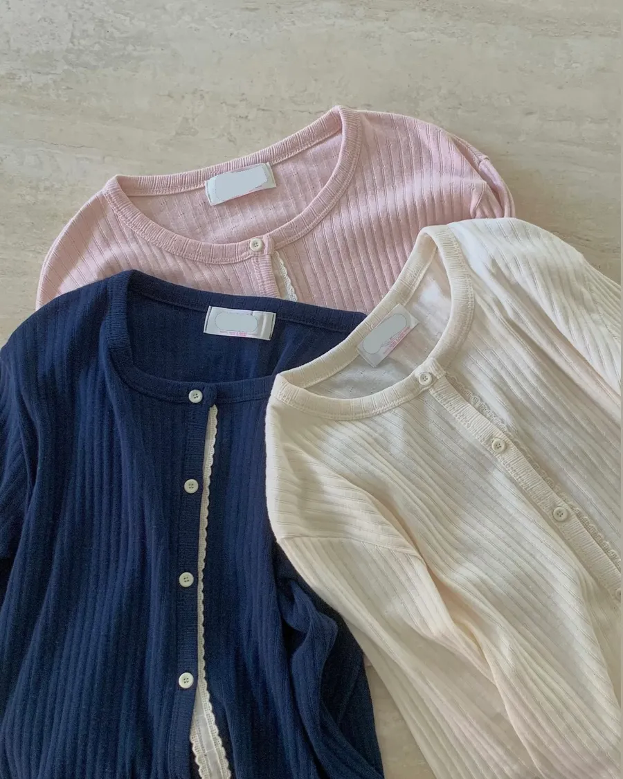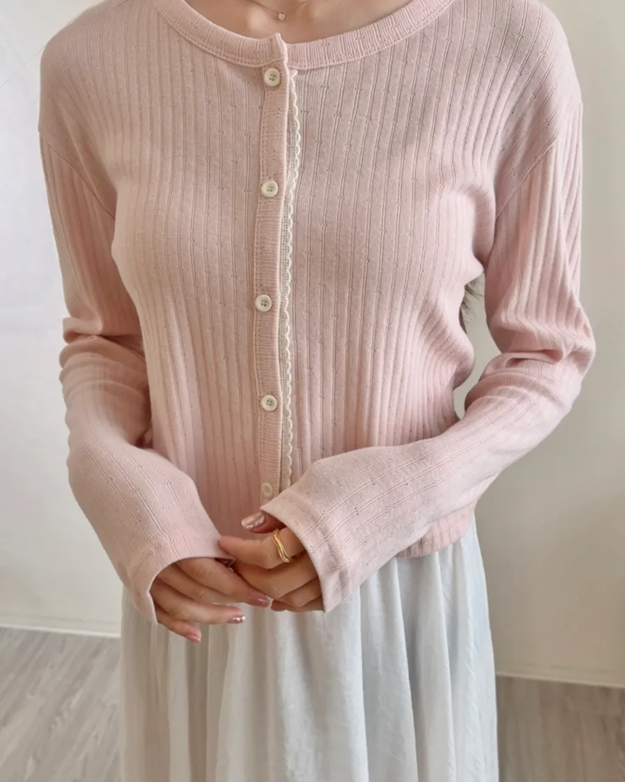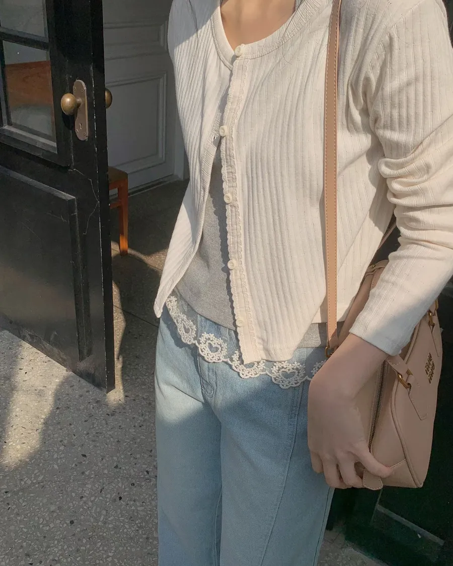 ANZ東大門新品🇰🇷A19 雕花車邊 針織上衣 Made in Korea