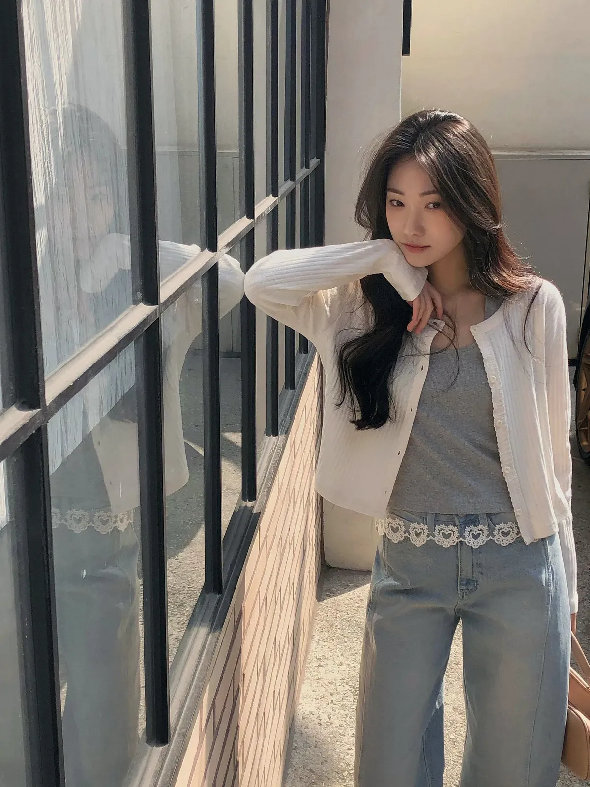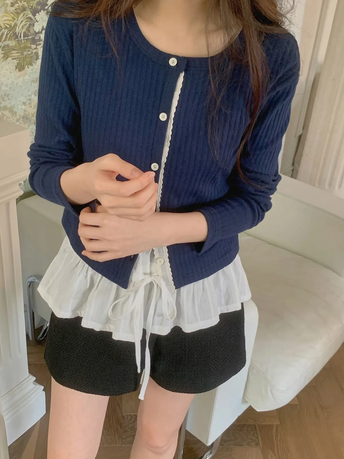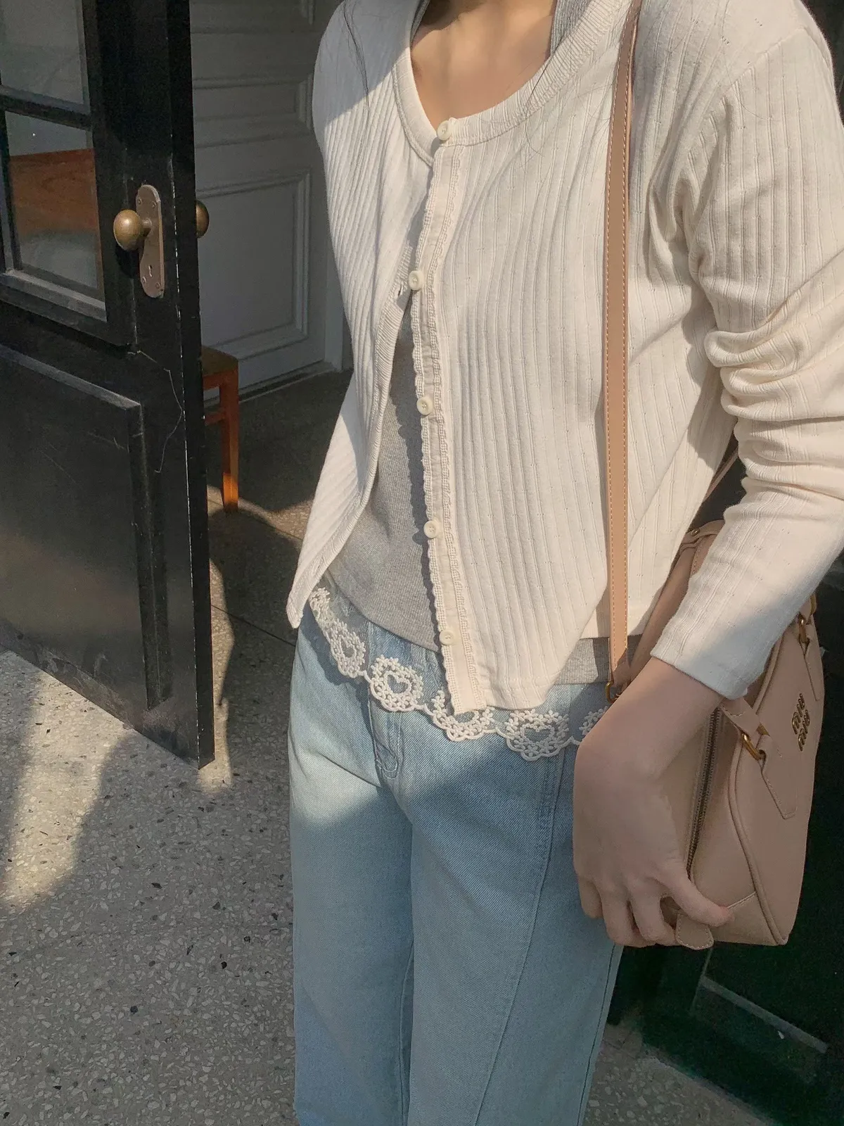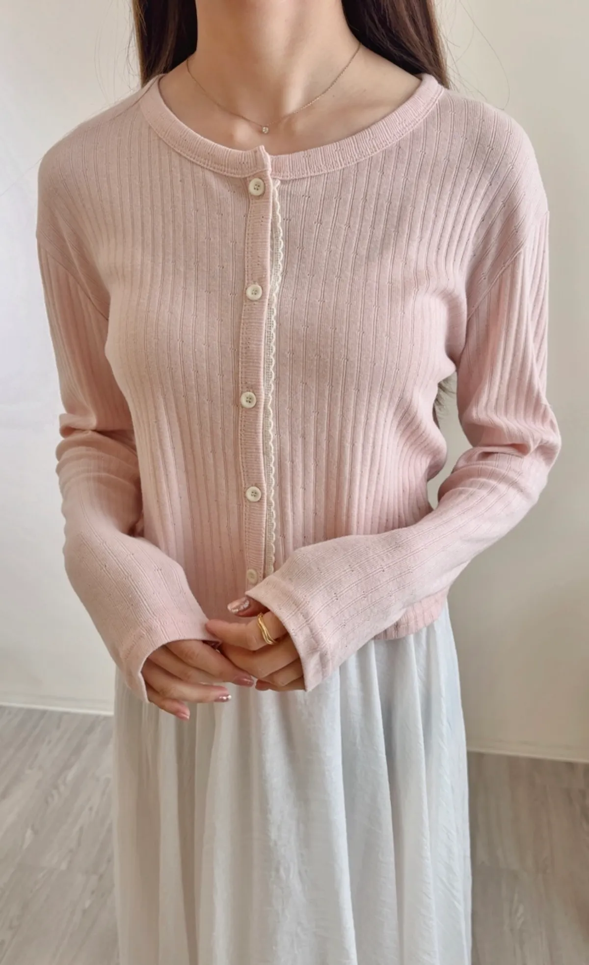 ANZ東大門新品🇰🇷A19 雕花車邊 針織上衣 Made in Korea