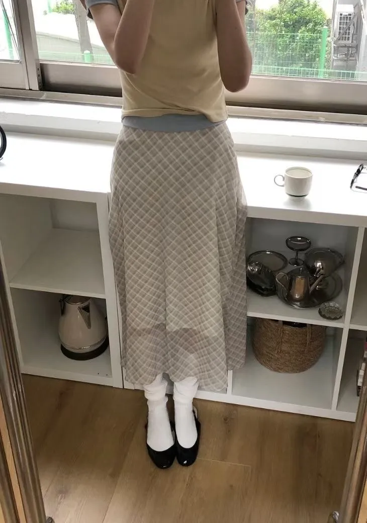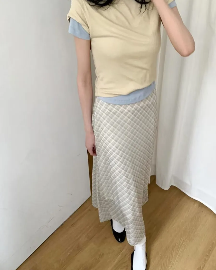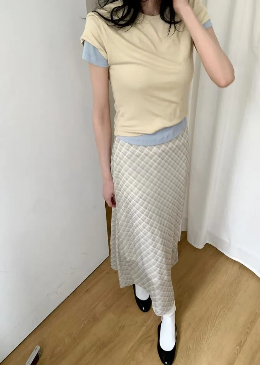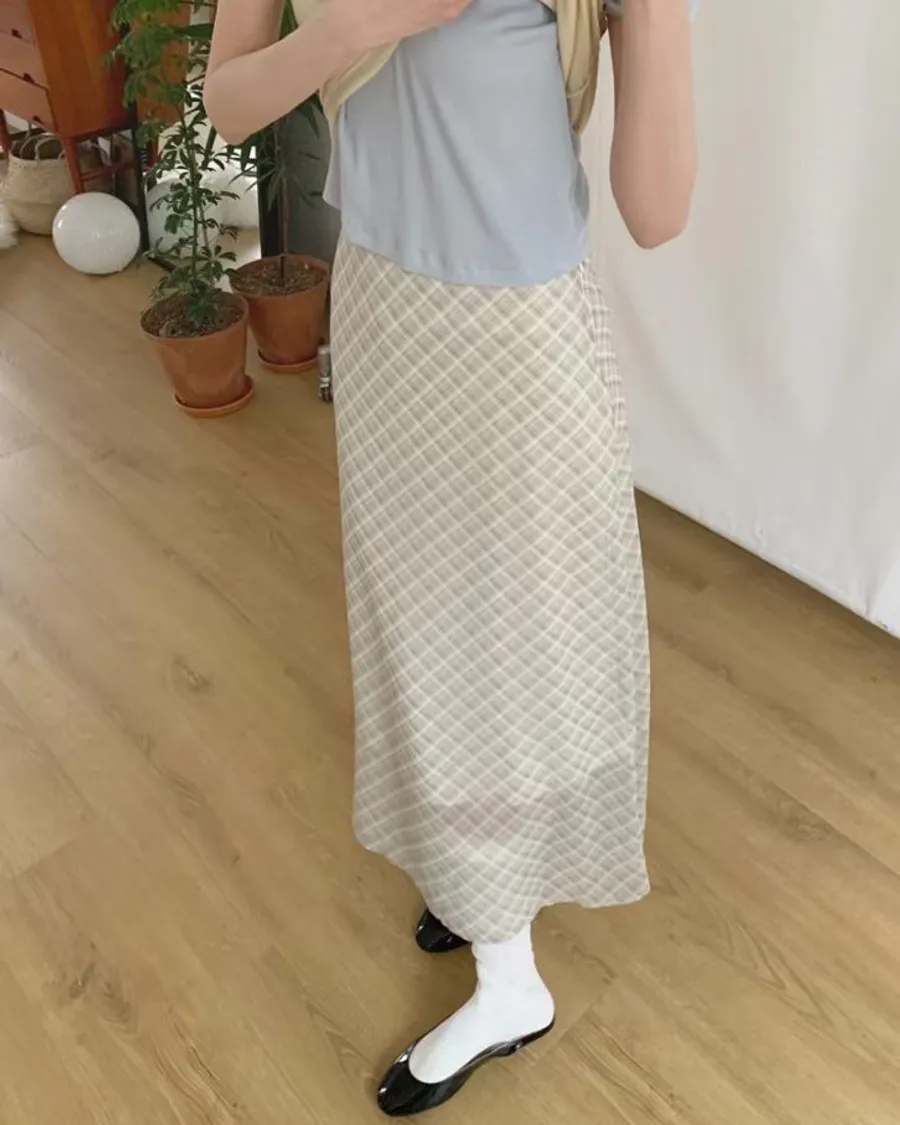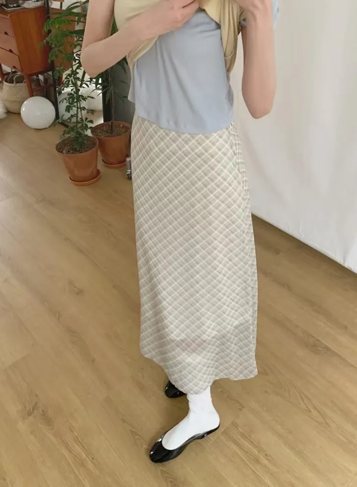 ANZ東大門新品🇰🇷A21 氣質菱格紋 夏季長裙 有內裡 Made in Korea