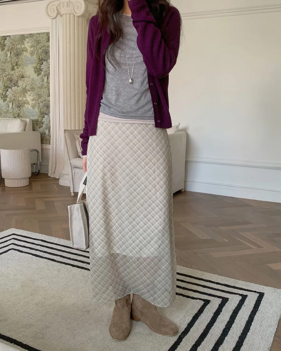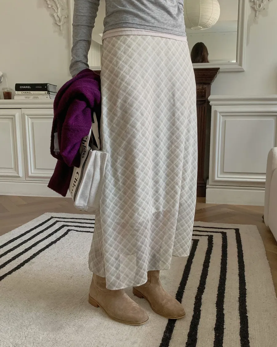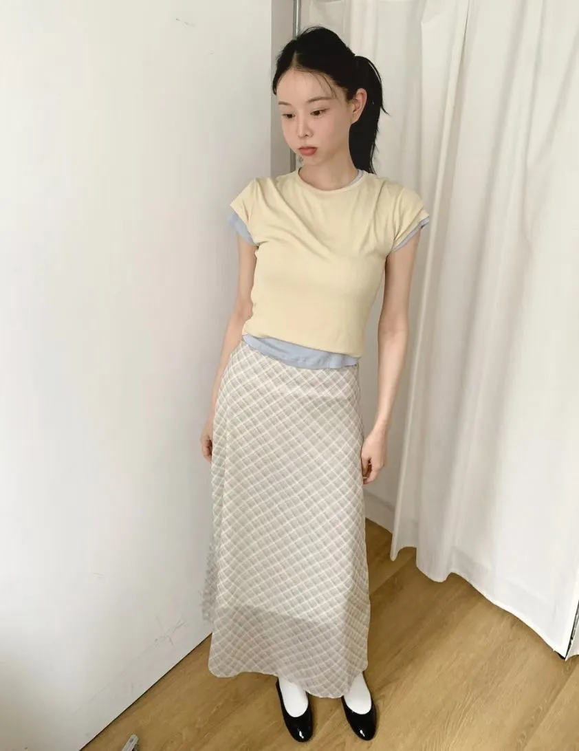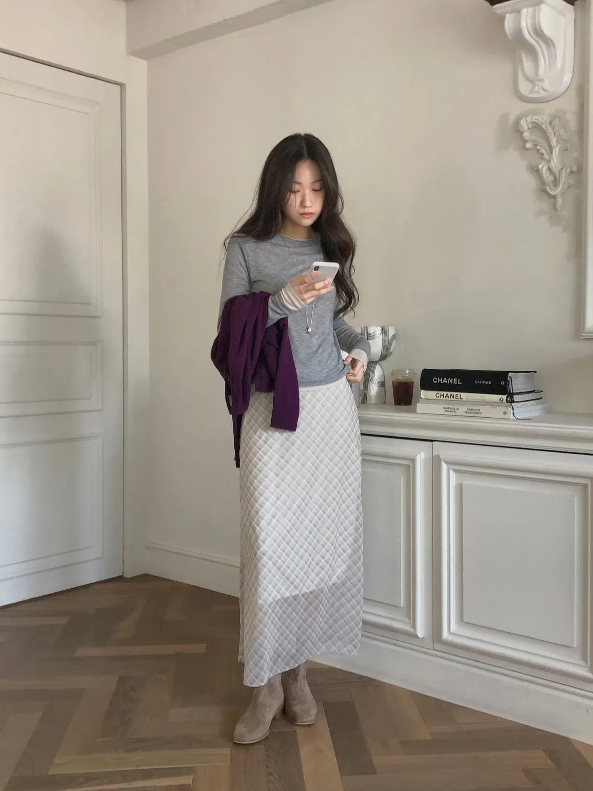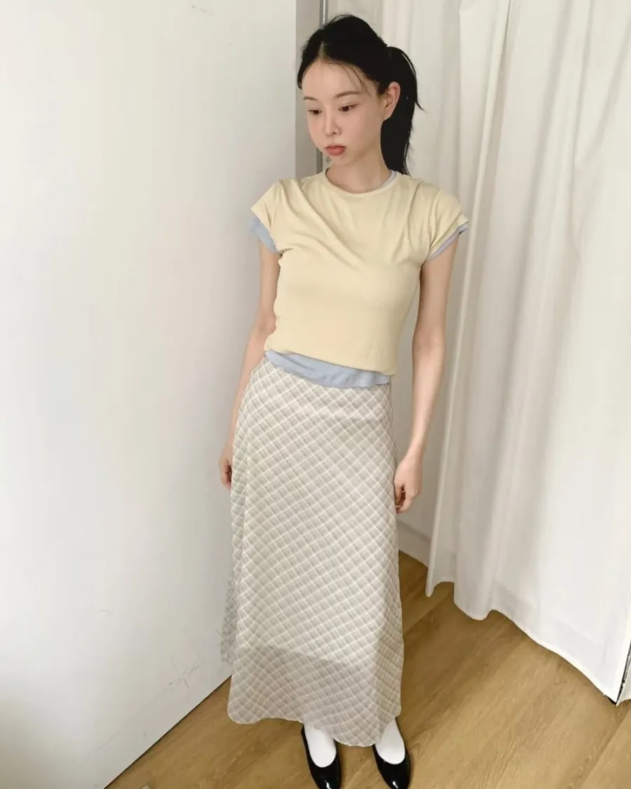 ANZ東大門新品🇰🇷A21 氣質菱格紋 夏季長裙 有內裡 Made in Korea