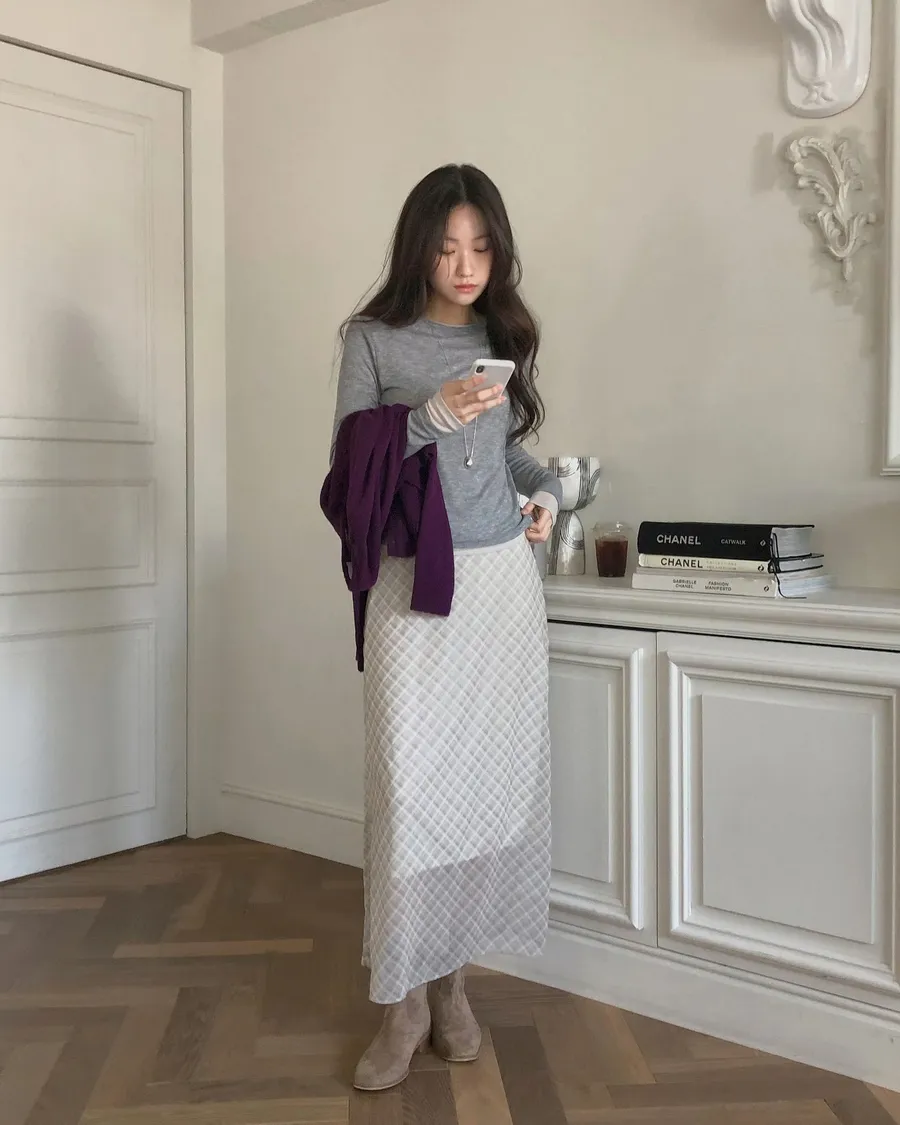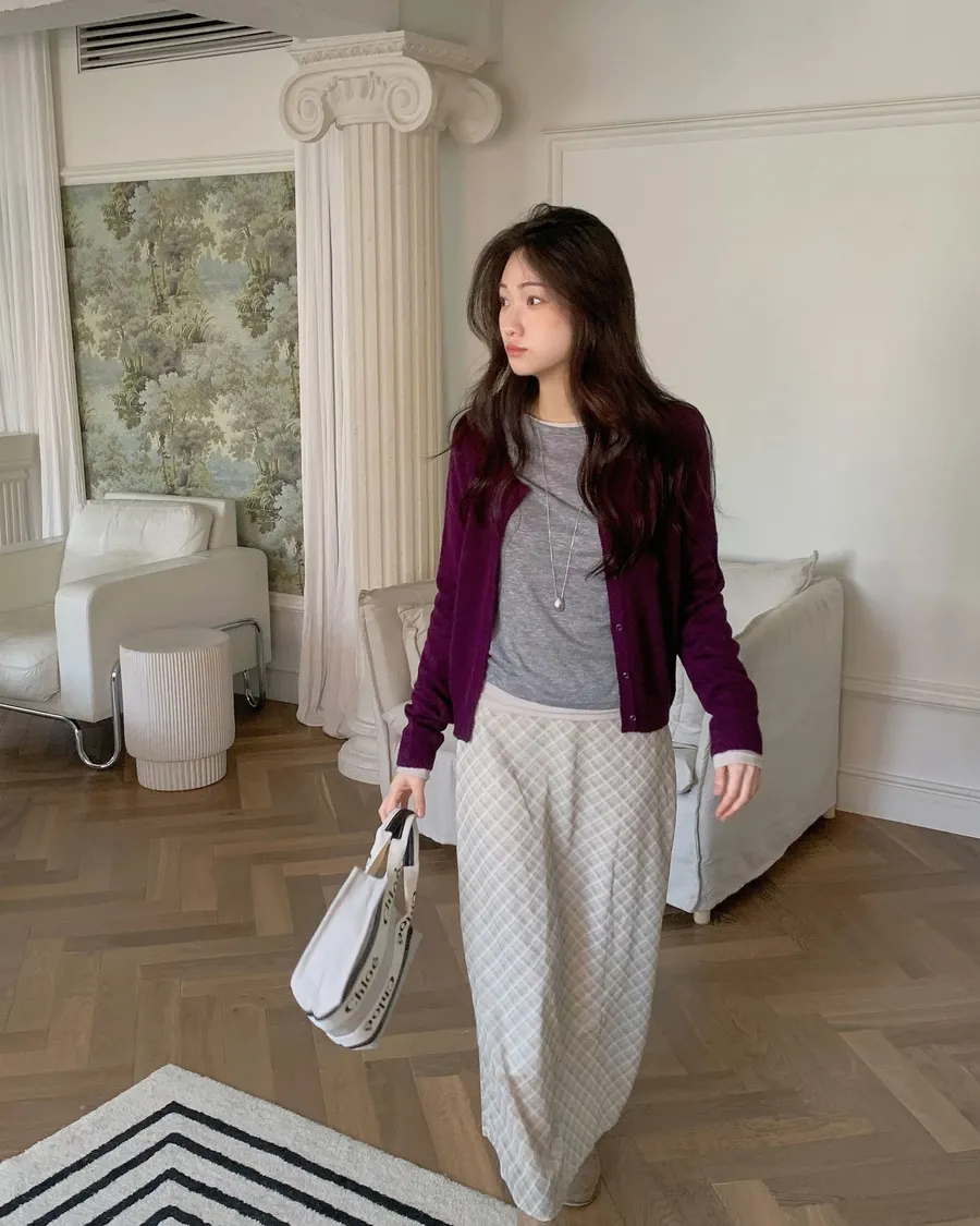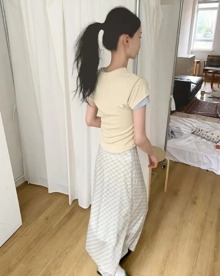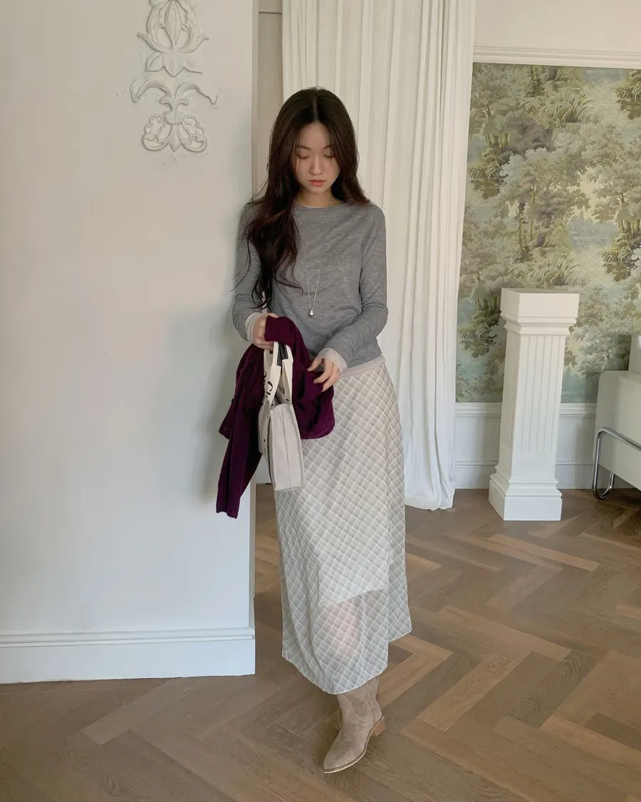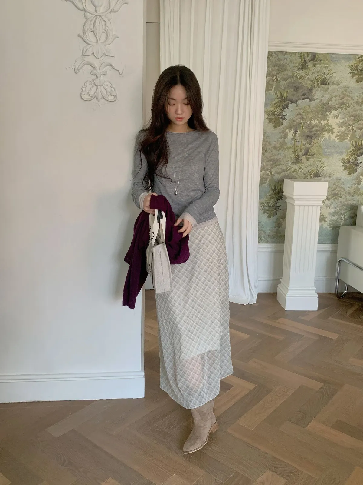 ANZ東大門新品🇰🇷A21 氣質菱格紋 夏季長裙 有內裡 Made in Korea