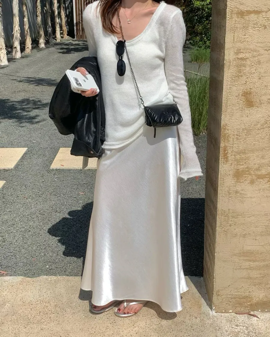 ANZ東大門新品🇰🇷A23 珍珠光美人魚尾裙 彈性腰帶 Made in Korea